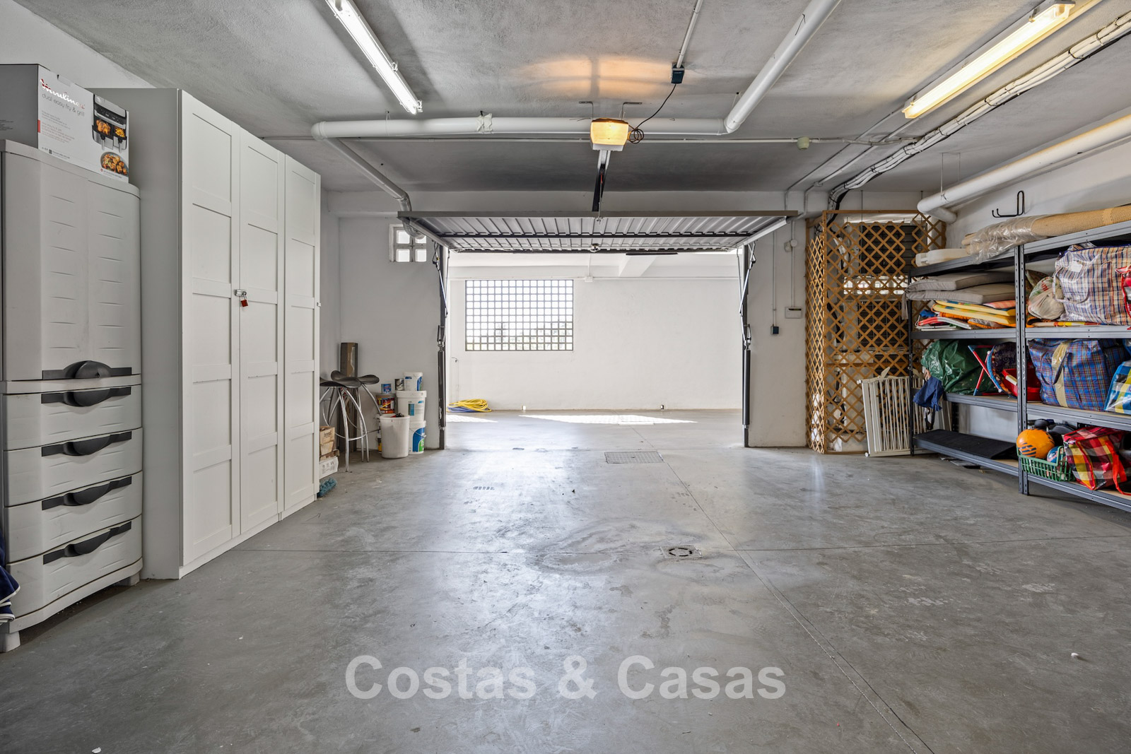 Maison aéré et spacieux avec un style architectural méditerranéen moderne. Finition de haute qualité. Orientée plein sud. Vues panoramiques imprenables sur les parcours de golf verdoyants et en partie sur la mer Méditerranée. Espace de vie ouvert avec un salon TV cosy et un coin repas intégré. De hautes fenêtres donnent accès à la terrasse couverte, qui est élégamment meublée avec un salon et une table à manger. Cuisine entièrement équipée avec de nombreux rangements et une fenêtre traversante vers le salon et la salle à manger. Buanderie séparée. 3 chambres, 3 salles de bains. La chambre principale dispose d'une salle de bain attenante, tandis que les deux autres chambres partagent une grande salle de bain. Sols en marbre de qualité. Le sous-sol offre une pièce multifonctionnelle qui peut être librement aménagée en bureau, salle de fitness ou espace de vie supplémentaire. Débarras. Garage intérieur pour 2 voitures.