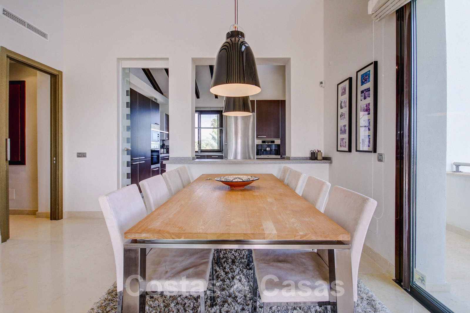 Cuisine séparée de haute finition avec appareils Miele et Liebherr et table à manger.