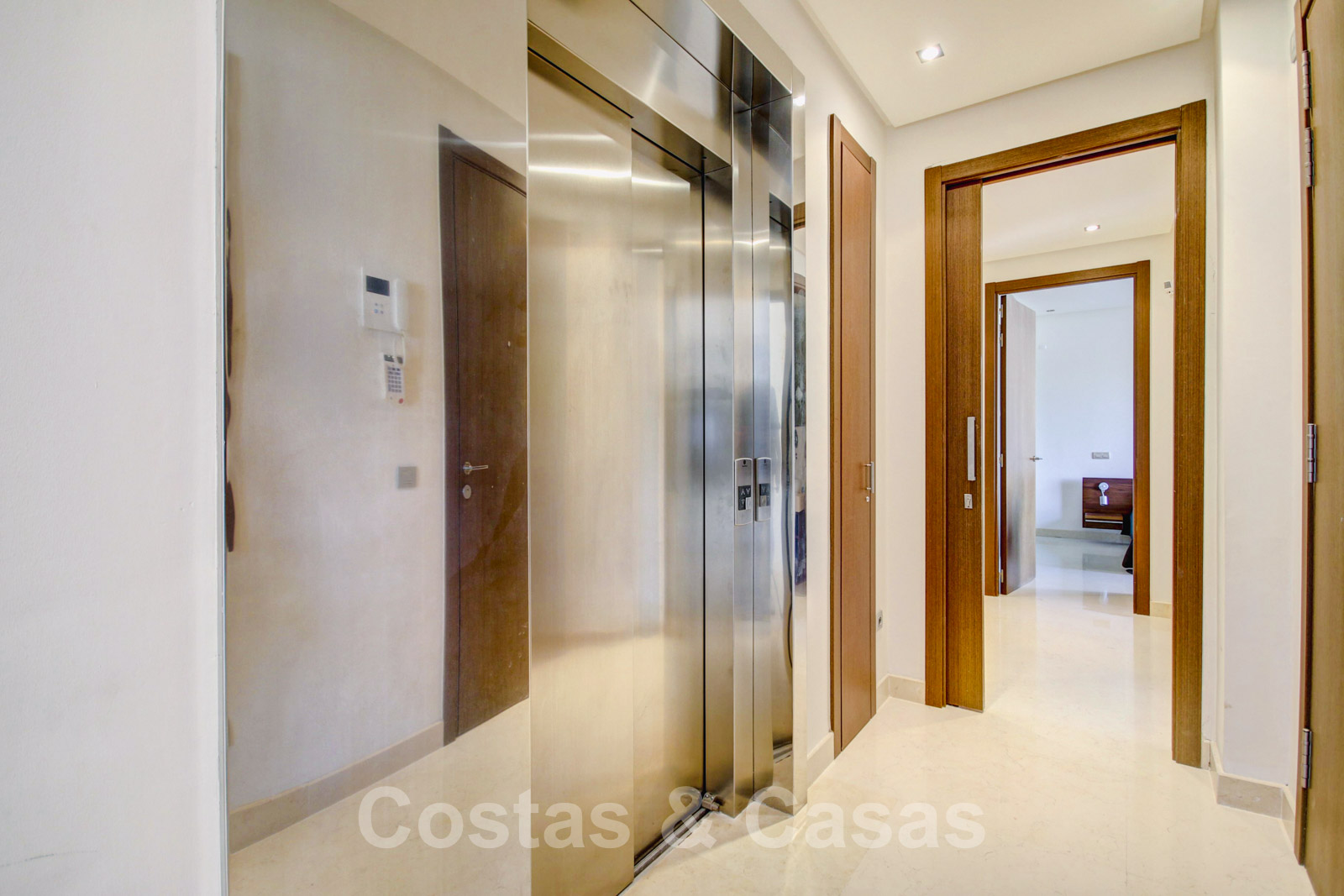 Entrée avec ascenseur, débarras et toilette invités.
