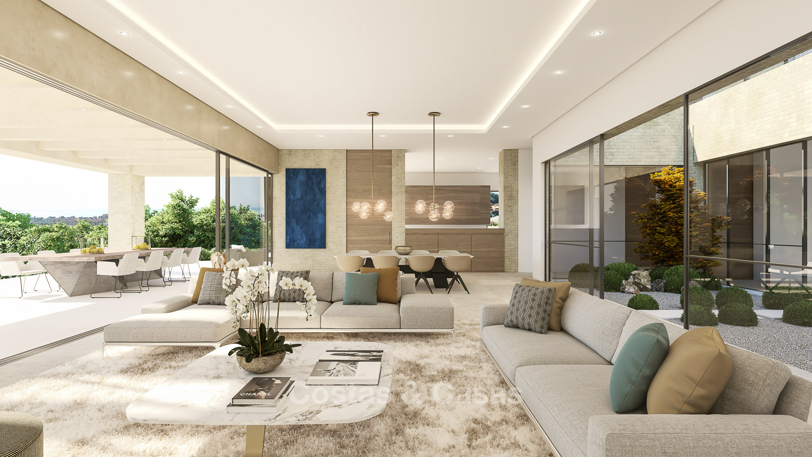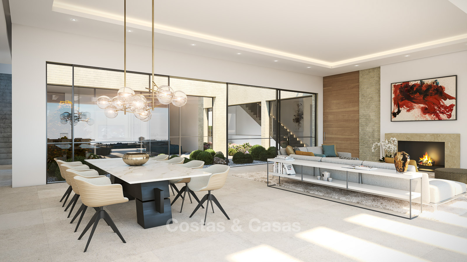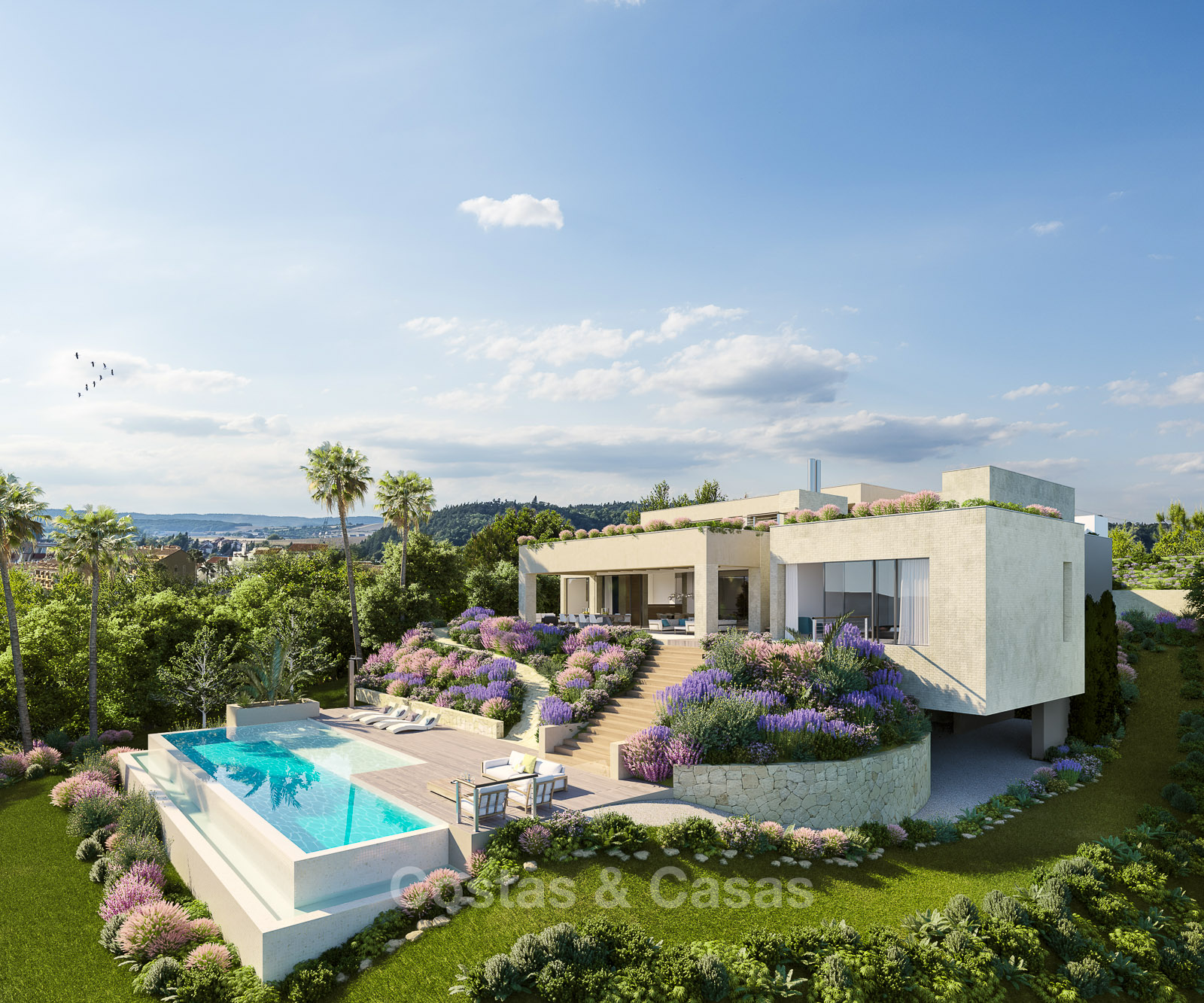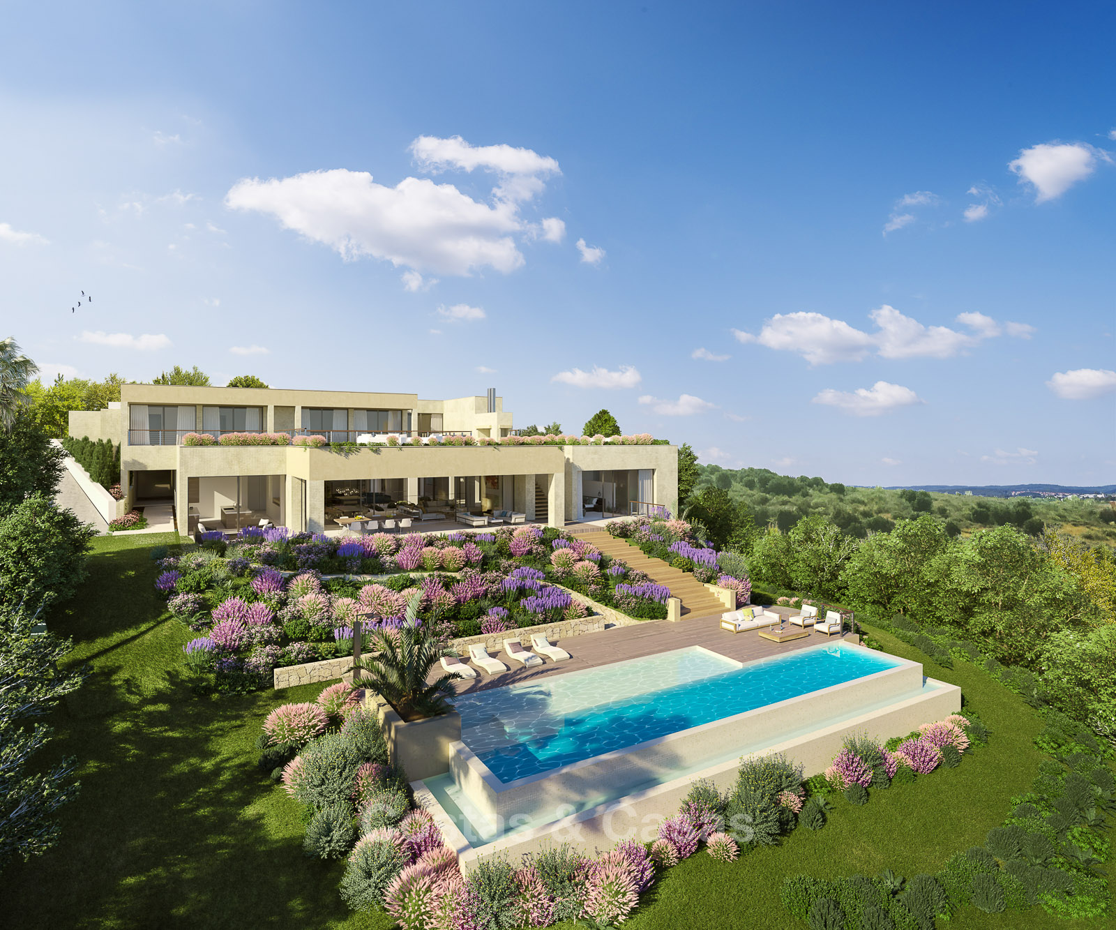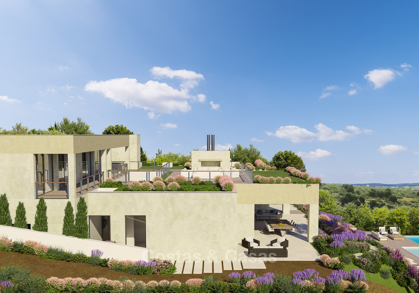 Terrains à bâtir pour des villas modernes clés en main avec des vues spectaculaires sur le terrain de golf, le lac, les montagnes et la mer Méditerranée jusqu'à l'Afrique, dans un complexe de golf fermé à vendre à Benahavis - Marbella