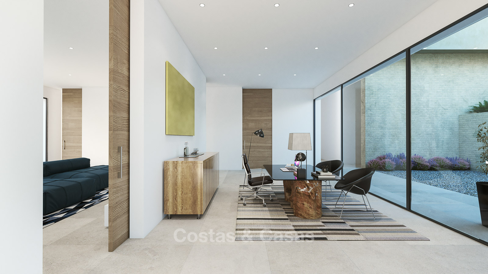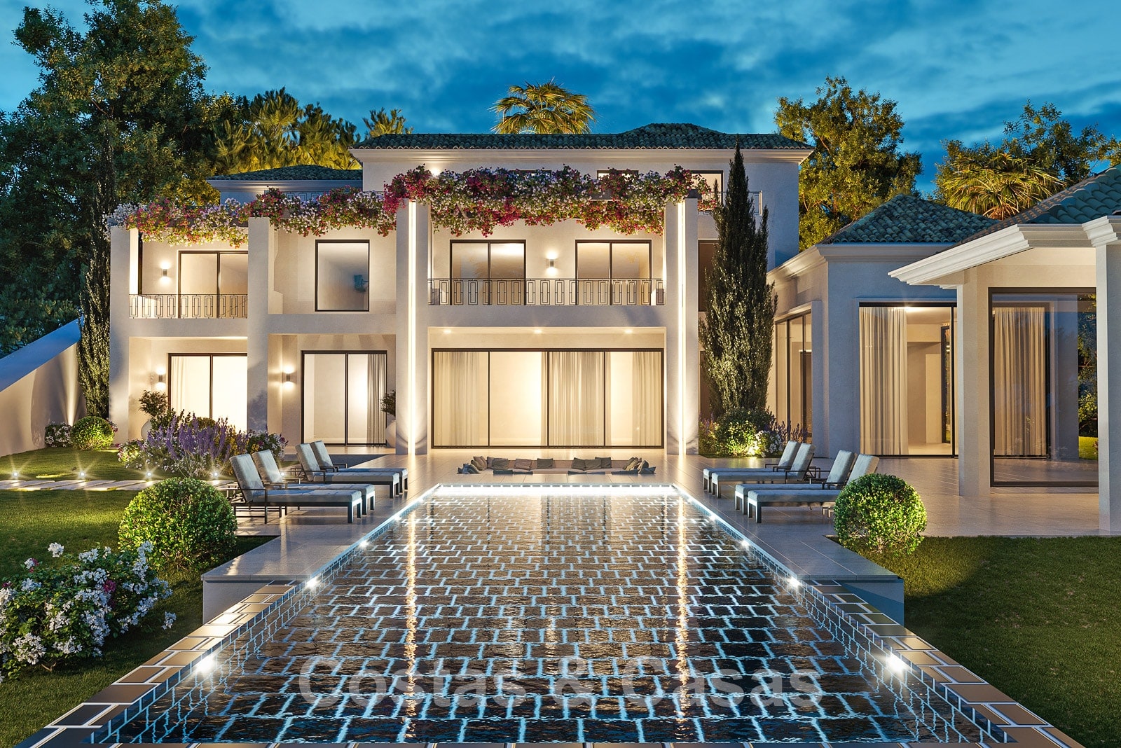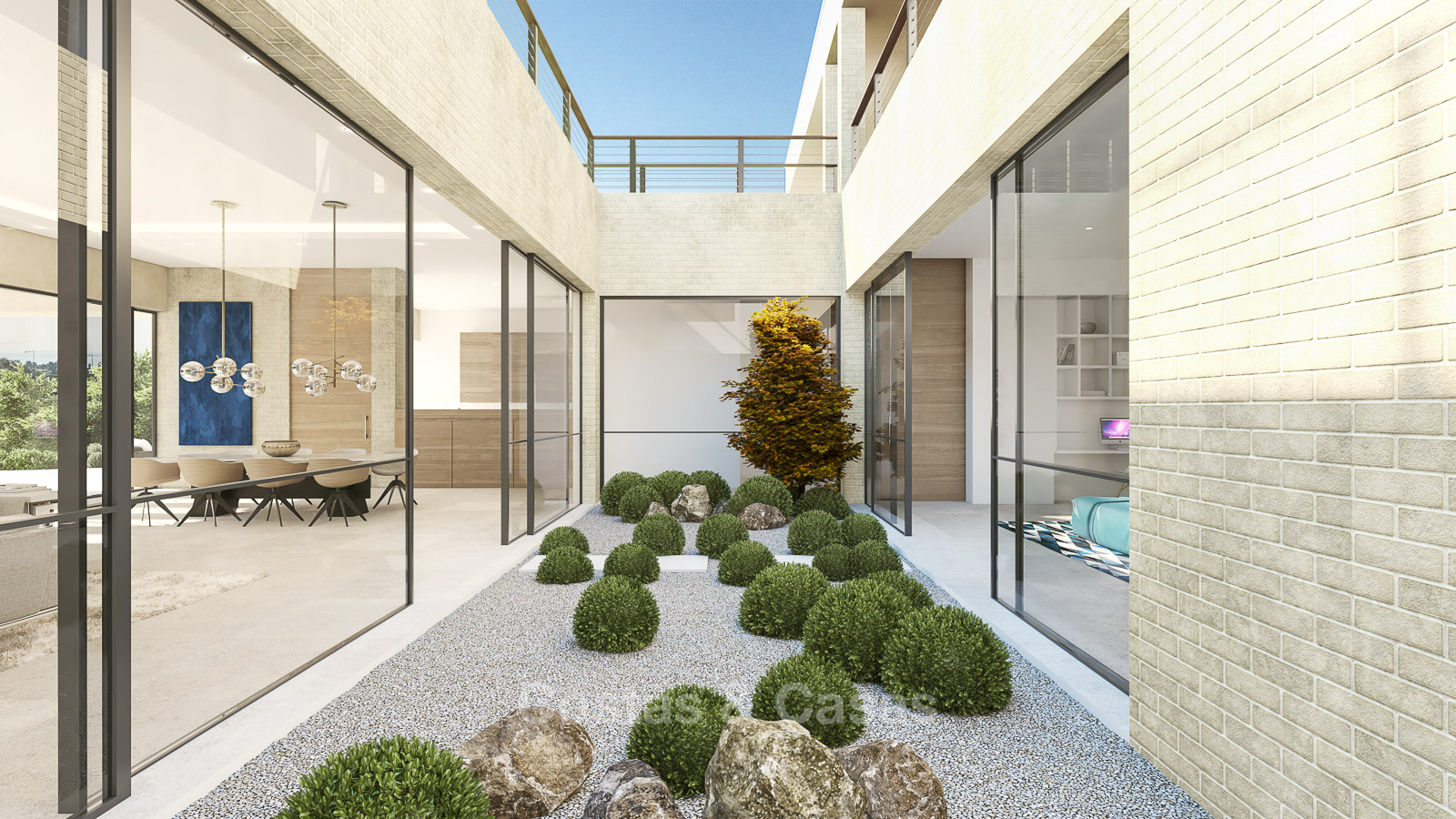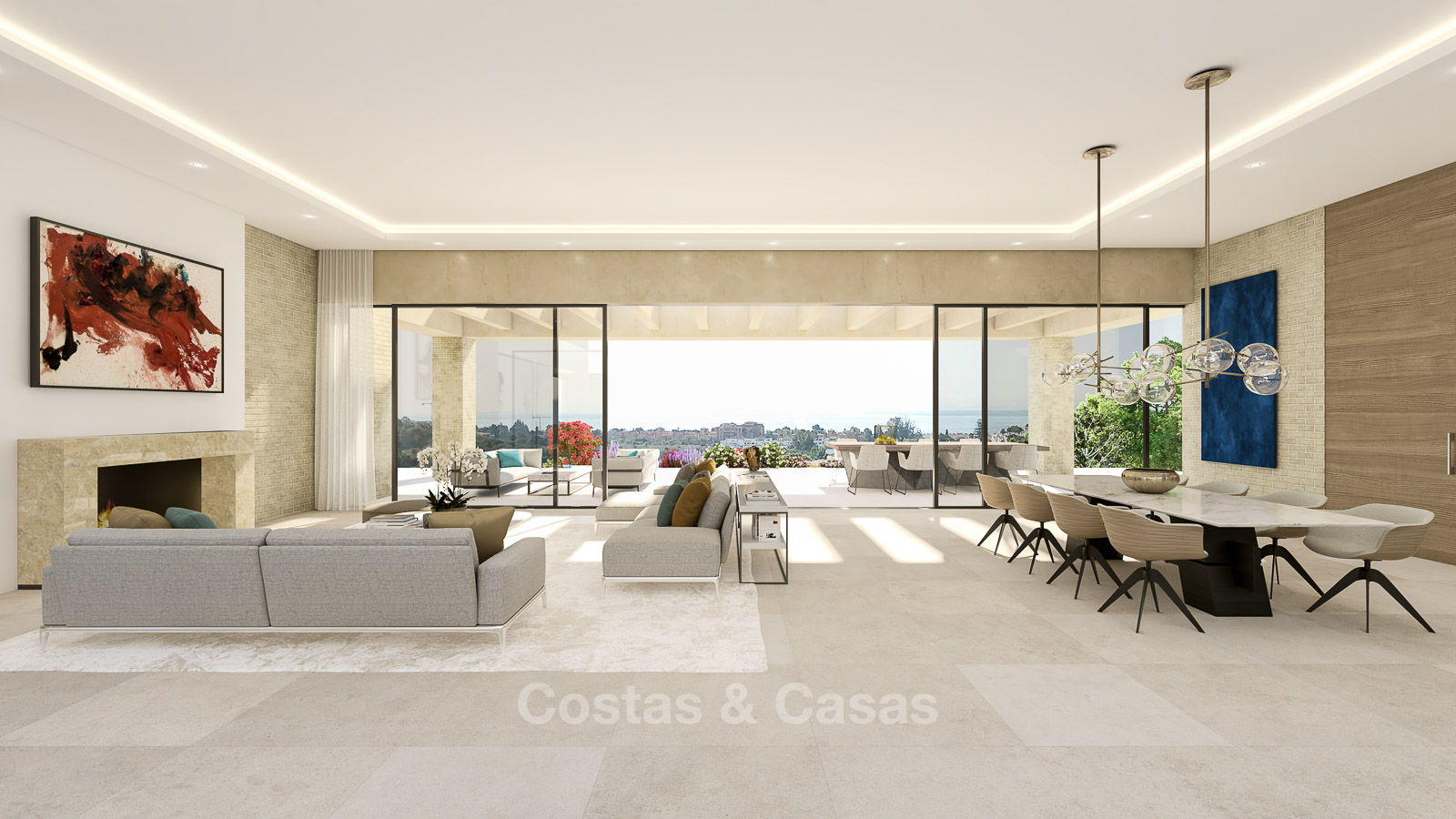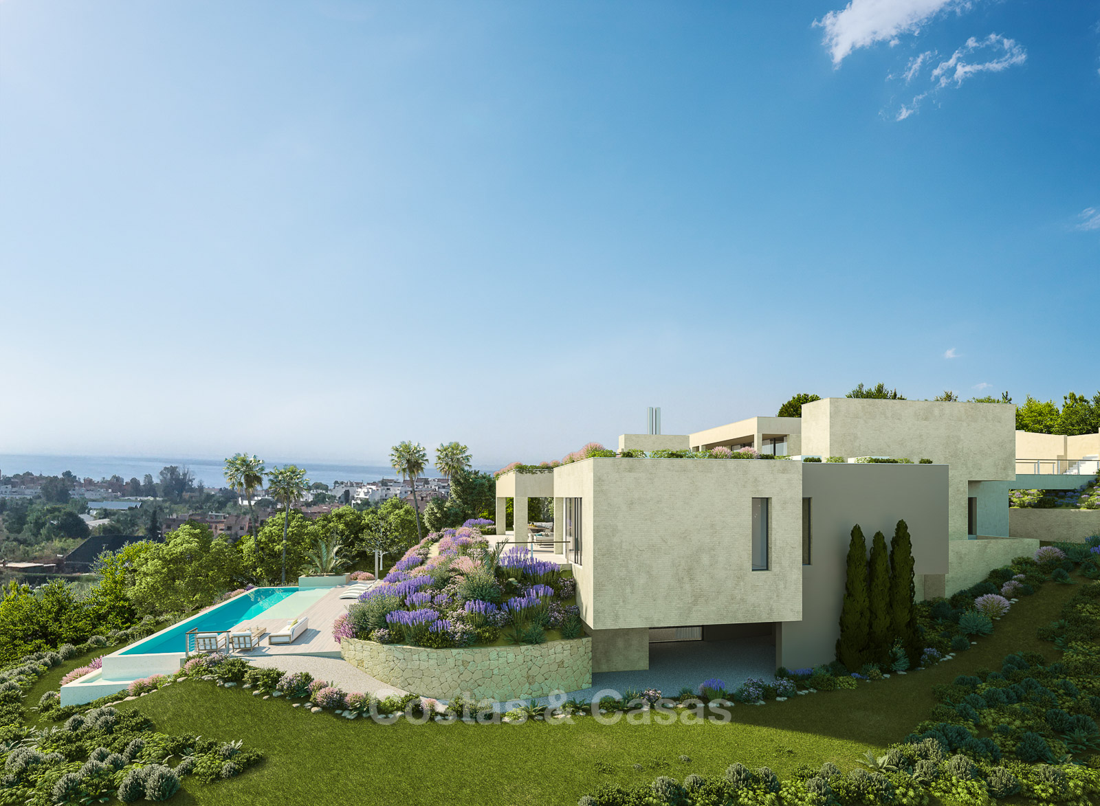 Terrains à bâtir pour des villas modernes clés en main avec des vues spectaculaires sur le terrain de golf, le lac, les montagnes et la mer Méditerranée jusqu'à l'Afrique, dans un complexe de golf fermé à vendre à Benahavis - Marbella