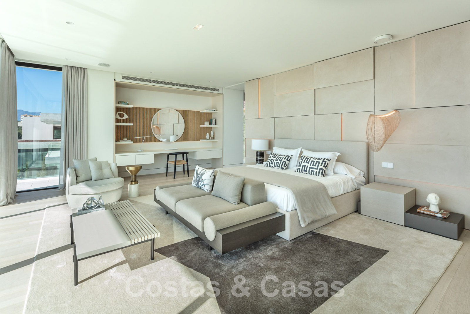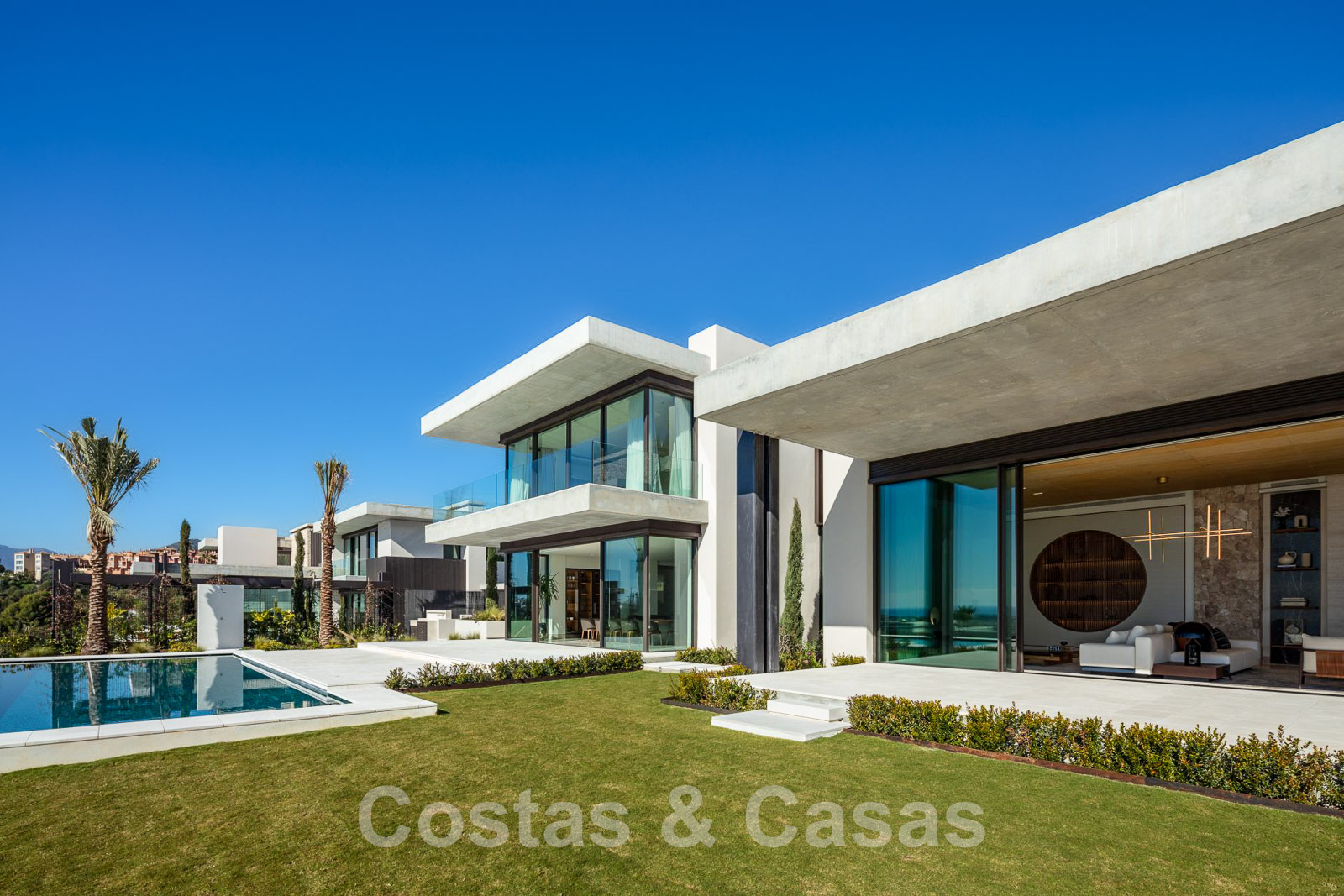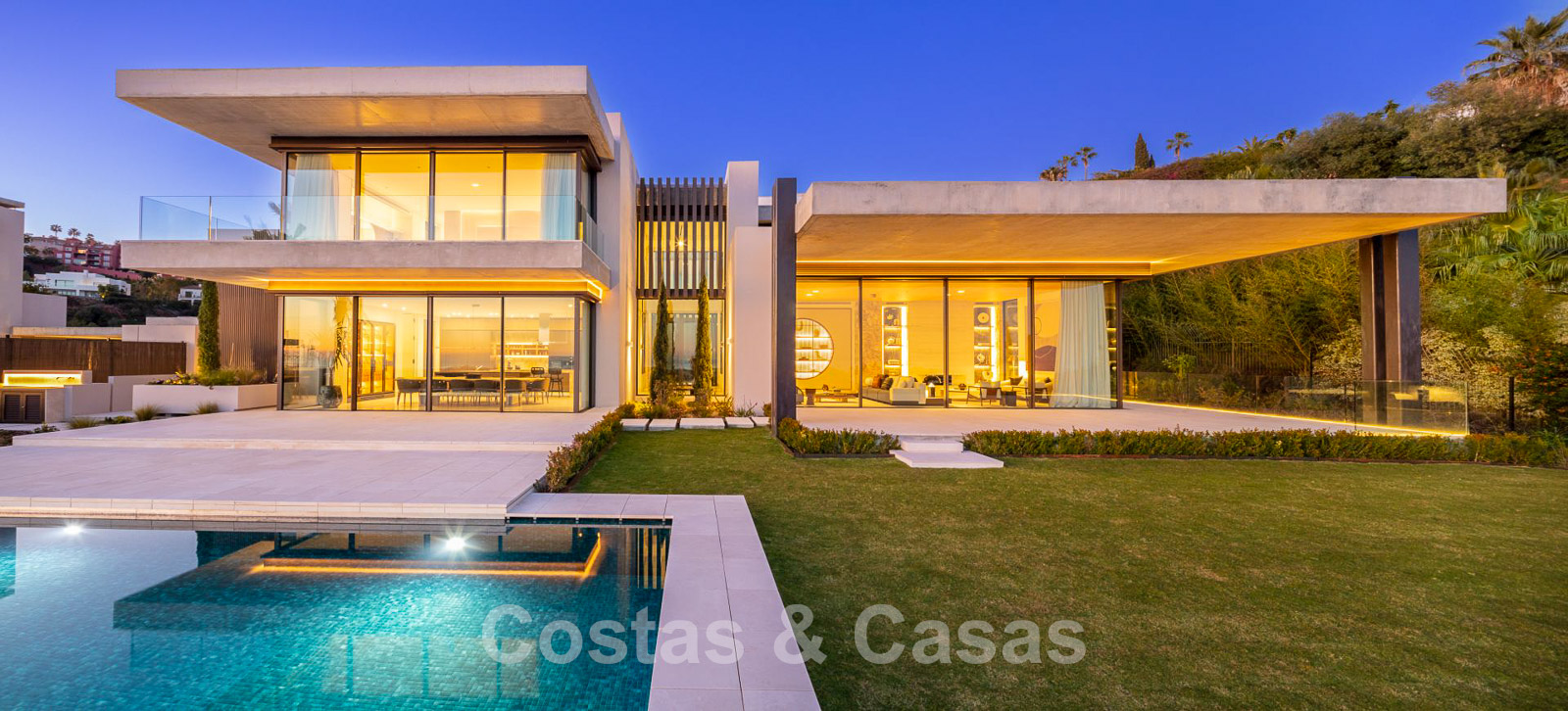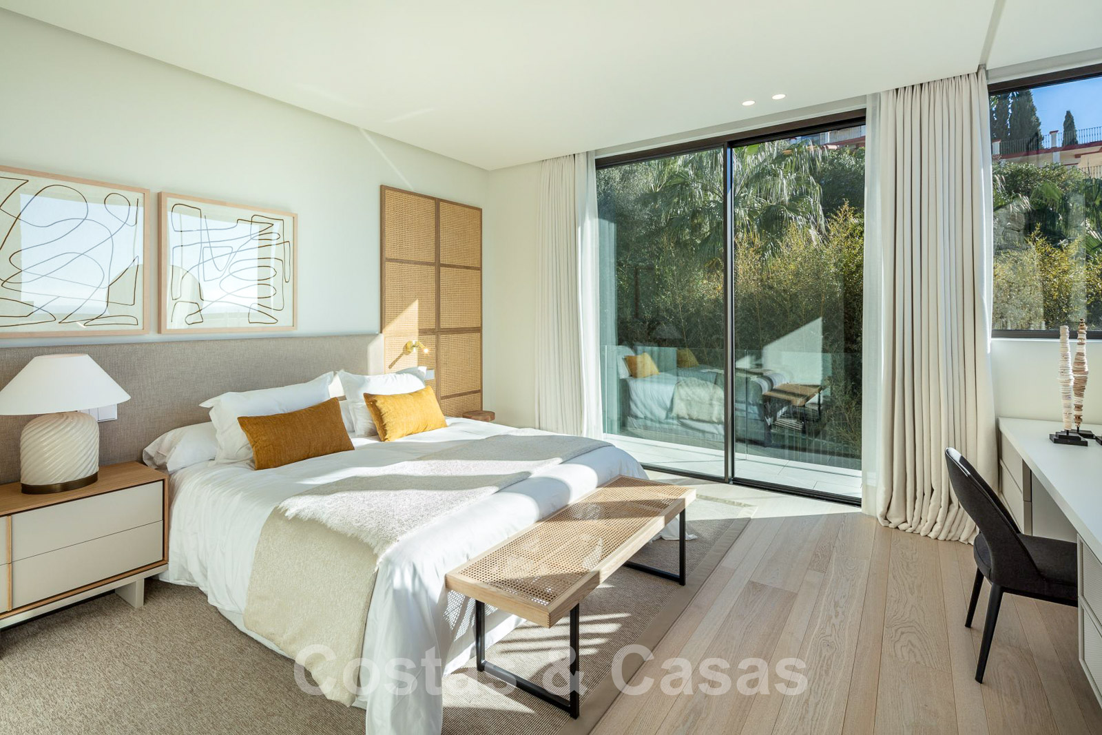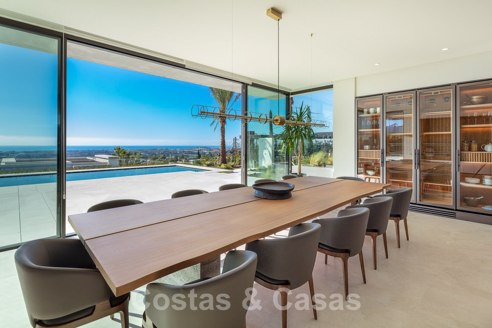 Domotique avancée. Climatisation. Chauffage par le sol dans toute la villa. Armoires encadrées. Éclairage extérieur. Plafonds hauts.