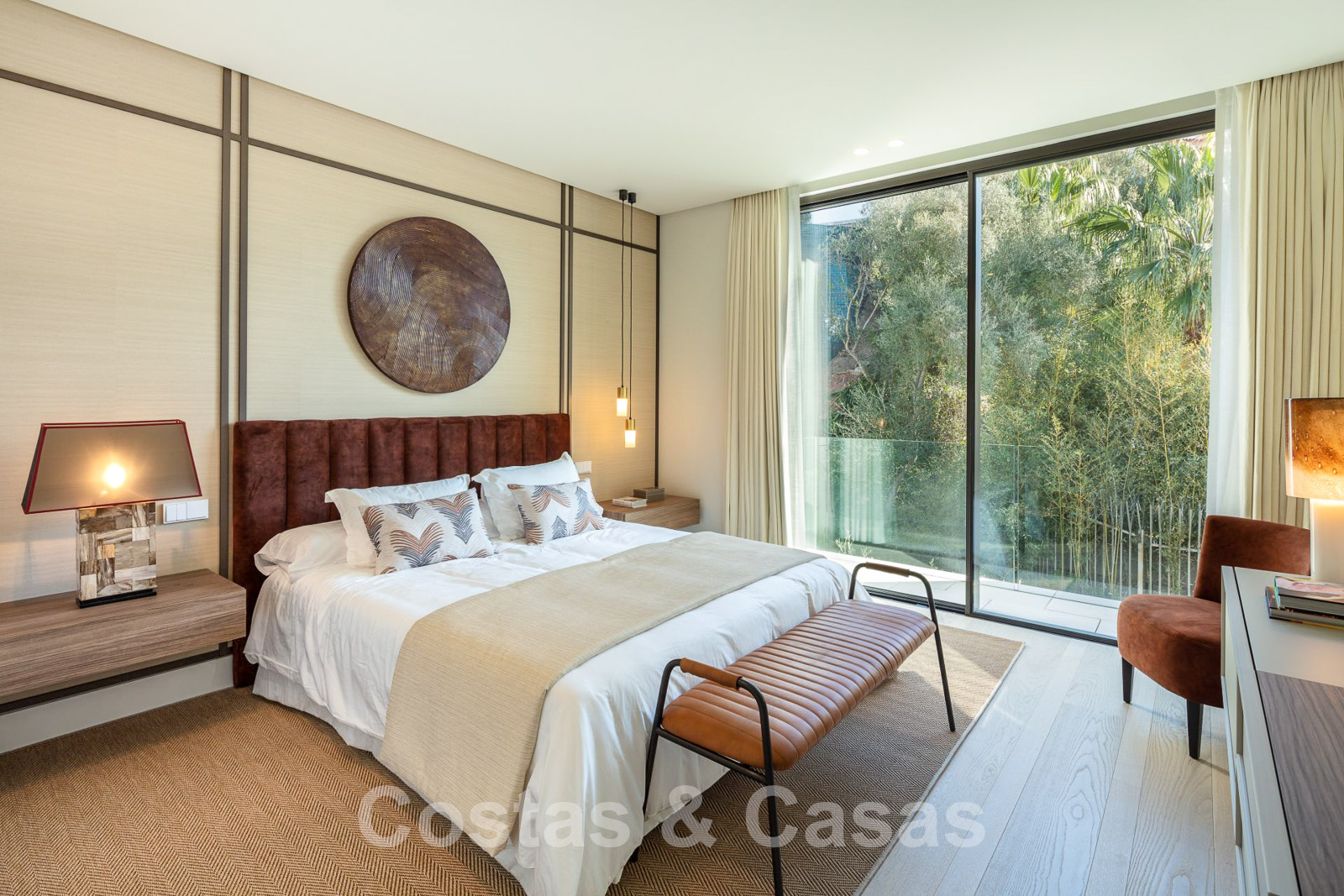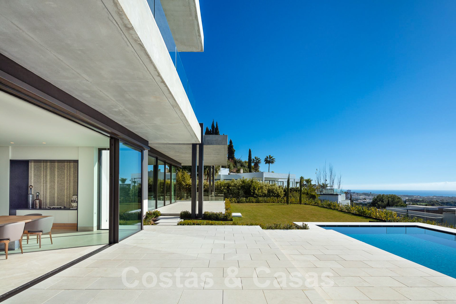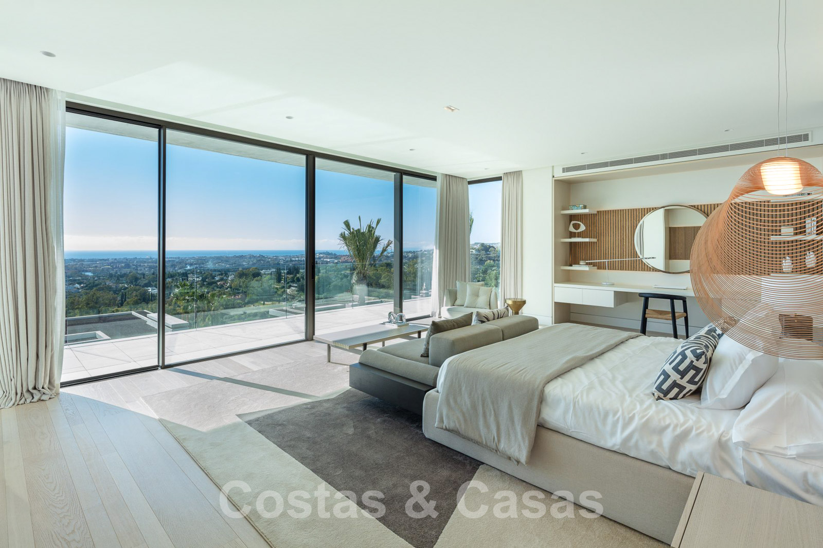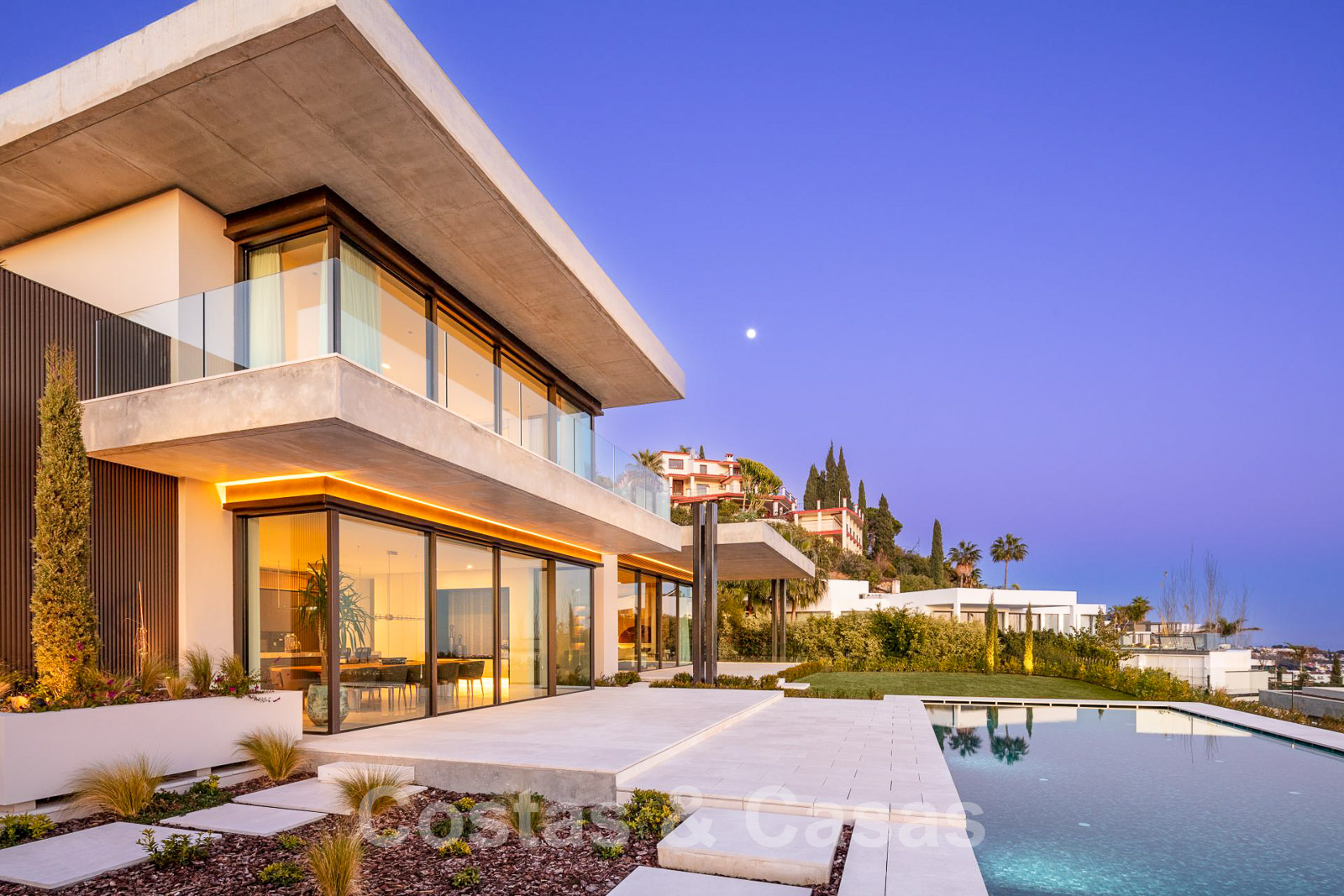 Domotique avancée. Climatisation. Chauffage par le sol dans toute la villa. Armoires encadrées. Éclairage extérieur. Plafonds hauts.