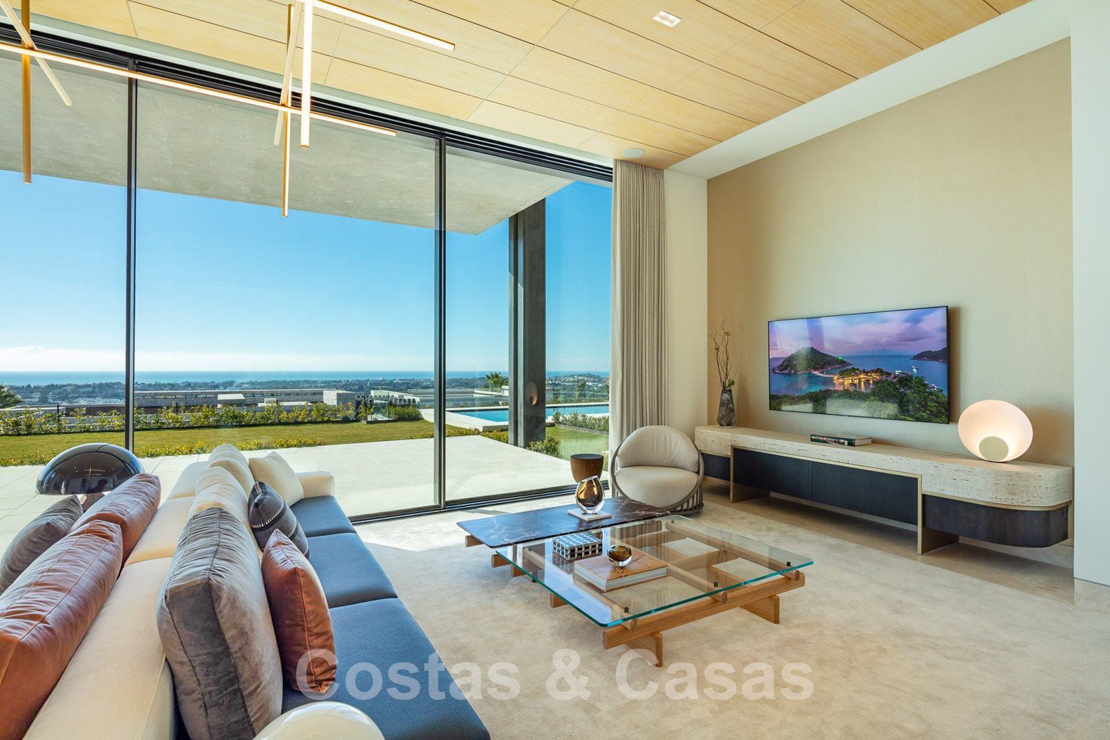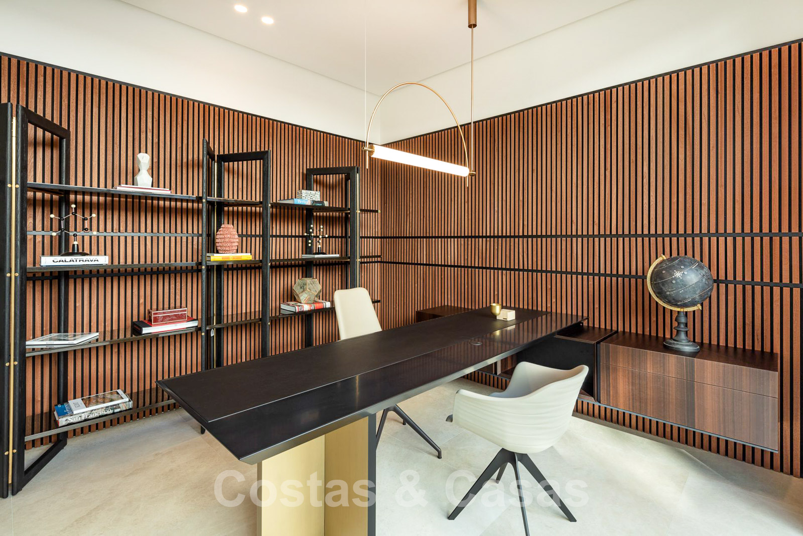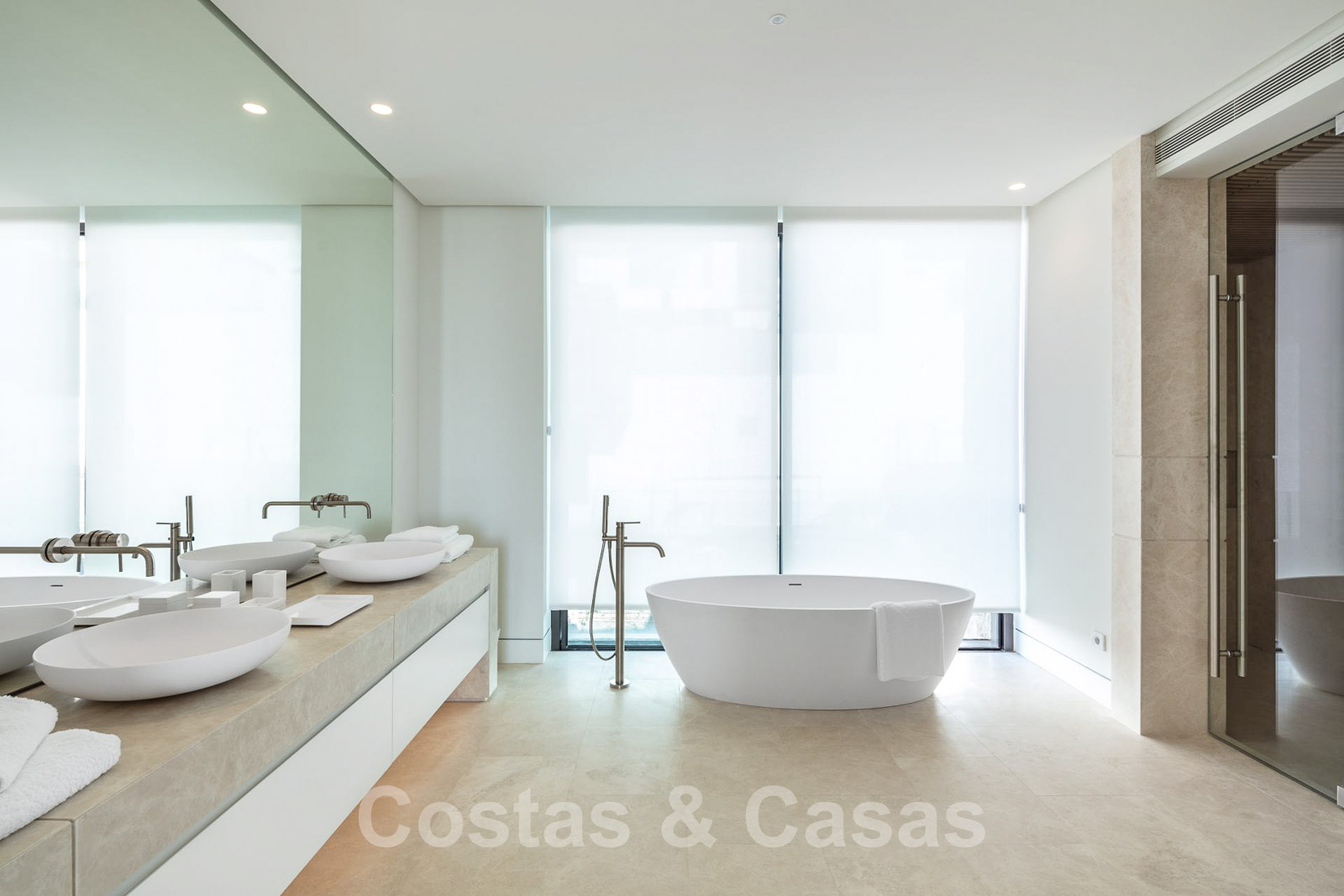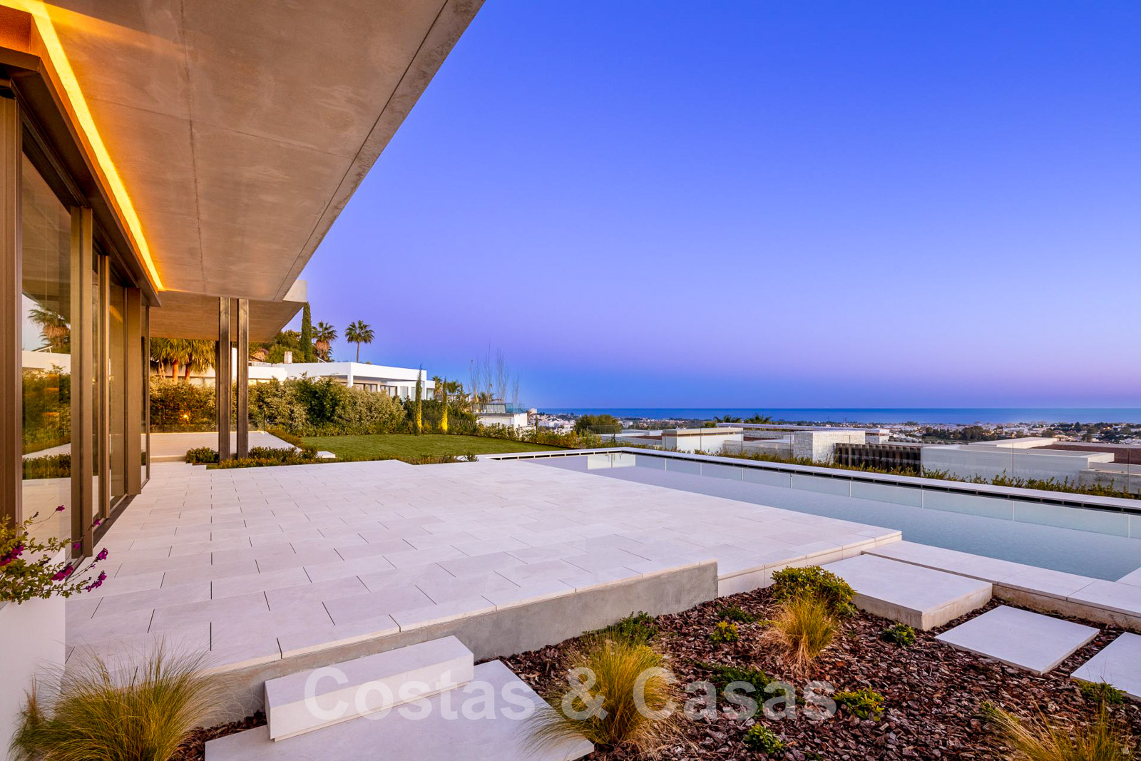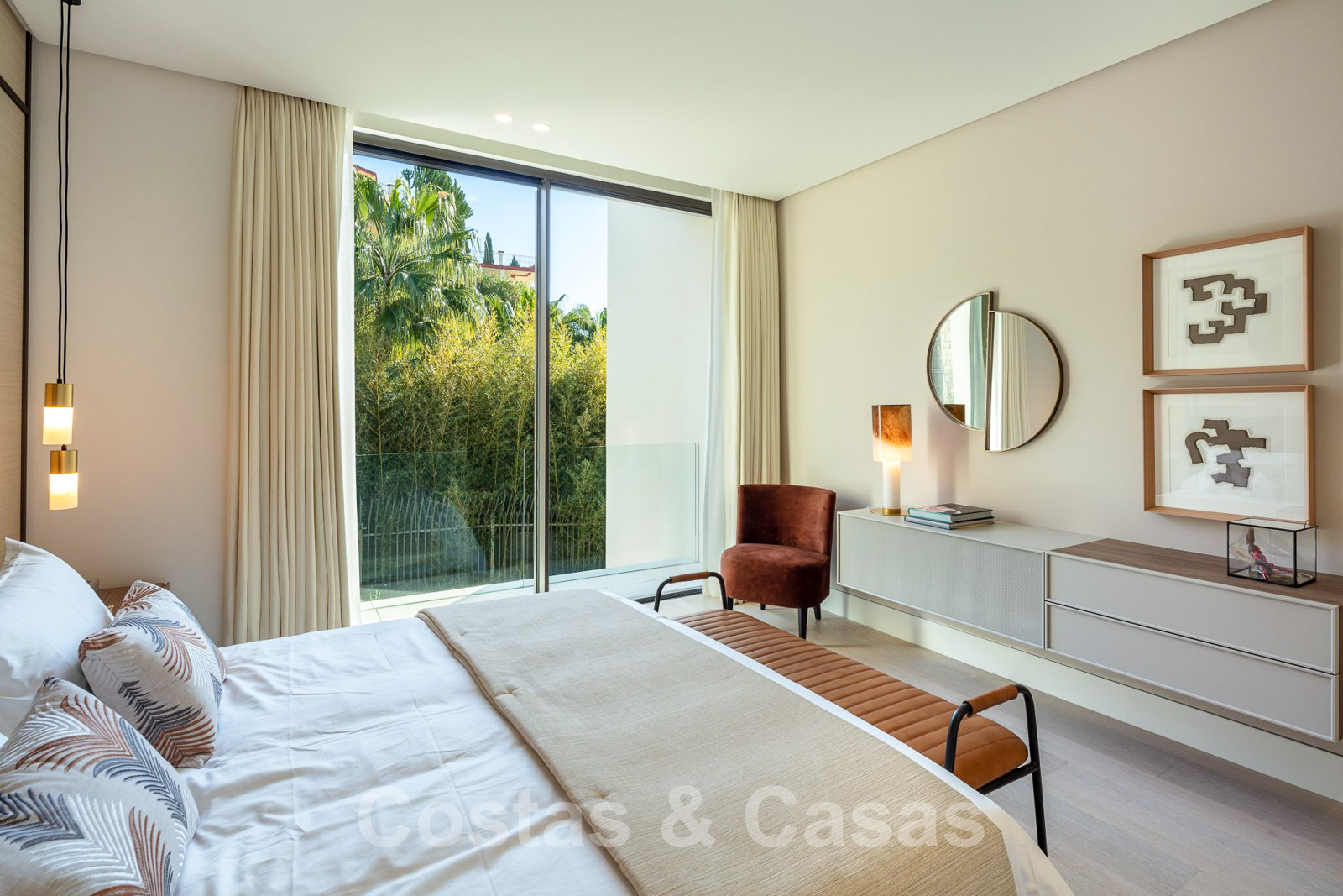 Domotique avancée. Climatisation. Chauffage par le sol dans toute la villa. Armoires encadrées. Éclairage extérieur. Plafonds hauts.