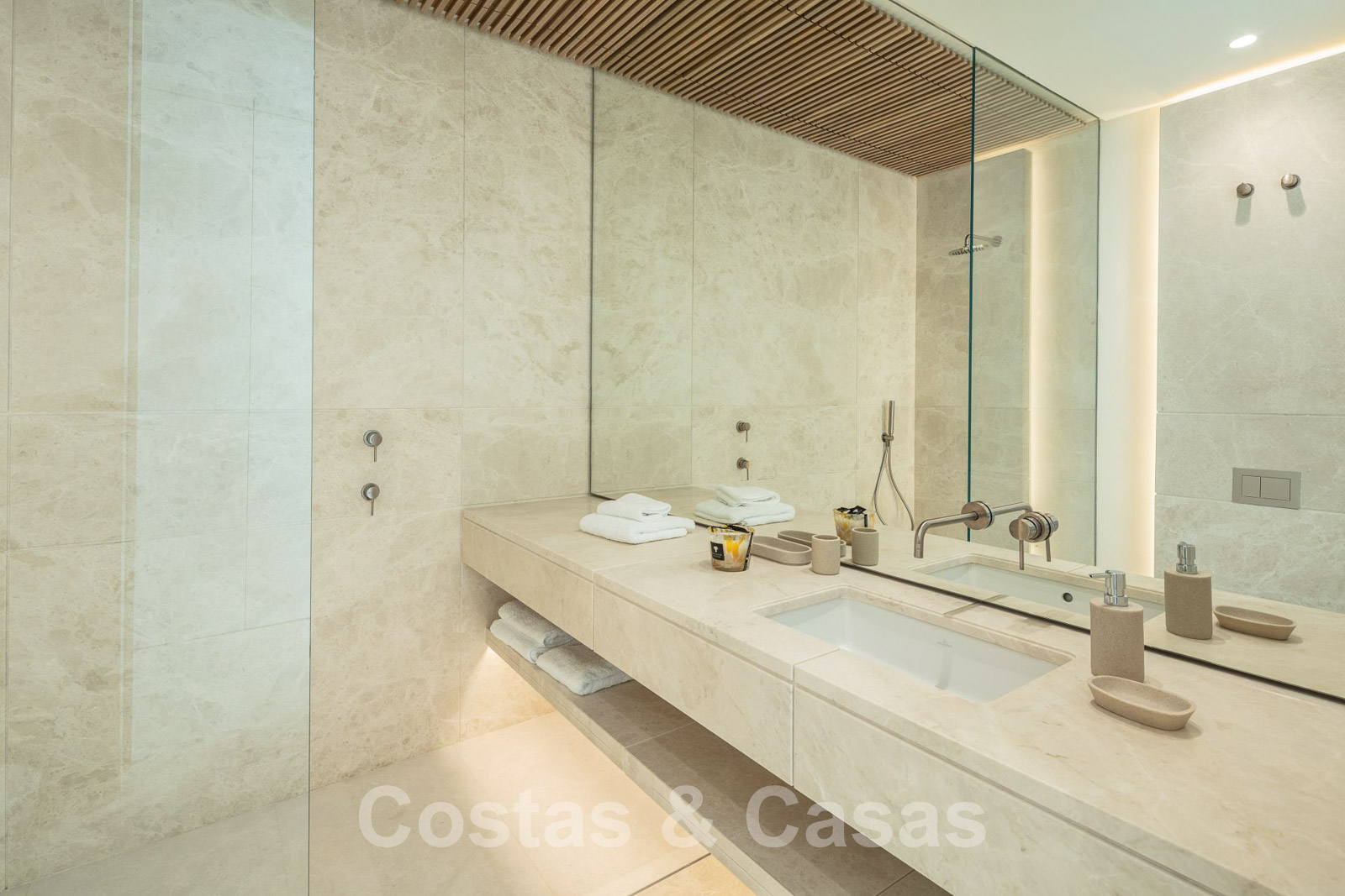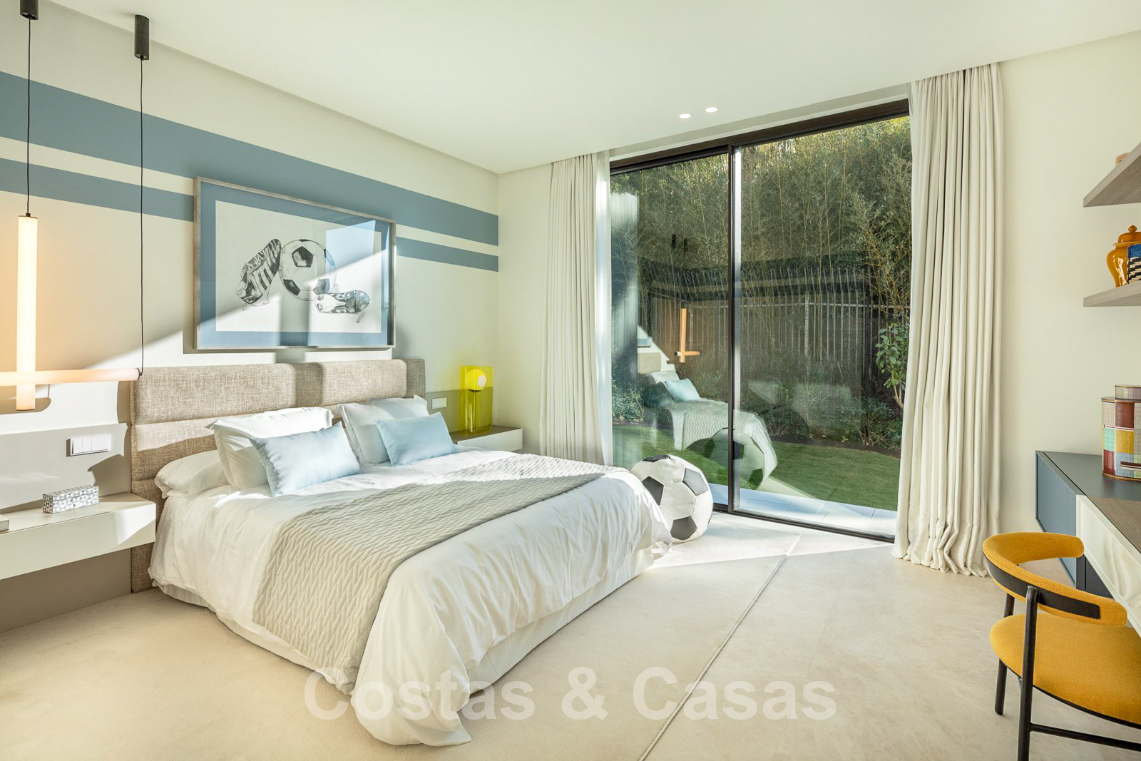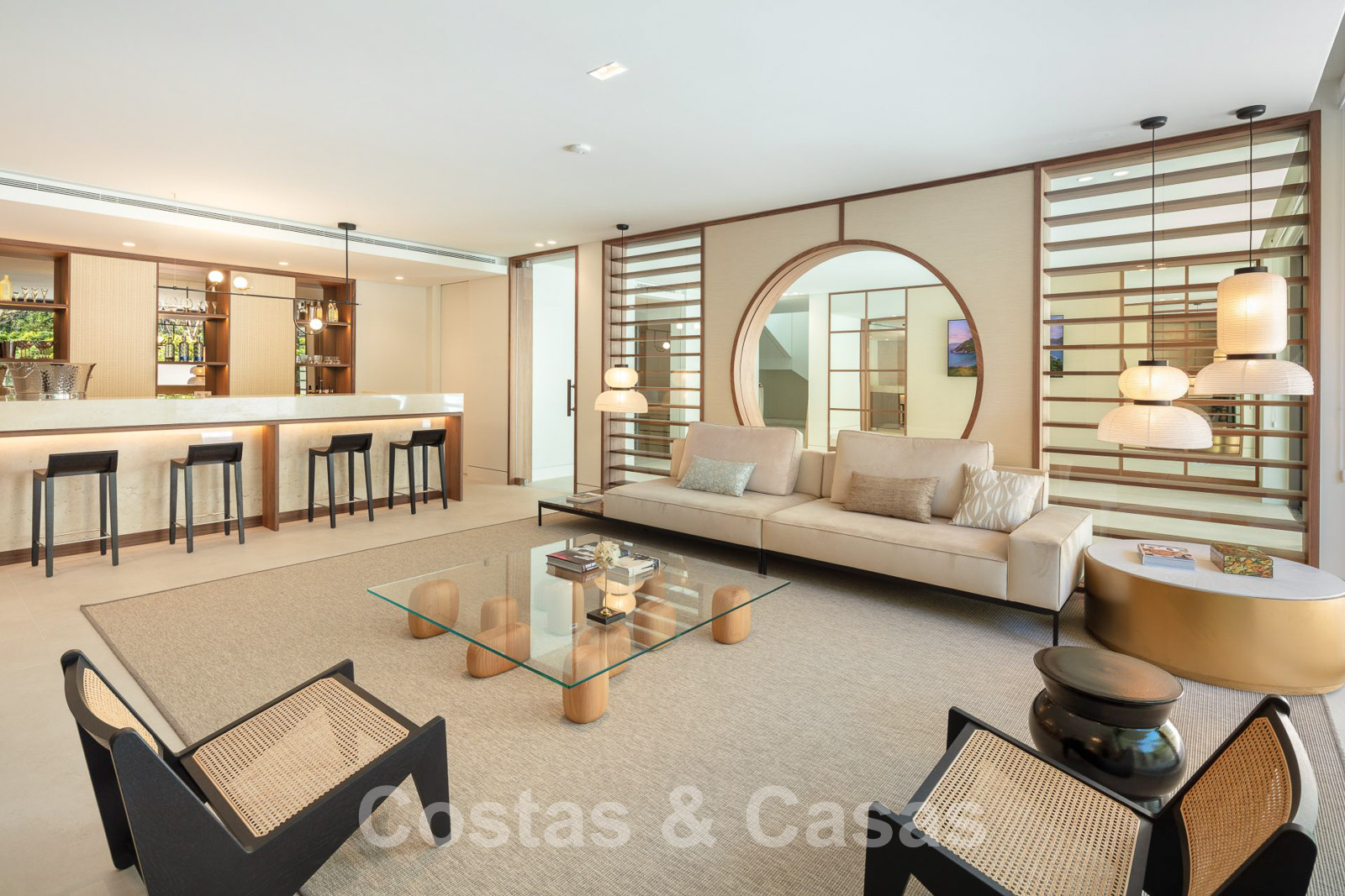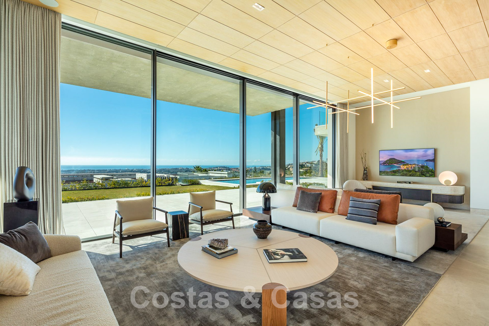 Domotique avancée. Climatisation. Chauffage par le sol dans toute la villa. Armoires encadrées. Éclairage extérieur. Plafonds hauts.