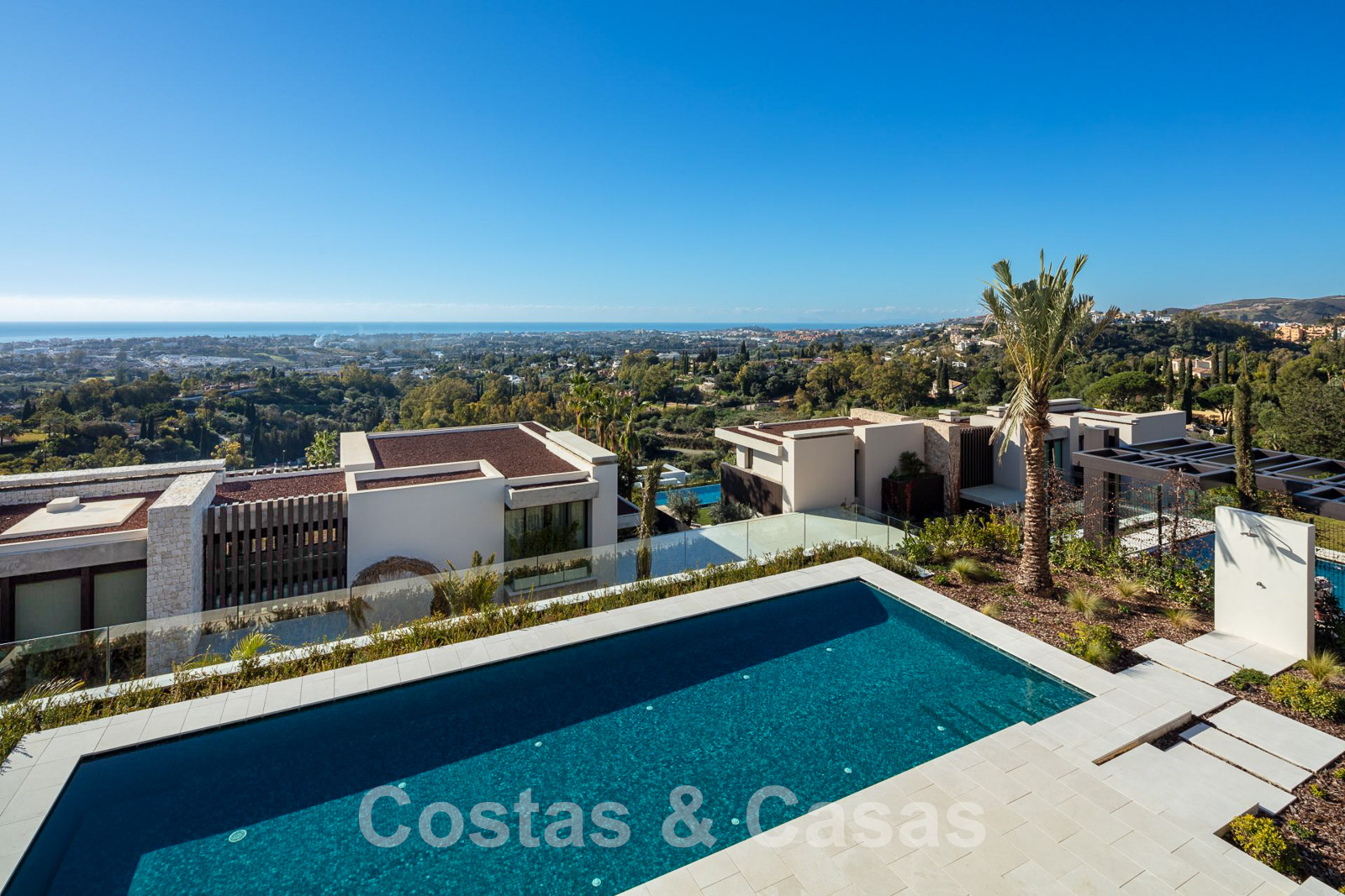 Vente d'une villa de conception architecturale, prête à être emménagée, avec vue sur la mer, dans un prestigieux quartier résidentiel protégé, sur les collines de La Quinta, à Benahavis - Marbella