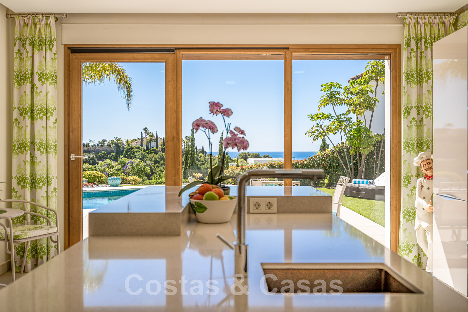 Lorsque vous entrez par le hall d'entrée, la mer scintille immédiatement en arrière-plan..