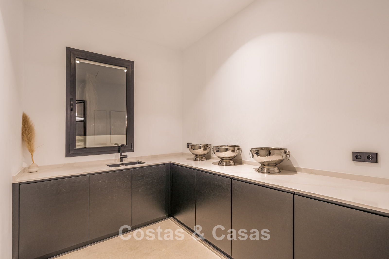 Villa moderne et élégante avec des accents méditerranéens où le luxe et la qualité sont mis en avant. Utilisation de matériaux de qualité avec un haut niveau de finition. Modieuze inrichting met oog voor detail.