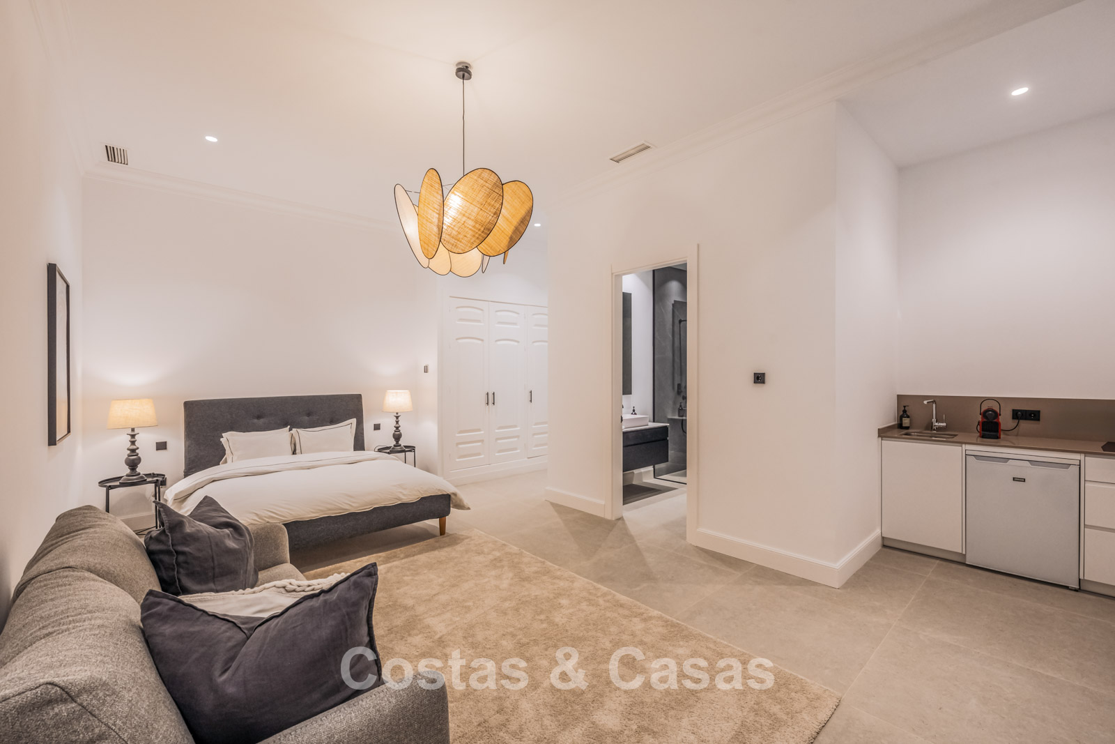 Étage supérieur Superbe suite principale avec un dressing, une salle de bains en marbre et un accès à la terrasse couverte d'où l'on peut admirer de magnifiques vues sur la mer. 2 superbes chambres en-suite.