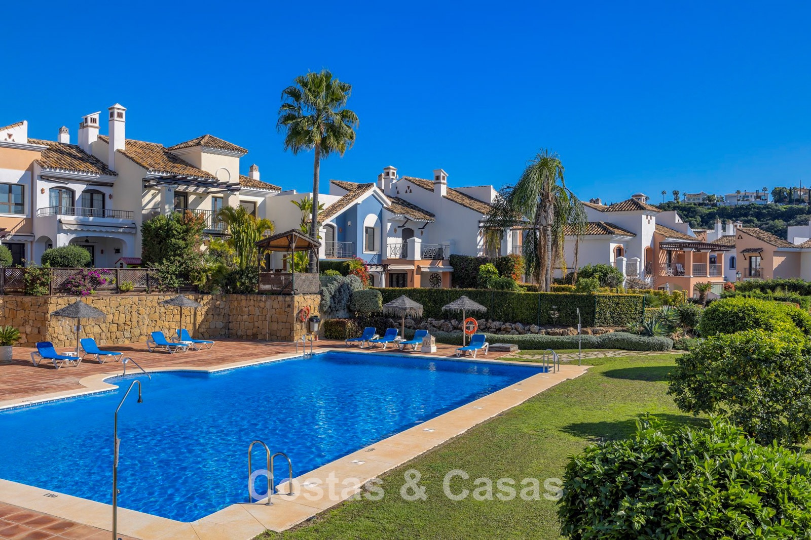 Située dans une résidence prestigieuse dans les collines de Benahavís, un environnement apprécié pour son calme et son charme. À courte distance de la célèbre Vallée du Golf de Nueva Andalucía, regroupant plusieurs parcours de golf de renom. En 5 à 10 minutes, vous accédez à de magnifiques plages, à un centre commercial offrant de nombreux commerces et services, à des beach clubs exclusifs ainsi qu’à diverses commodités. San Pedro et le port de plaisance emblématique de Puerto Banús se trouvent à seulement quelques minutes en voiture. Les résidents de ce complexe à taille humaine profitent de deux piscines communes entourées de jardins paysagers soigneusement entretenus.