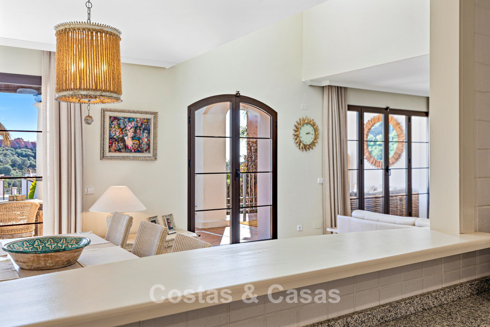 Intérieur lumineux de style méditerranéen contemporain.