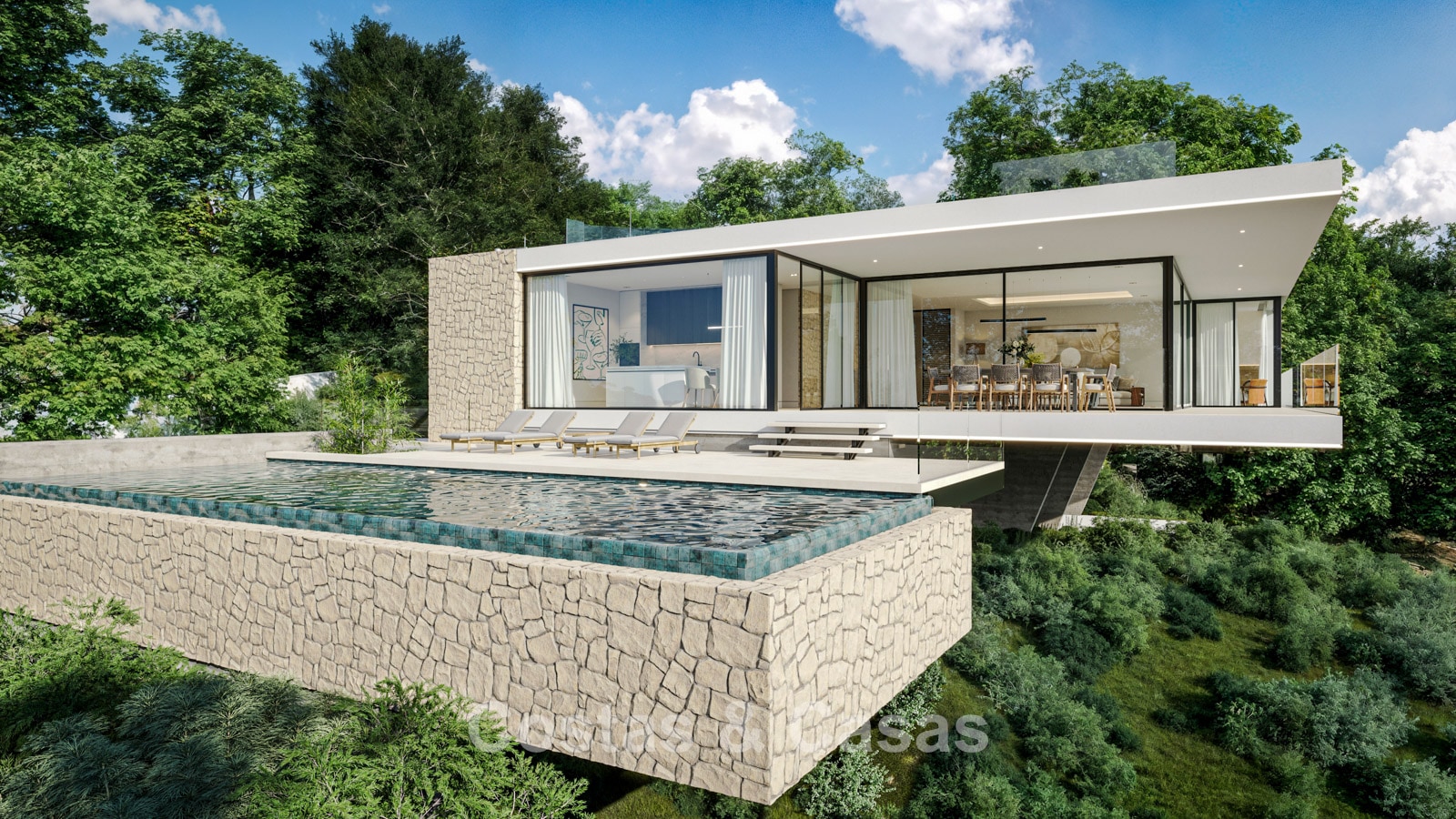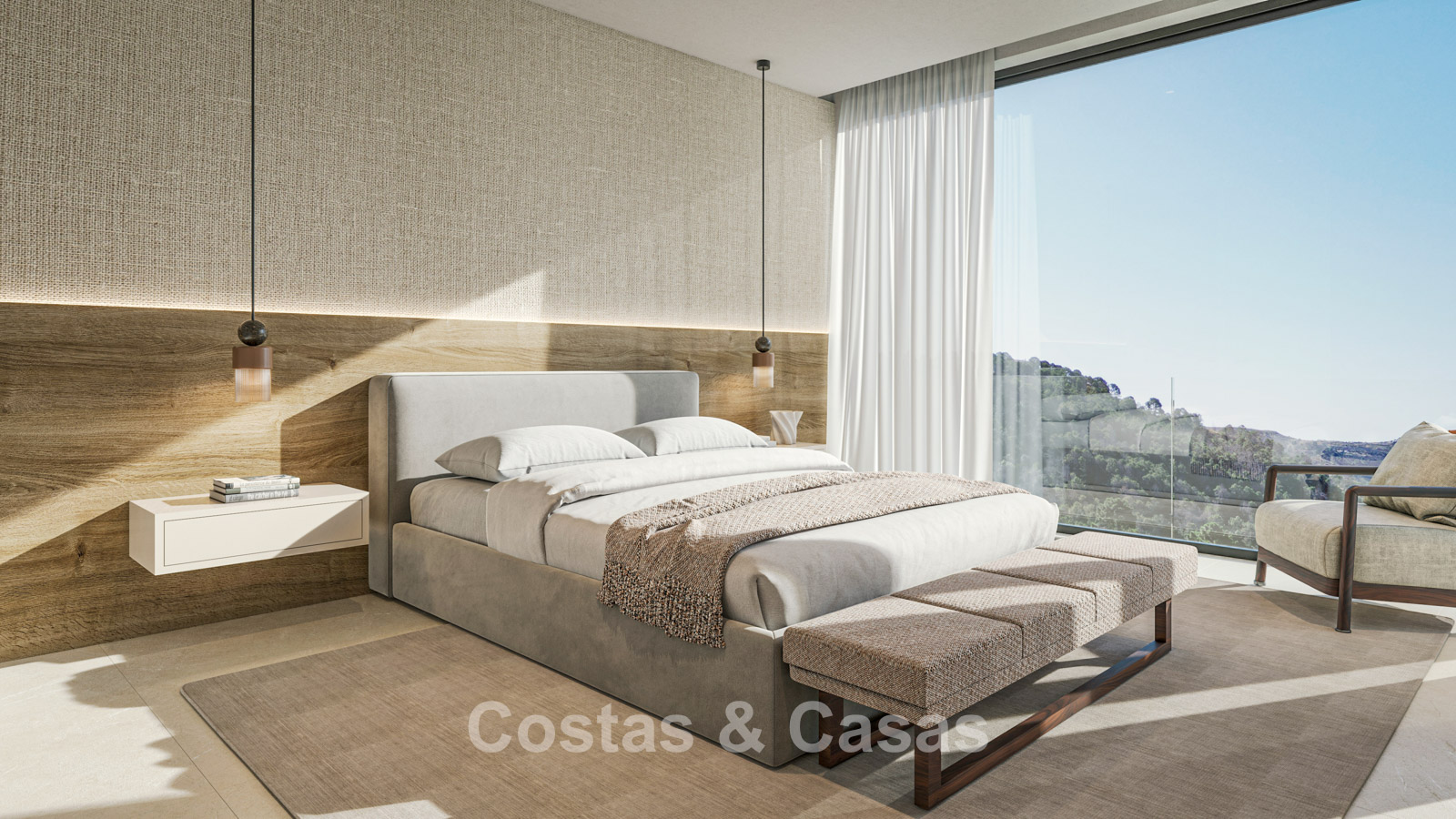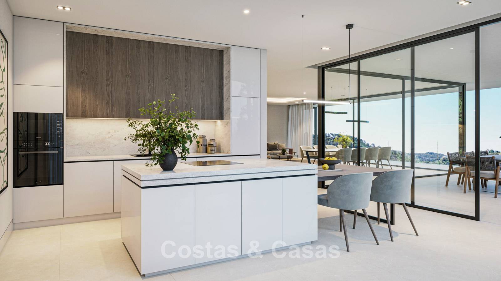 Autres caractéristiques : Certificat énergétique A. Climatisation par système à détente directe dans le faux plafond. Chauffage au sol. Système aérothermique pour l'eau chaude. Balustrades en verre autour des terrasses. Appareils électroménagers Miele ou similaires. Armoires intégrées sur mesure. Éclairage LED intérieur et extérieur. Système domotique. Système de télécommunication. Volets roulants motorisés. Système d'irrigation automatique.