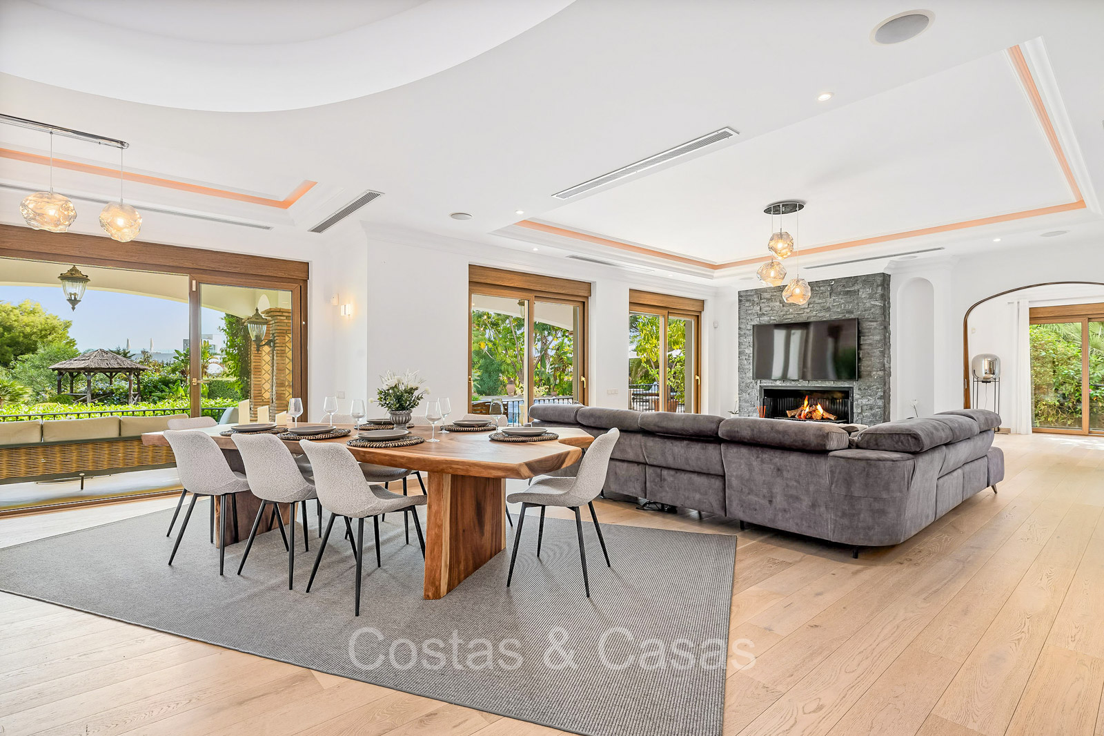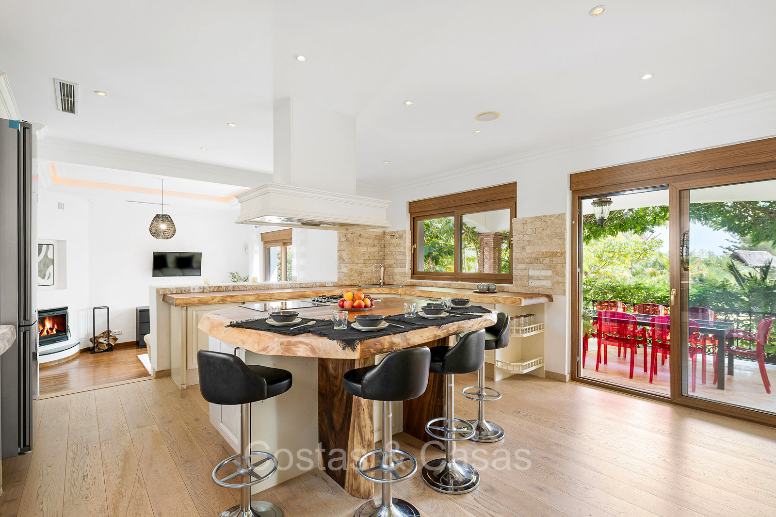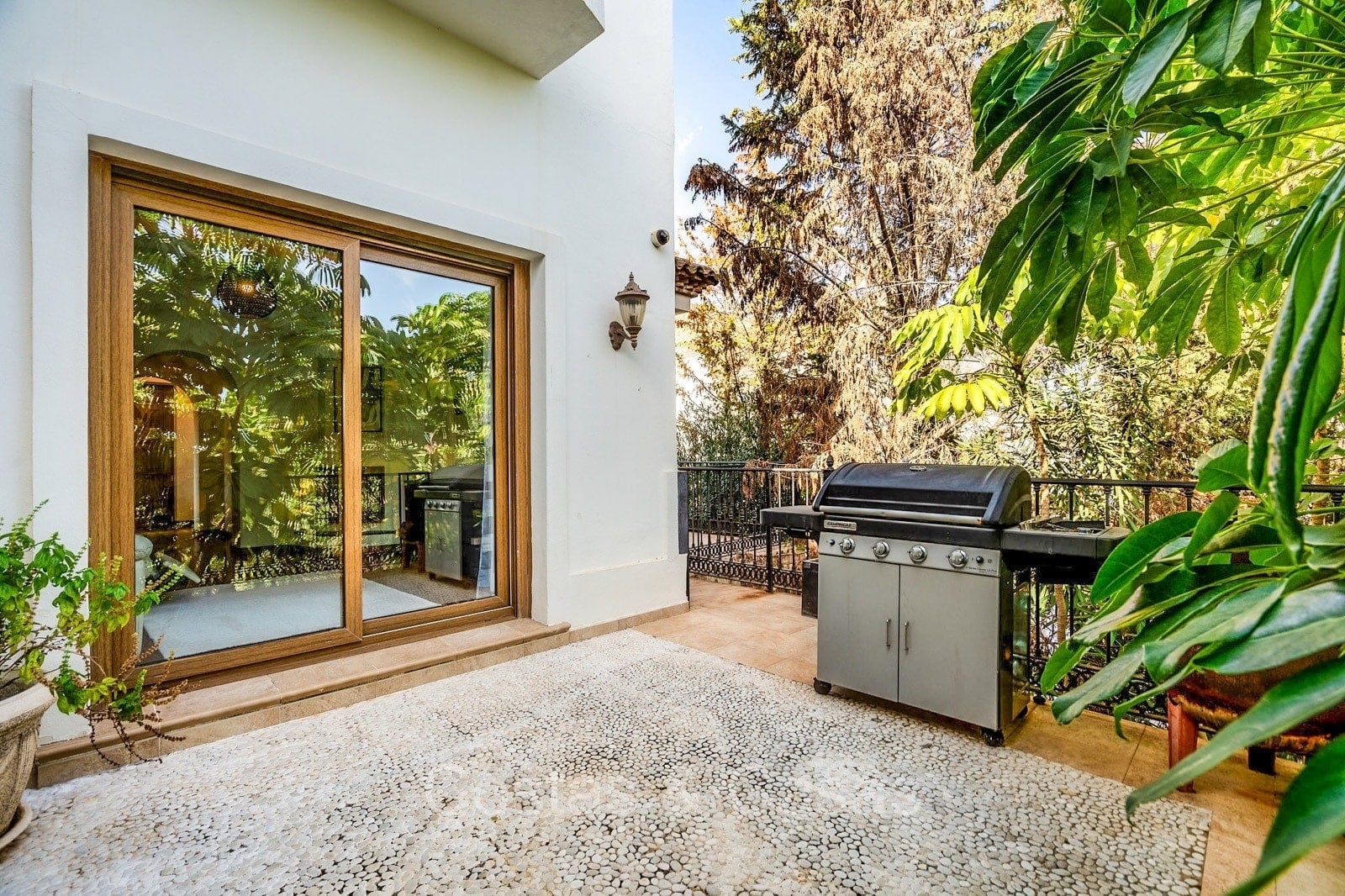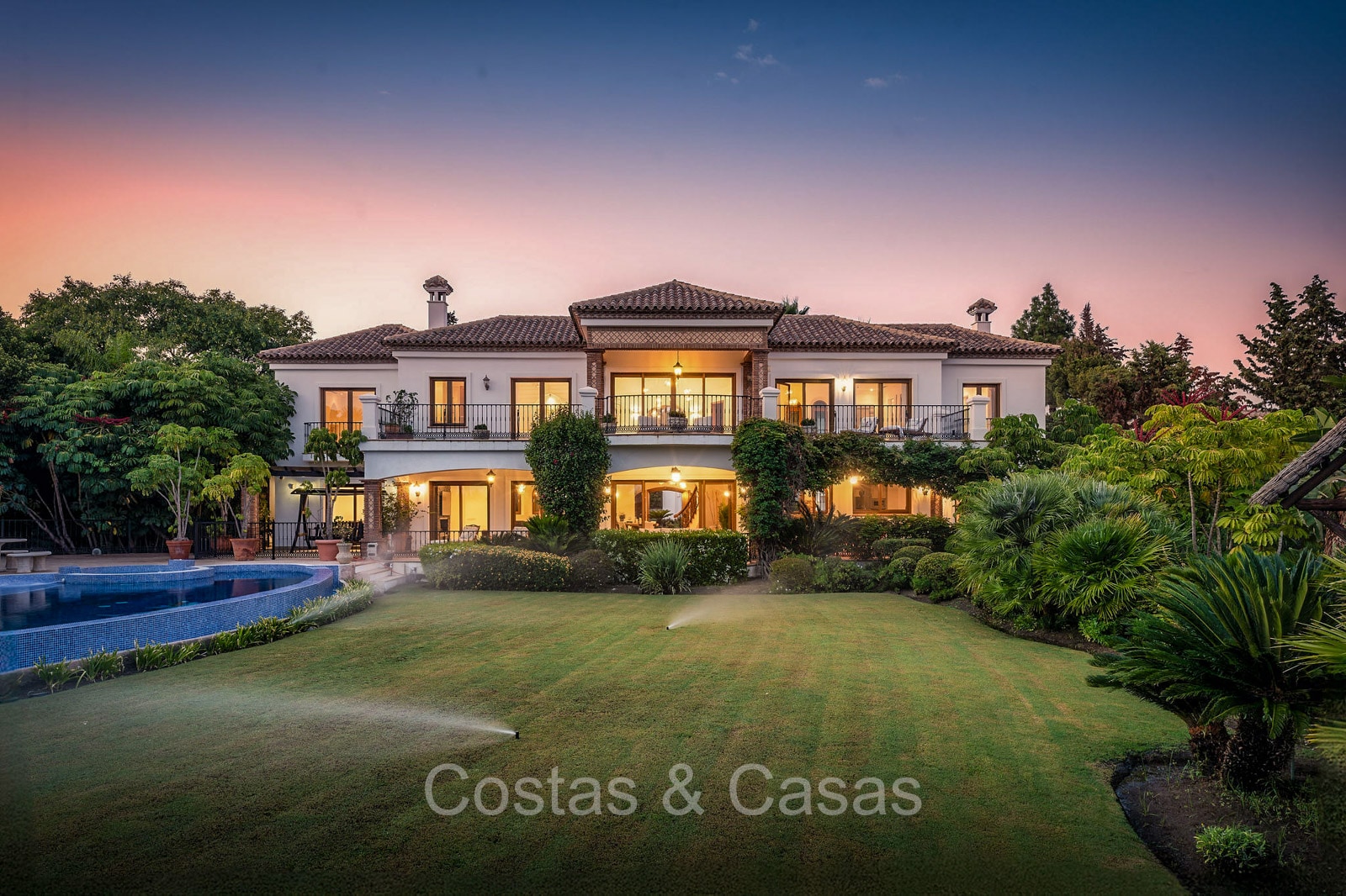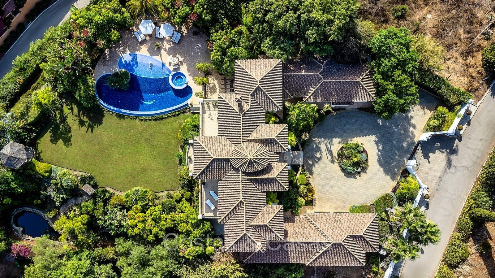 Autres fonctionnalités : Climatisation. Cheminée. Armoires intégrées. Volets roulants. Éclairage extérieur. Système d'irrigation automatique.