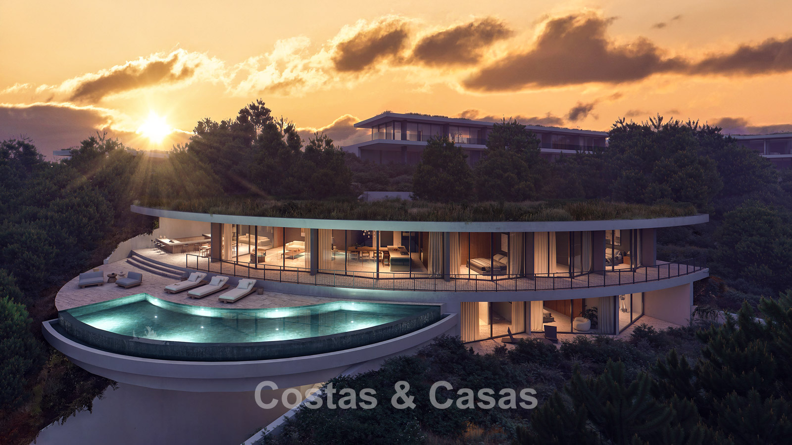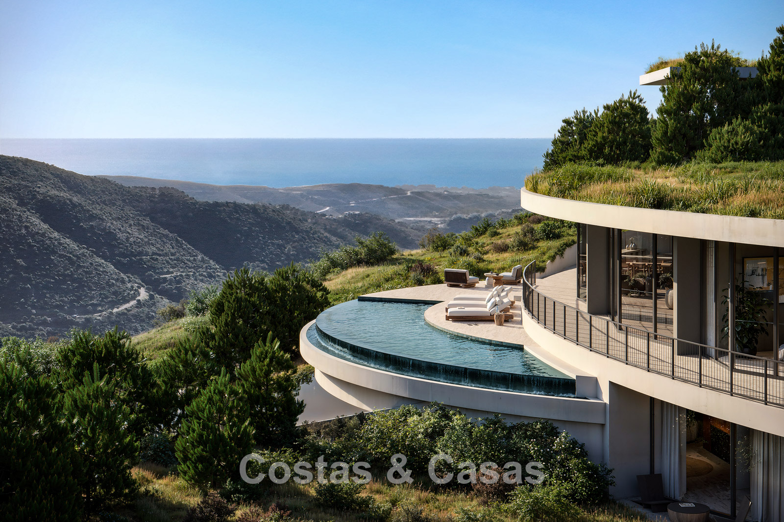 Terrain/jardin : 2 000 m² Surface construite : 539 m² Superficie de la terrasse : 331 m² Chambres : 5 Salles de bains : 5 Toilettes d’invités : 2