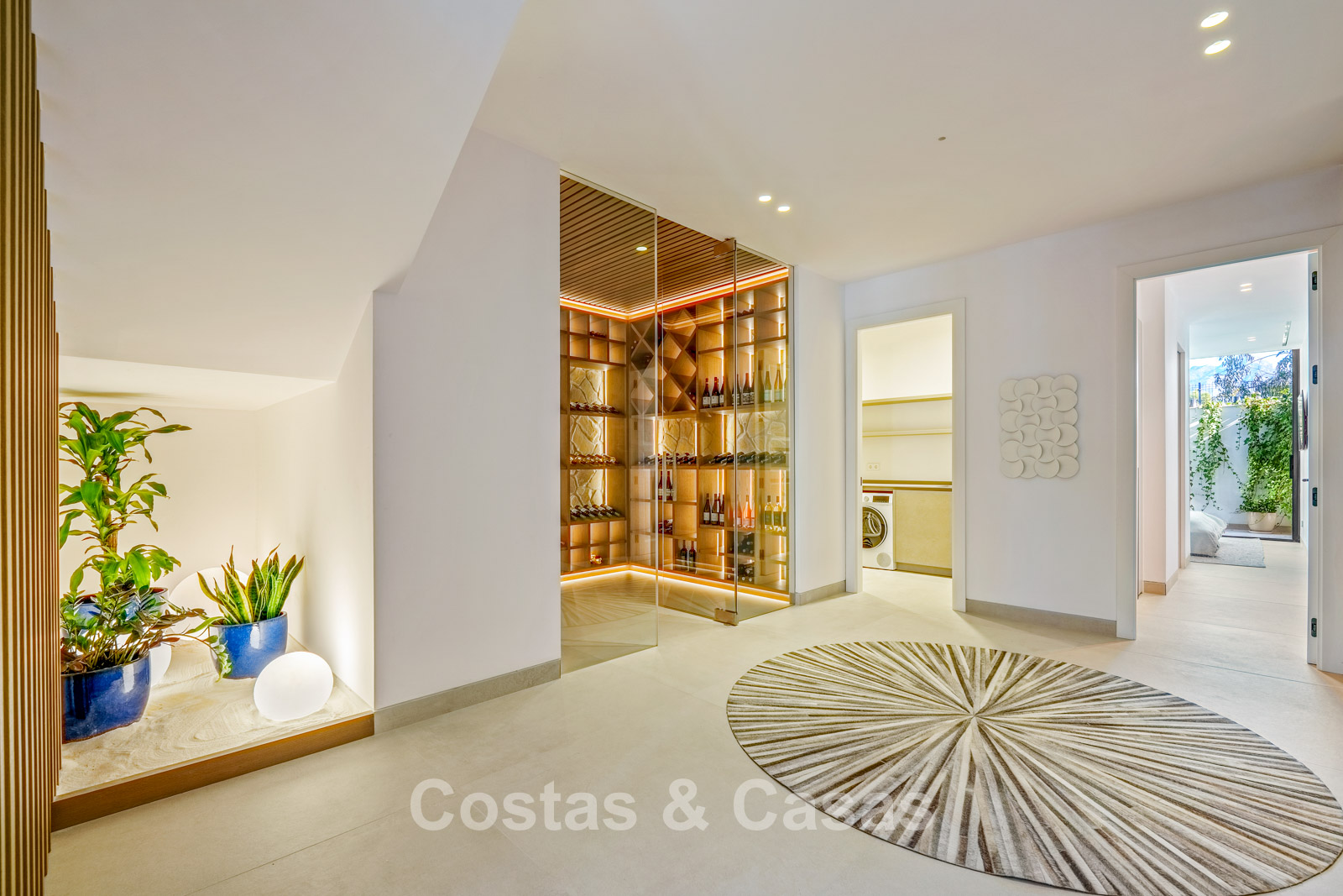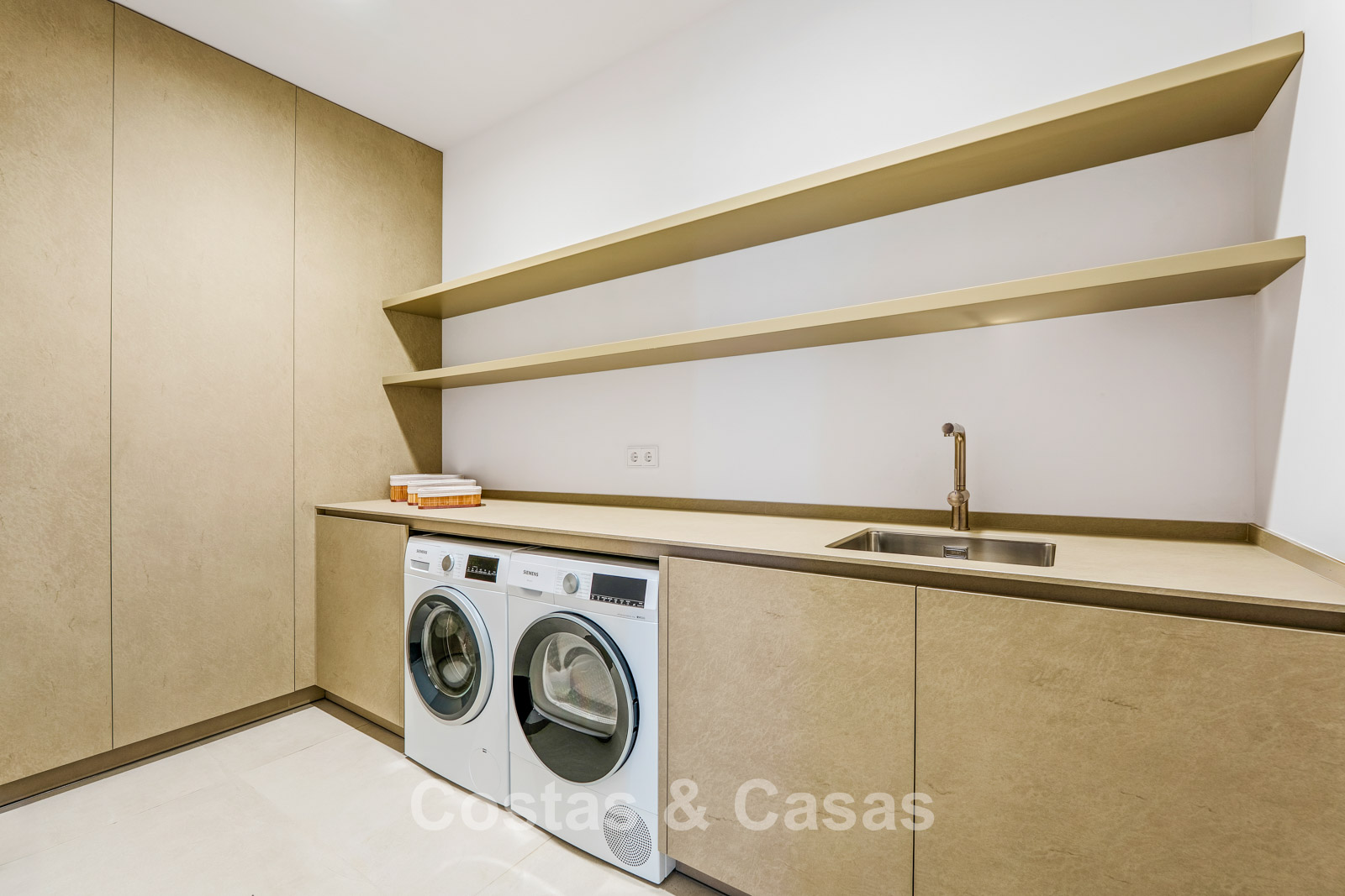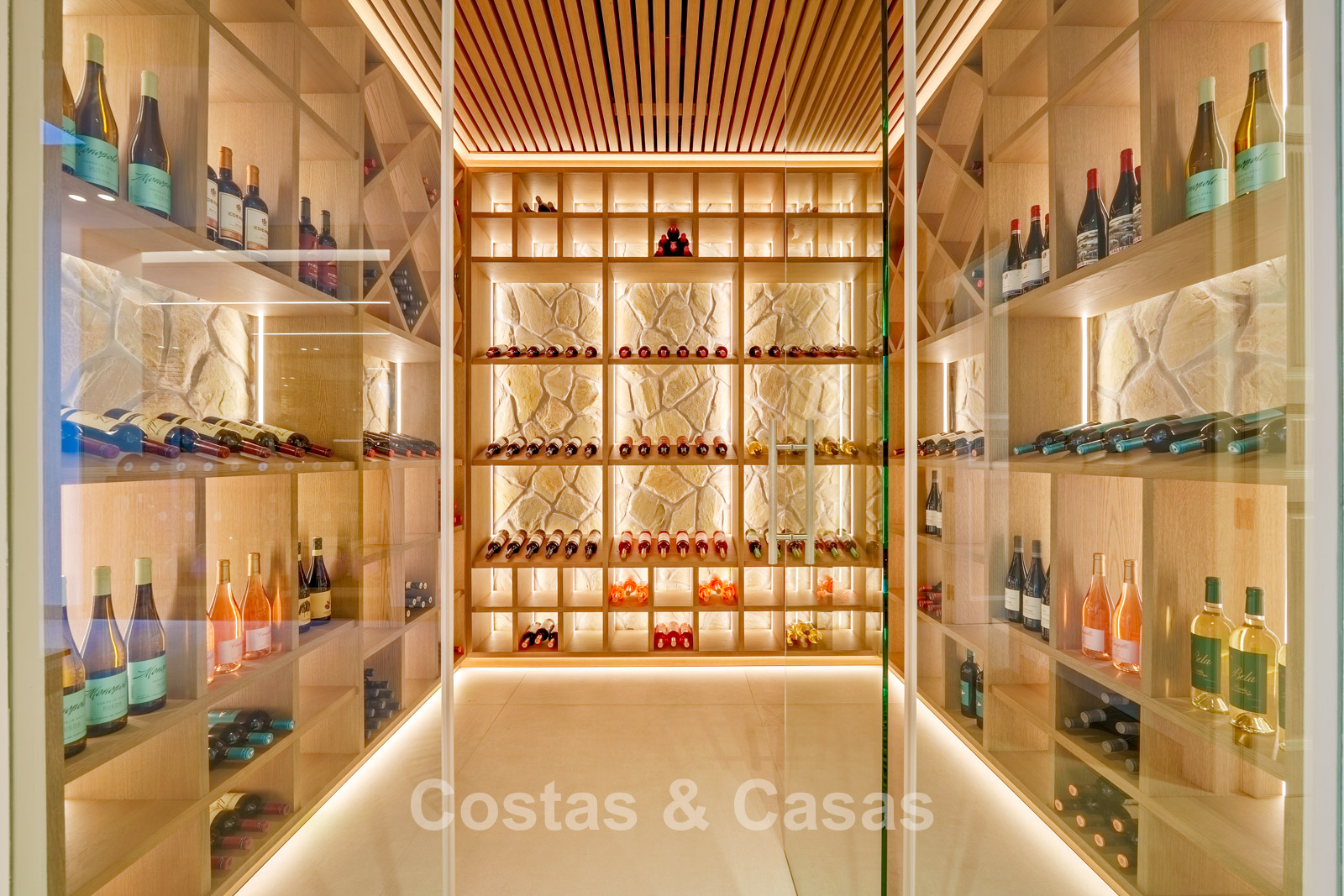 Le design reflète une esthétique contemporaine où lignes pures et matériaux naturels se renforcent mutuellement. Conçue avec des matériaux haut de gamme et une architecture contemporaine. Les espaces intérieurs et extérieurs se fondent harmonieusement grâce aux baies vitrées du sol au plafond qui laissent entrer la lumière et la nature. L’intérieur élégant et épuré dégage un luxe chic, avec des matériaux raffinés et des accents élégants. Un vaste espace de vie avec une partie à double hauteur combine un séjour stylé et une salle à manger. La cuisine sur mesure est entièrement équipée avec des appareils haut de gamme et dispose d’un îlot servant d’espace petit-déjeuner. 5 chambres, 4 salles de bains, toutes finies avec le plus grand souci du détail. Suite parentale avec terrasse privée, dressing et vues exceptionnelles. Au niveau du sous-sol se trouve un espace détente avec zone chillout et bar. Salle de sport entièrement équipée. Cave à vin climatisée. Buanderie équipée avec appareils Siemens. Espace de rangement supplémentaire. Local technique. Sol en carrelage de haute qualité. Garage pour 4 voitures équipé d’un point de recharge pour véhicules électriques.