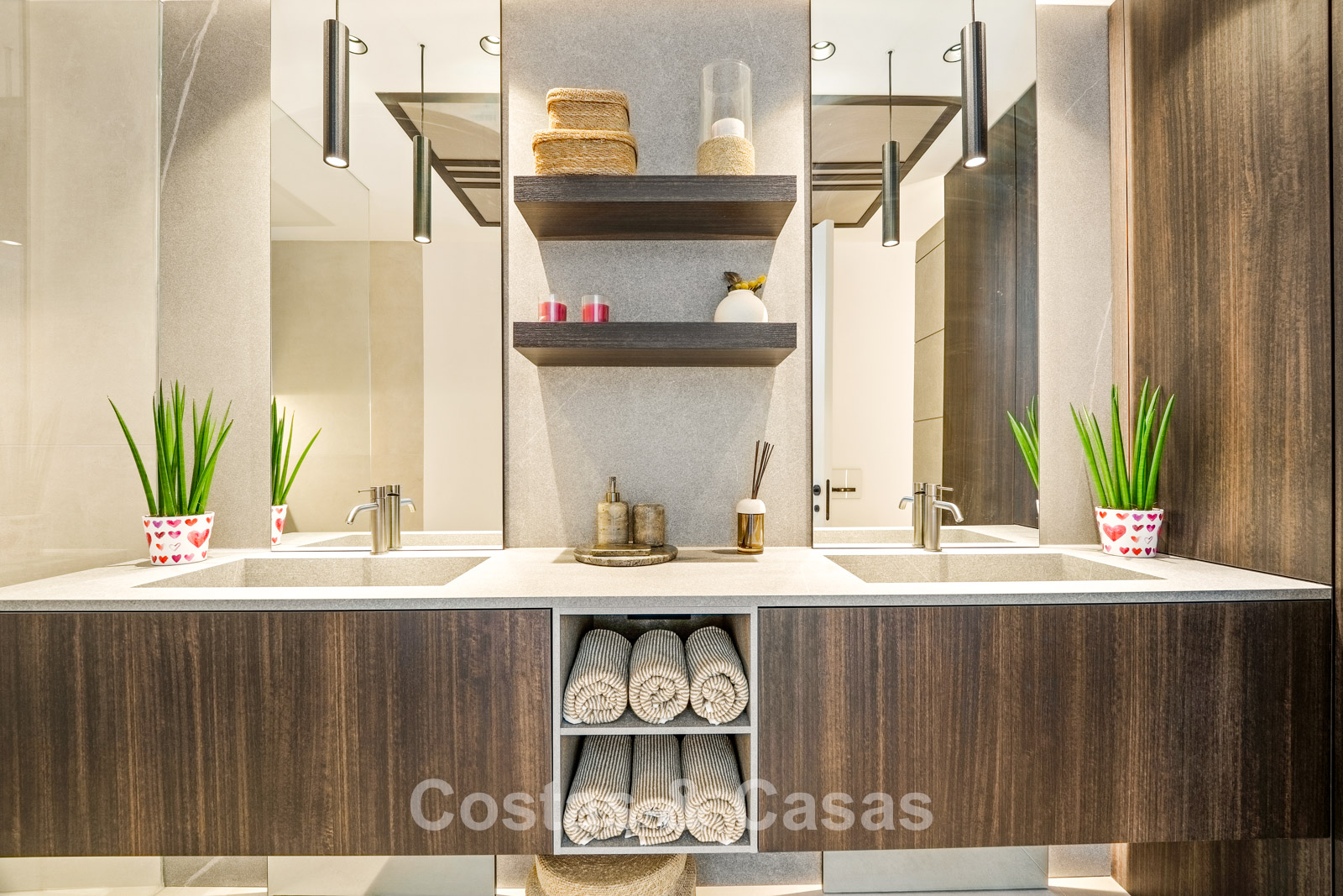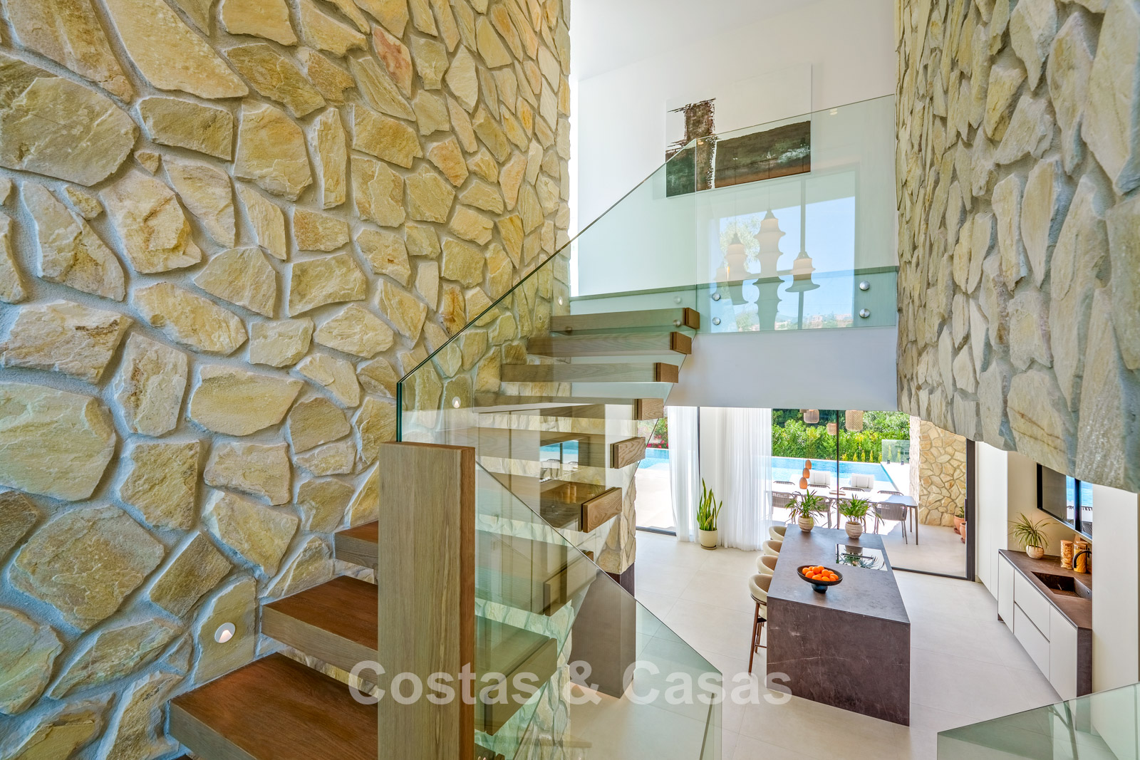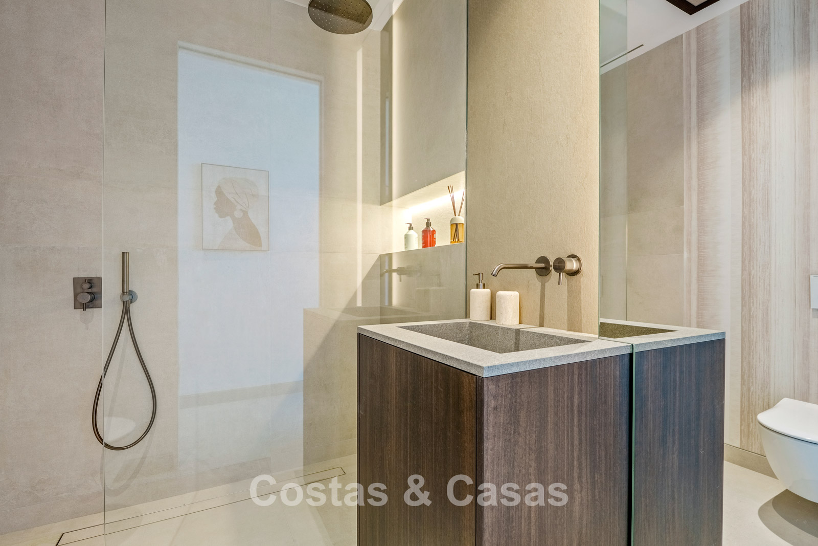 Autres caractéristiques : Climatisation chaud/froid. Cheminée moderne ouverte. Double vitrage. Balustrades en verre autour des terrasses. Placards encastrés sur mesure. Éclairage LED intérieur et extérieur. Douche extérieure.