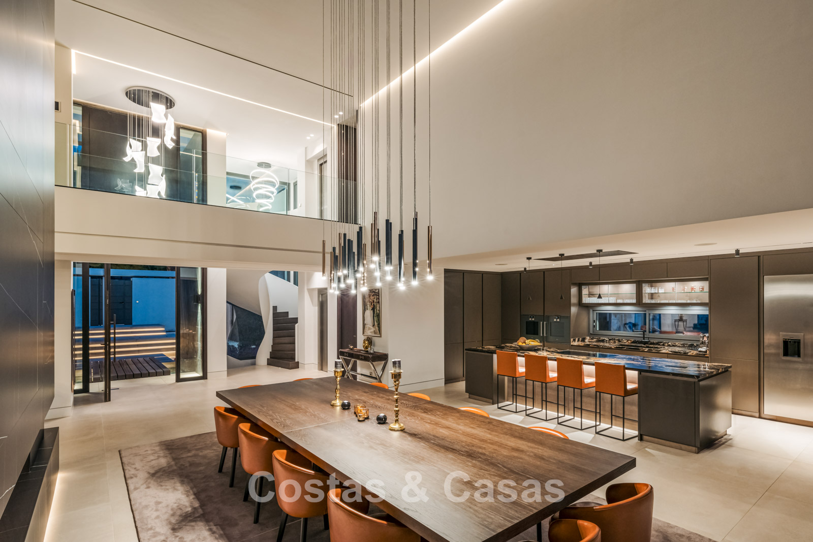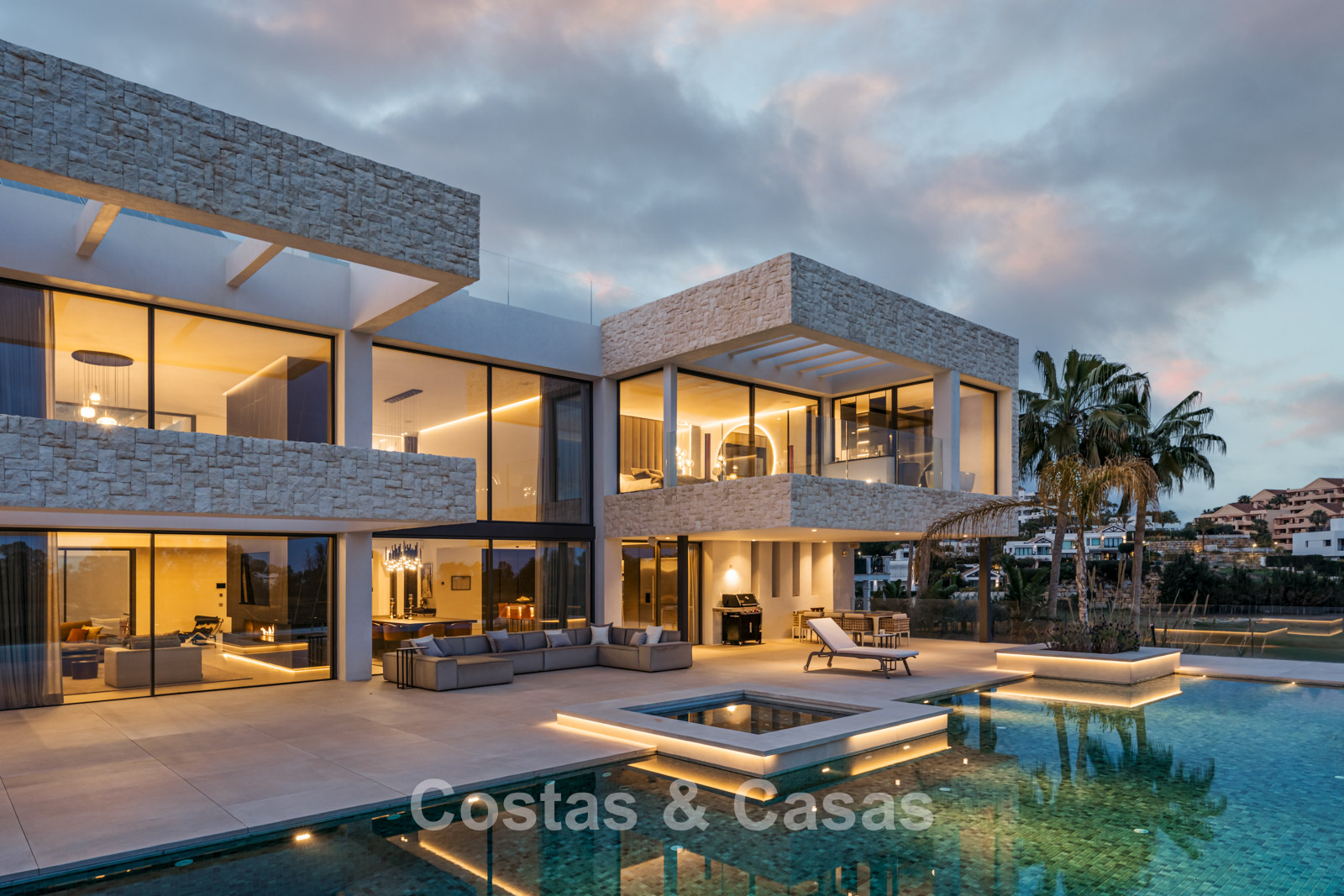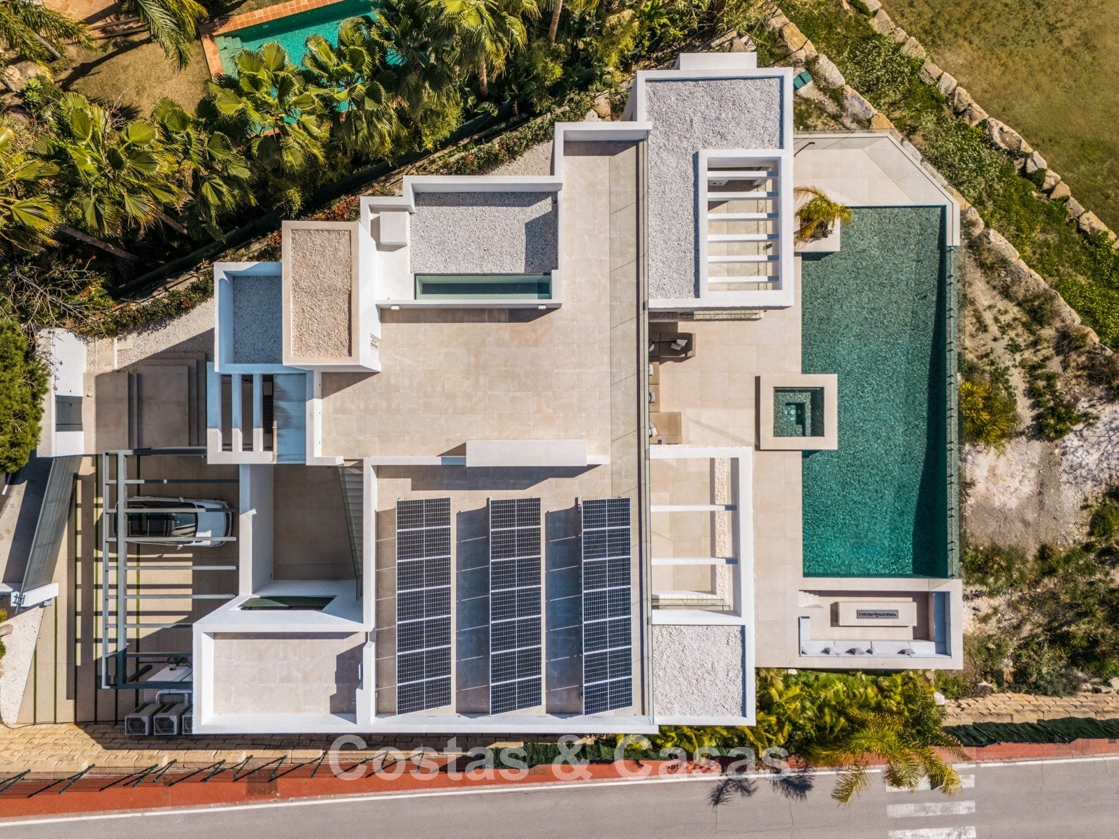Autres caractéristiques: Ascenseur à tous les étages. Climatisation. Chauffage par le sol. Cheminée. Panneaux solaires. Système domotique avancé. Système surround stéréo Dolby. Armoires intégrées. Balustrades en verre. Éclairage LED intérieur et extérieur.