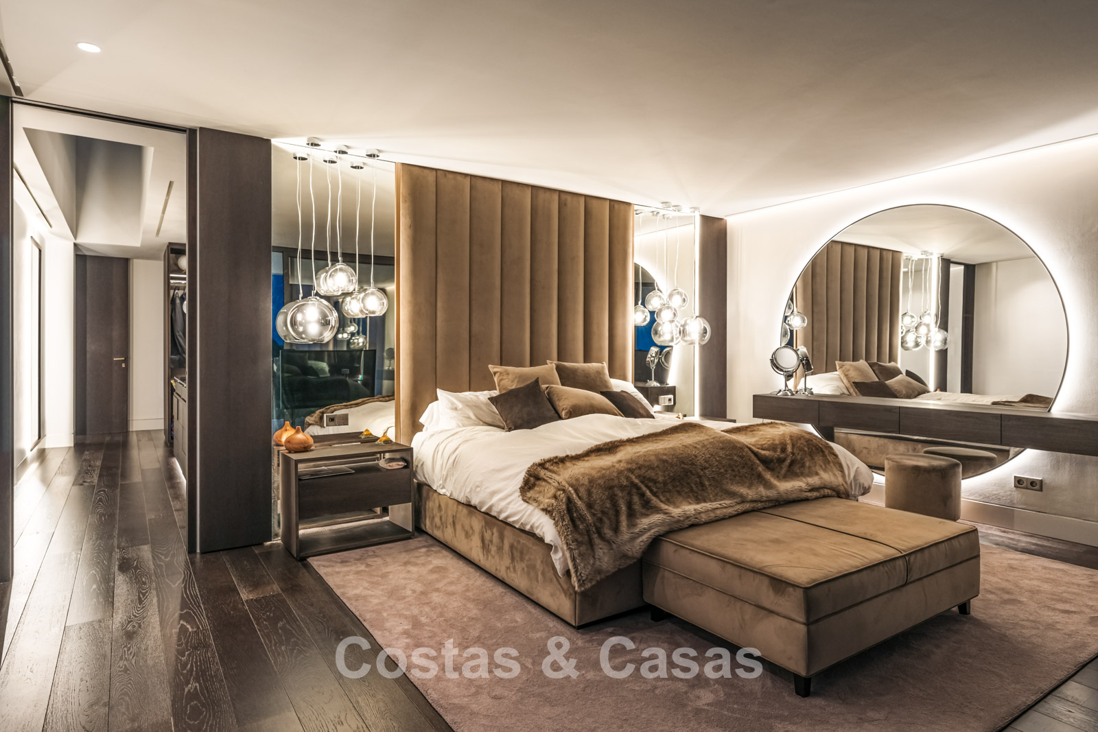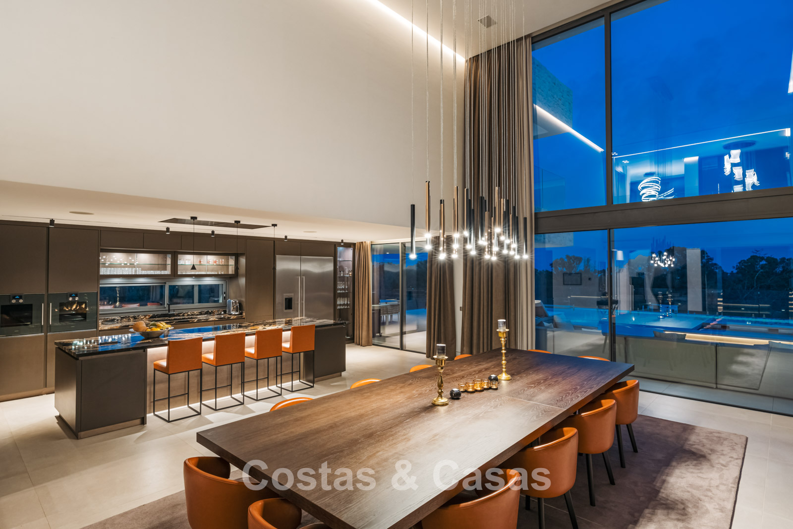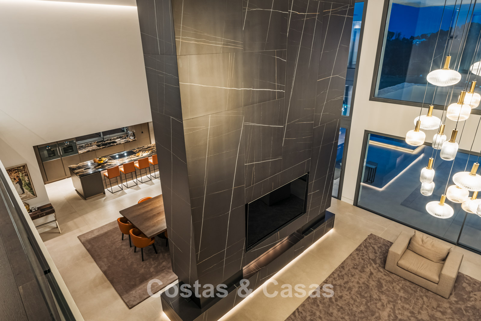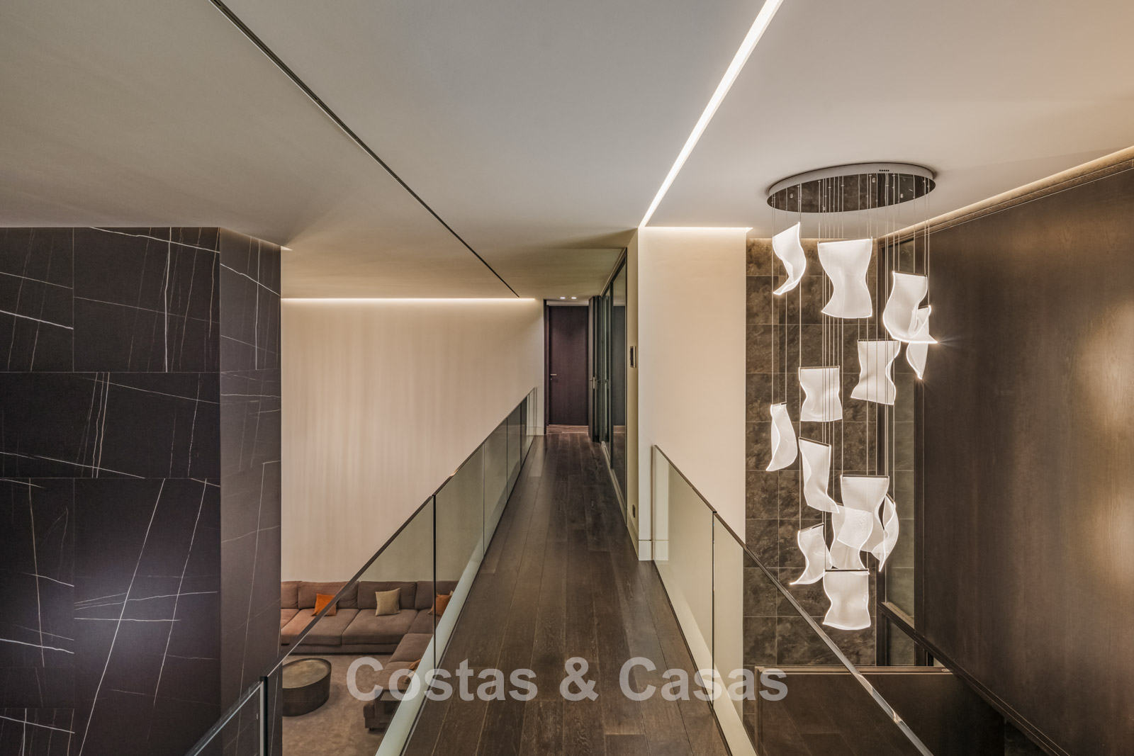 Autres caractéristiques: Ascenseur à tous les étages. Climatisation. Chauffage par le sol. Cheminée. Panneaux solaires. Système domotique avancé. Système surround stéréo Dolby. Armoires intégrées. Balustrades en verre. Éclairage LED intérieur et extérieur.