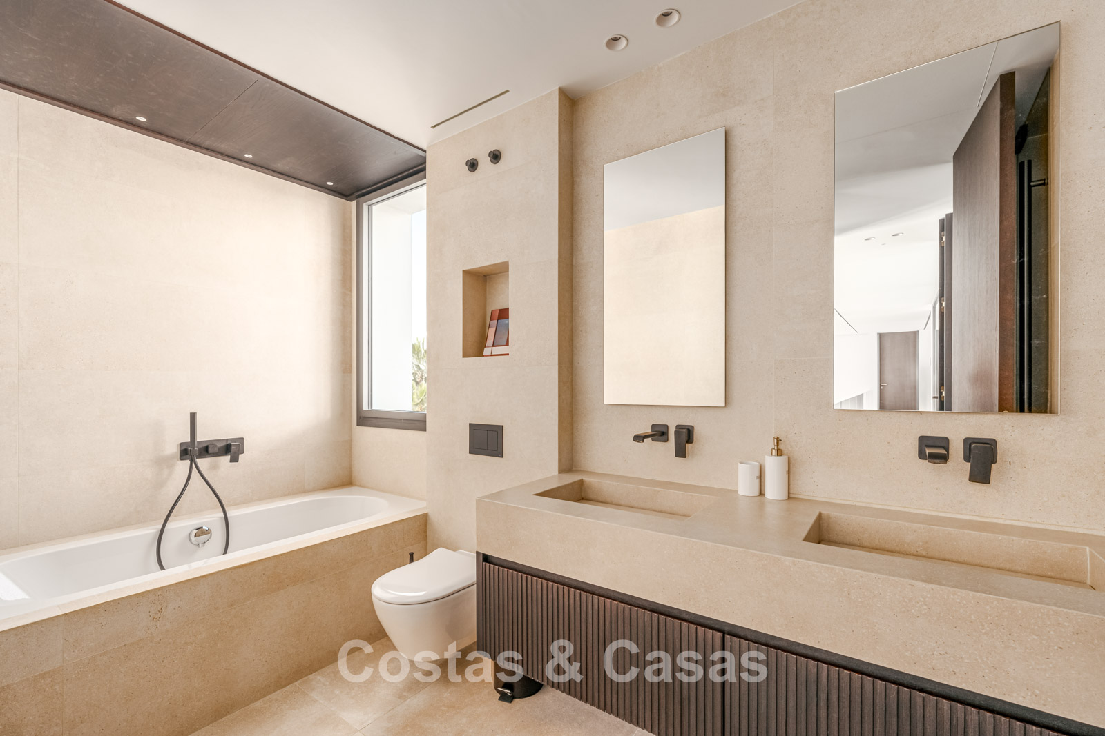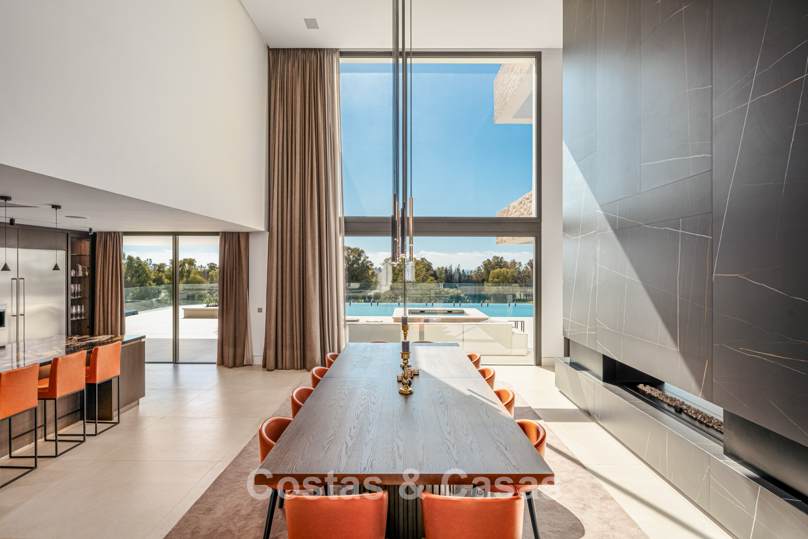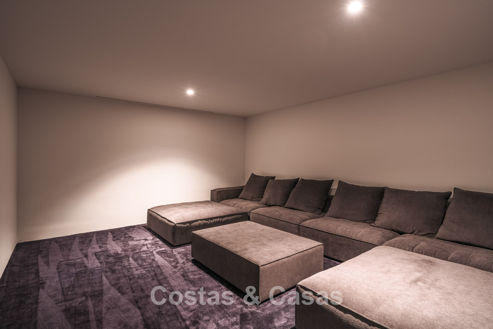 Villa individuelle de luxe à l'architecture épurée et contemporaine. Très haut niveau de finition utilisant des matériaux de construction sublimes. Design intérieur lumineux et raffiné avec plafonds à double hauteur et structures vitrées du sol au plafond. Salon TV convivial avec cheminée. Coin repas intégré. Cuisine design chic et entièrement équipée avec îlot de cuisson central et bar à petit-déjeuner. Les fenêtres coulissantes du sol au plafond s'ouvrent sur les espaces extérieurs accueillants. 4 chambres, 4 salles de bains. Toilette invités. Installations de spa comprenant une piscine intérieure chauffée, un sauna, un bain à vapeur turc et des chaises longues. Salle de remise en forme équipée. Locaux techniques, débarras. Sols en carrelage crème grand format. Abri voiture pour 3 voitures.