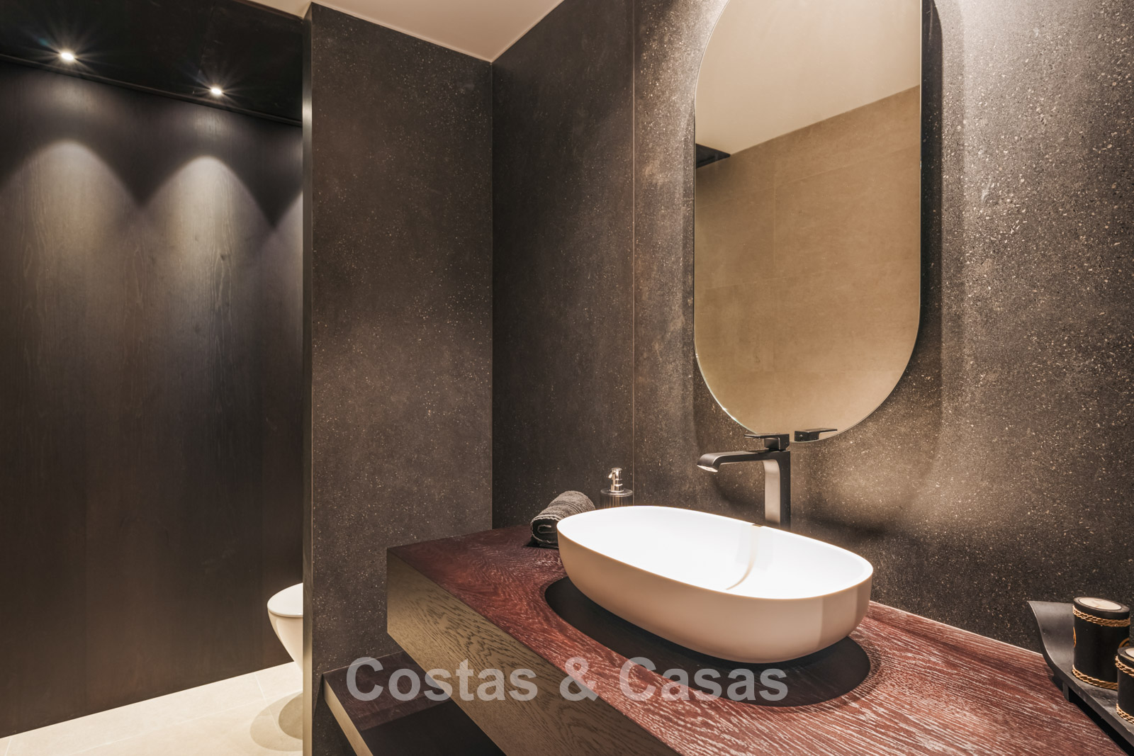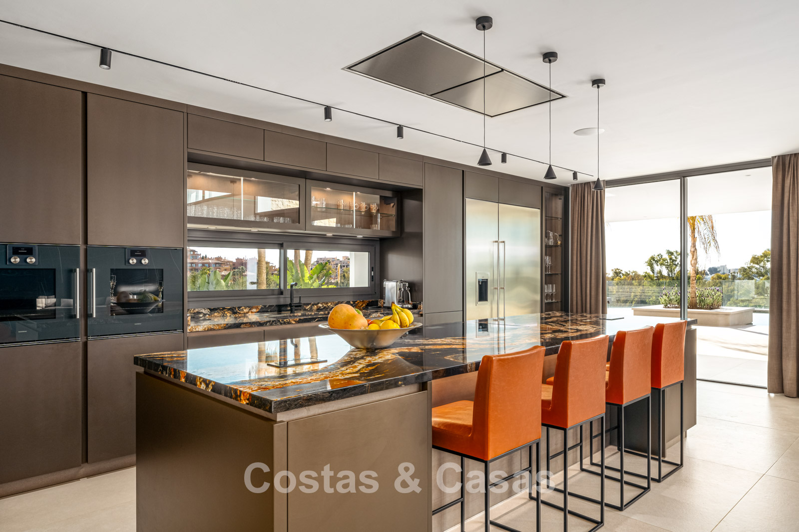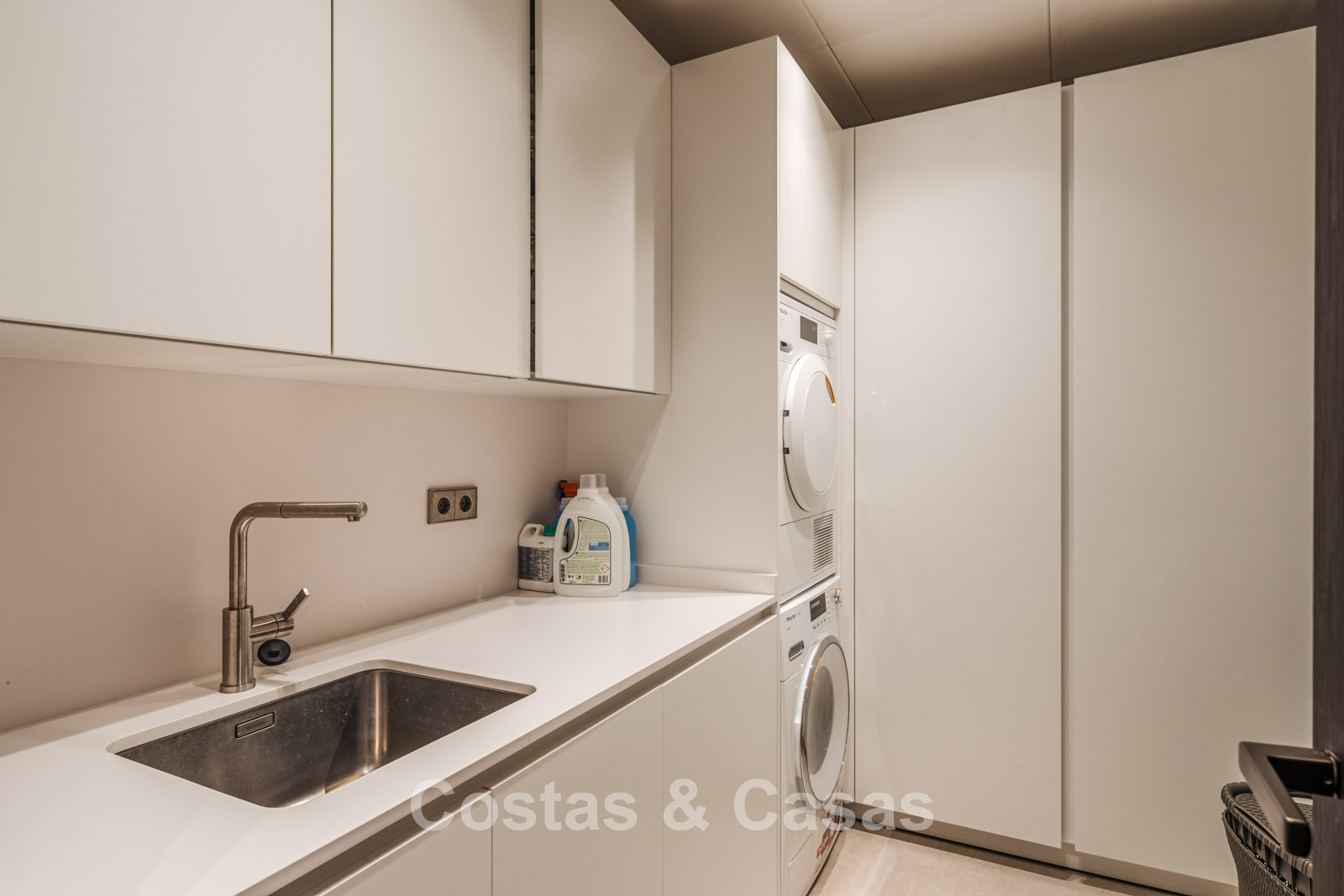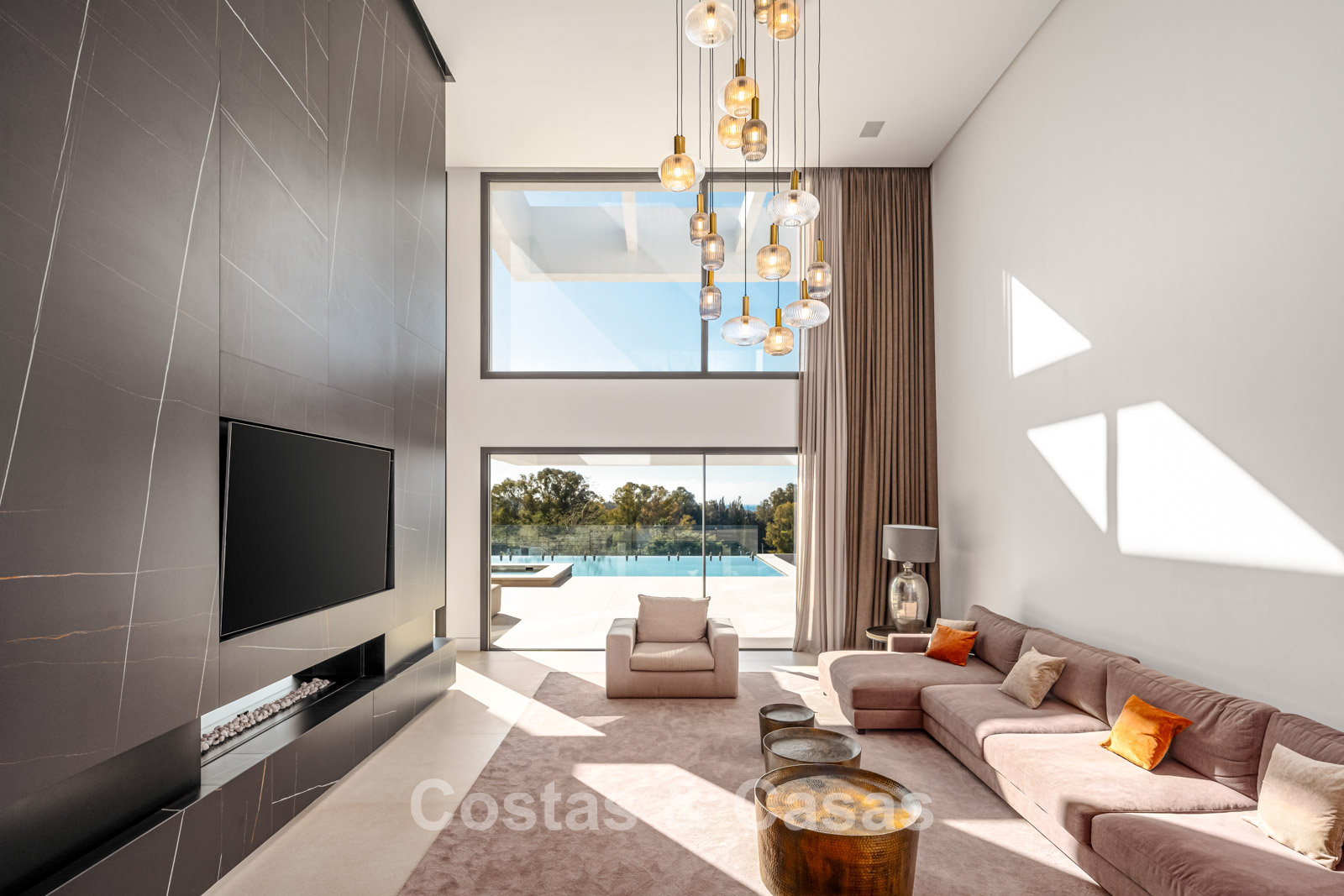 Villa individuelle de luxe à l'architecture épurée et contemporaine. Très haut niveau de finition utilisant des matériaux de construction sublimes. Design intérieur lumineux et raffiné avec plafonds à double hauteur et structures vitrées du sol au plafond. Salon TV convivial avec cheminée. Coin repas intégré. Cuisine design chic et entièrement équipée avec îlot de cuisson central et bar à petit-déjeuner. Les fenêtres coulissantes du sol au plafond s'ouvrent sur les espaces extérieurs accueillants. 4 chambres, 4 salles de bains. Toilette invités. Installations de spa comprenant une piscine intérieure chauffée, un sauna, un bain à vapeur turc et des chaises longues. Salle de remise en forme équipée. Locaux techniques, débarras. Sols en carrelage crème grand format. Abri voiture pour 3 voitures.