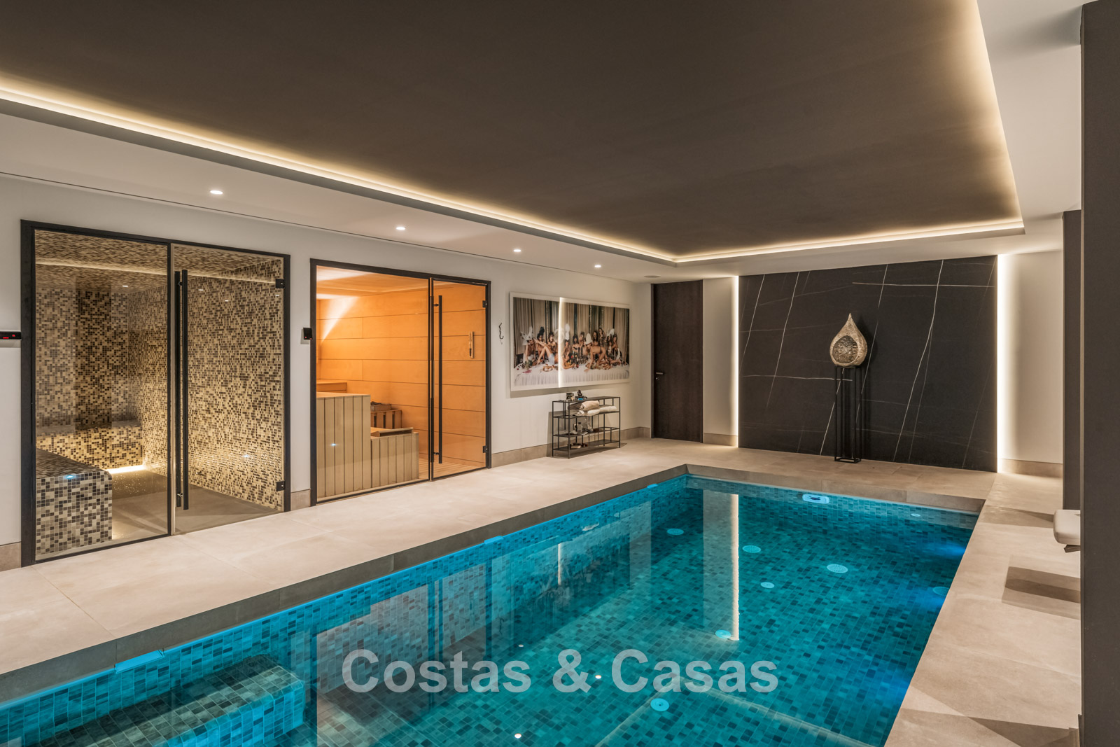 Piscine intérieure chauffée, sauna, salle de sport.
