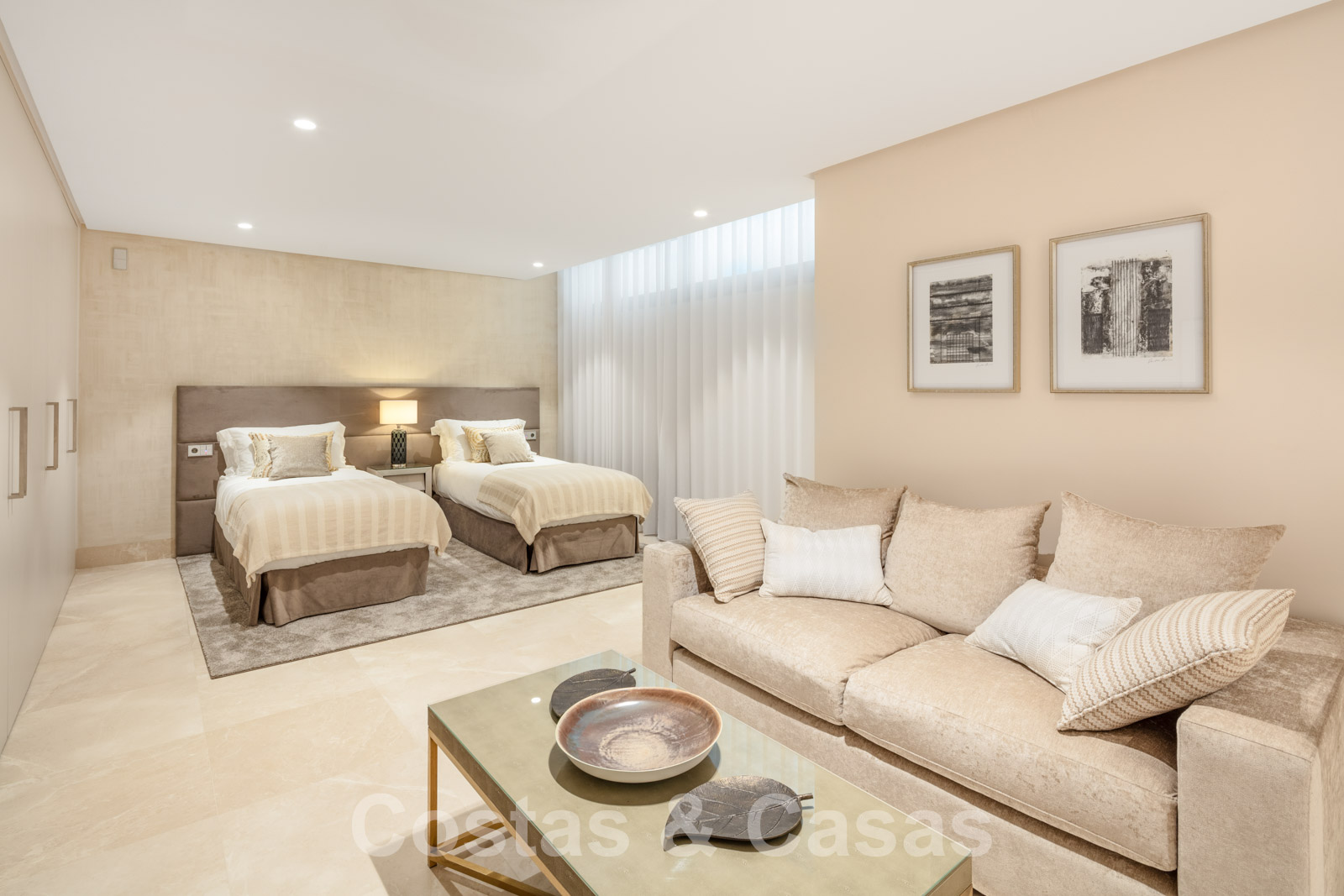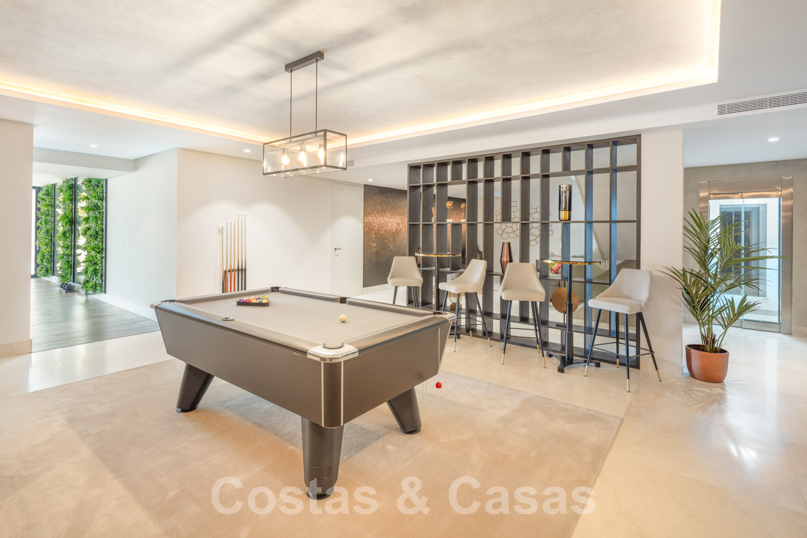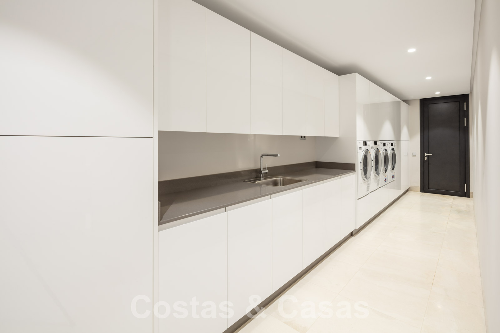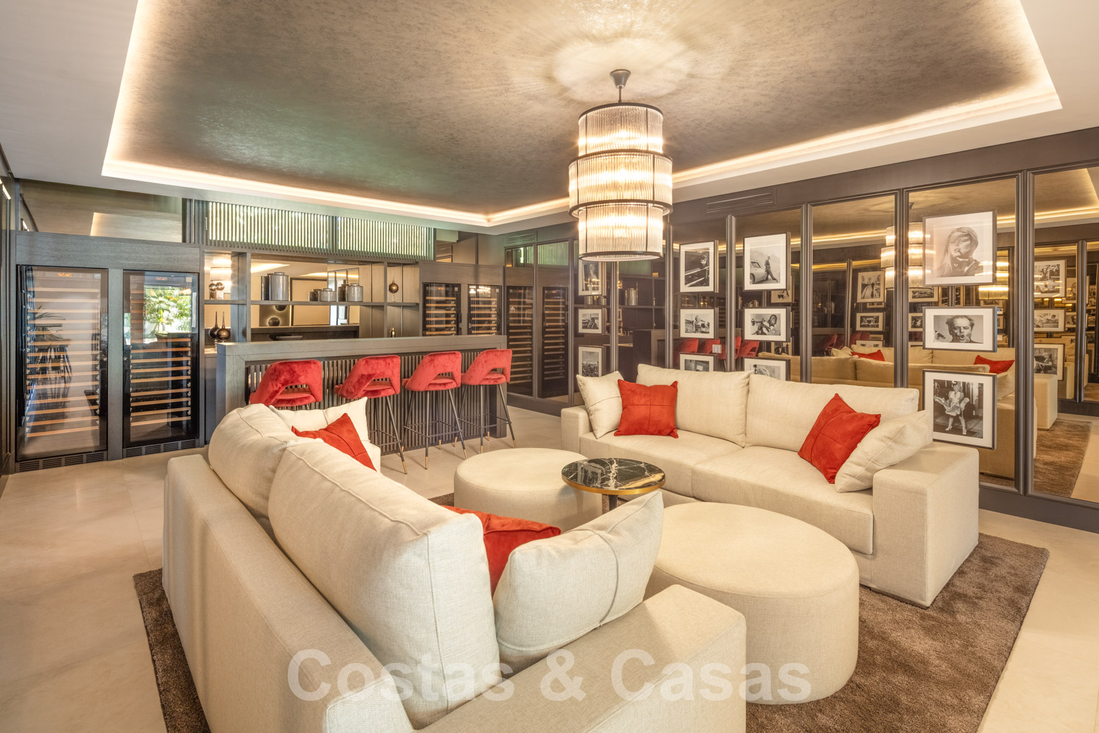 Conçu dans un style moderne et contemporain. Utilisation de matériaux de construction de haute qualité avec une finition raffinée. Intérieur confortable et charmant. Entrée à double hauteur. Toilette des invités. Espace de vie ouvert avec un double salon avec une cheminée. Salle à manger ouverte. Cuisine ouverte et équipée avec îlot de cuisson et îlot petit-déjeuner intégré. Fenêtres coulissantes hautes. Intérieur lumineux. Transition sans faille entre l'intérieur et l'extérieur. 7 chambres, 8 salles de bain en-suite. Chambre principale spacieuse, avec salle de bains, dressing et terrasse privée. Spa avec sauna et salle de sport. Salle de jeux avec billard et bar. Home cinéma. Grande buanderie. Débarras. Garage intérieur pour 10 voitures.