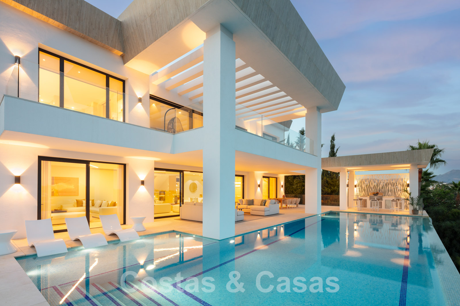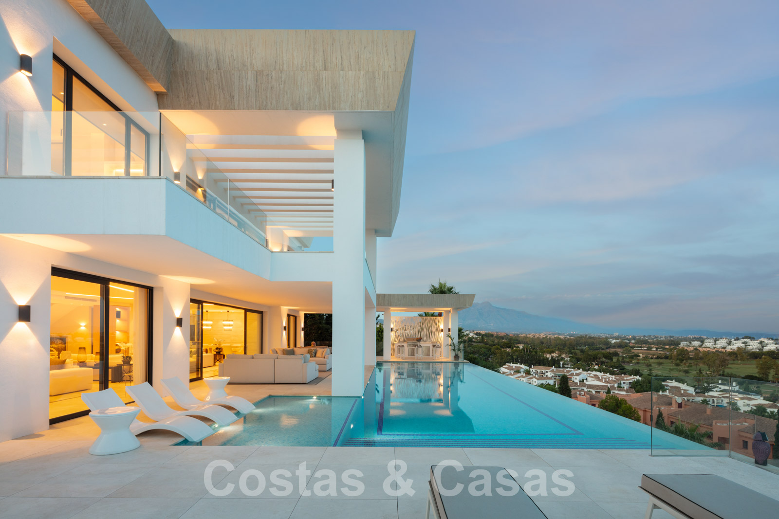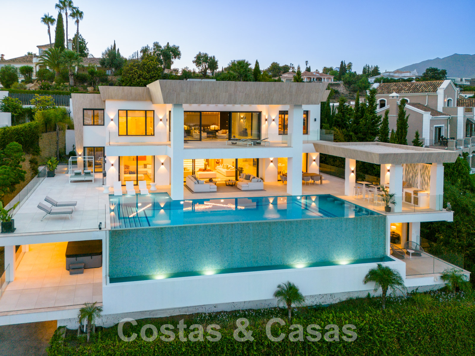Villa moderne de luxe à vendre avec vue panoramique sur les montagnes, les terrains de golf et la mer à Marbella - Benahavis