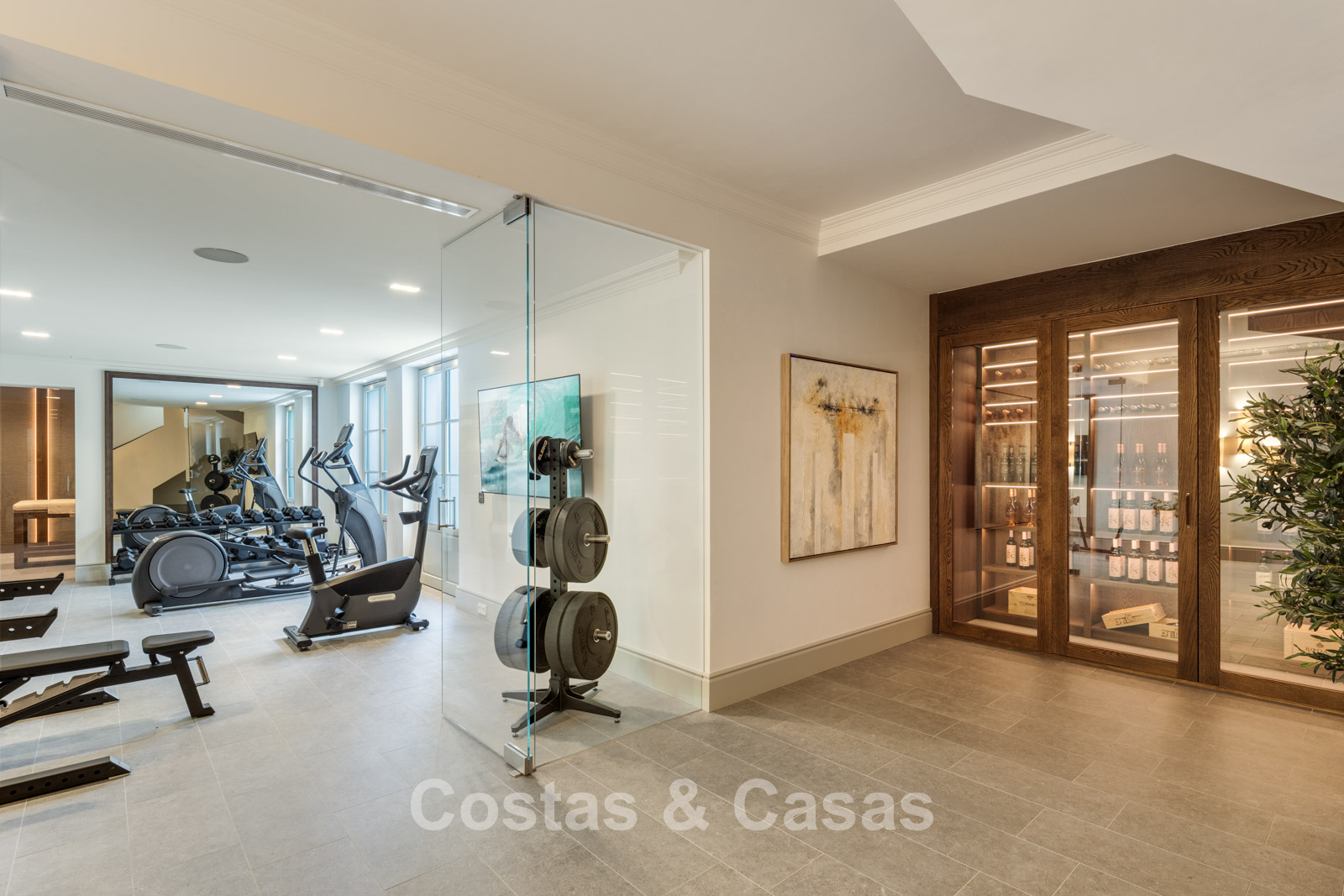 Villa individuelle alliant avec raffinement l’architecture andalouse moderne et traditionnelle. Conçue avec un savoir-faire artisanal exceptionnel. En entrant, vous découvrirez un hall d’entrée entièrement équipé, avec un vestiaire sur mesure. L'intérieur élégant et tendance dégage un design chic et luxueux, avec des matériaux raffinés et des touches élégantes. Un spacieux salon avec de très hauts plafonds et d'élégantes fenêtres crée un espace aéré et lumineux. Une belle cuisine équipée d'électroménagers Miele haut de gamme et un coin repas chaleureux. À côté se trouve une salle à manger formelle. Cinq chambres, six salles de bains et deux toilettes séparées pour invités. Une salle de cinéma design de style loft. A l’étage inférieur, deux chambres avec salle de bains privative, un salon TV confortable et une kitchenette, idéale pour un hébergement indépendant. Dans l'autre aile, une salle de fitness entièrement équipée avec une salle de massage attenante. Une buanderie entièrement équipée avec lave-linge et sèche-linge Miele. Parquet imitation bois avec un élégant motif à chevrons. Débarras. (Multiple) Buanderie. Garage intégré pour deux voitures. Grand parking privé sur la propriété.