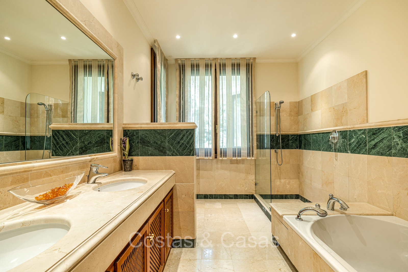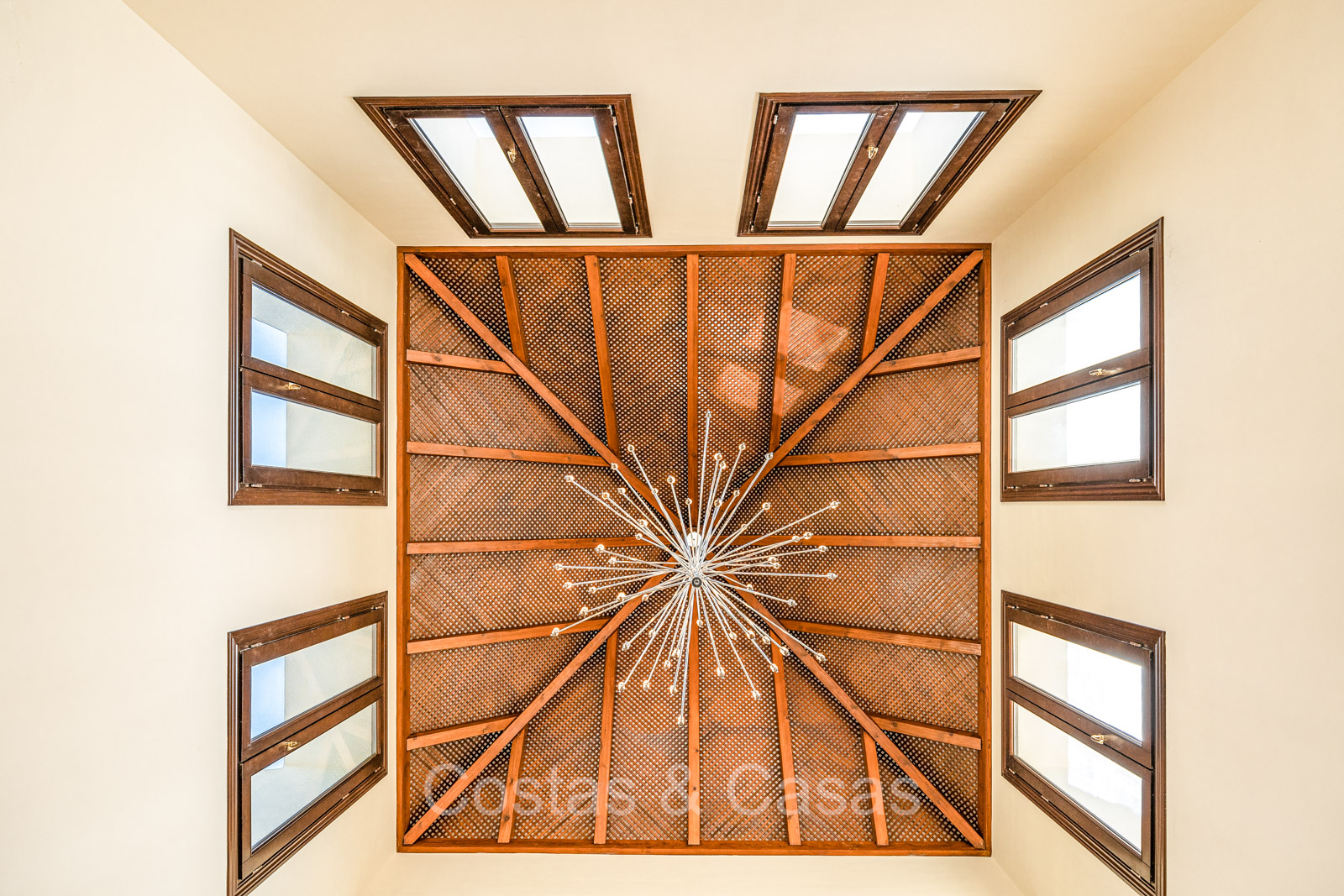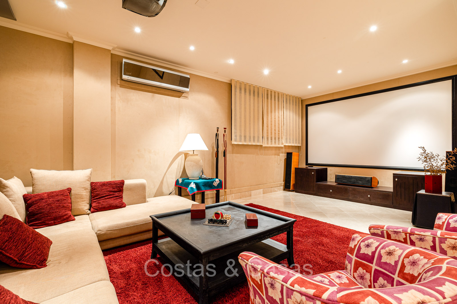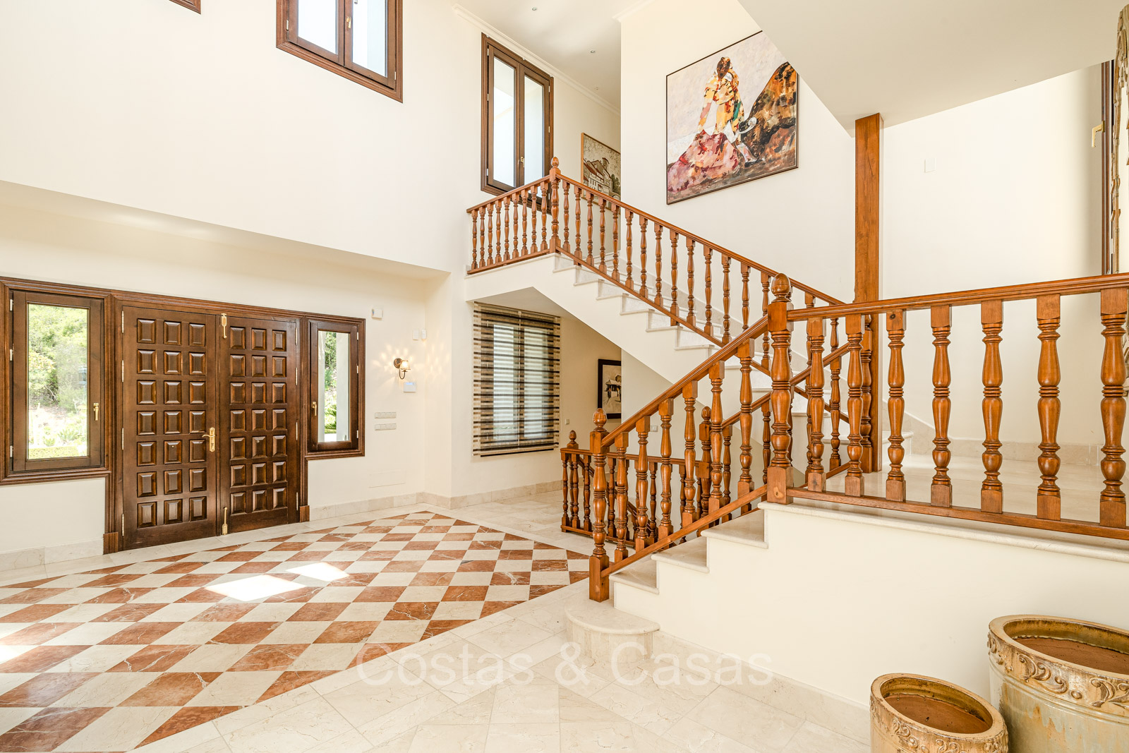 Une villa de luxe construite dans un style architectural espagnol classique et intemporel, qui respire le charme et l'élégance. Utiliser des matériaux de qualité. Une allée descendante vous amène à l'entrée de la villa. L'impressionnant hall d'entrée, avec son plafond à double hauteur et sa grande luminosité, est encore mis en valeur par une élégante cage d'escalier qui mène à l'étage supérieur et au sous-sol. L'intérieur lumineux se caractérise par de hauts plafonds voûtésavec poutres apparentes qui créent une sensation d'espace et de grandeur. Grand espace de vie ouvert. Cuisine séparée, entièrement équipée avec des appareils électroménagers haut de gamme et un îlot de cuisson où vous pourrez prendre le petit-déjeuner. À côté de la cuisine se trouve une extension vitrée, destinée à servir de coin repas, qui laisse entrer beaucoup de lumière grâce aux grandes fenêtres. 7 chambres, 7 salles de bains. Sols en marbre de qualité. A l’étage inférieur se trouve une salle de divertissement équipée d'un espace de jeux et d'un home cinéma. Salle de remise en forme et bain turc. Garage intérieur pour 5 voitures.