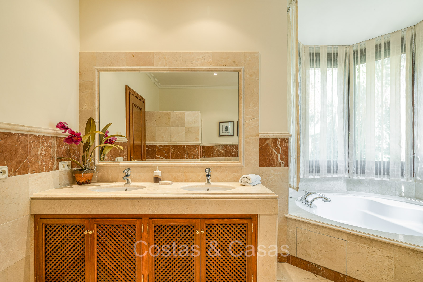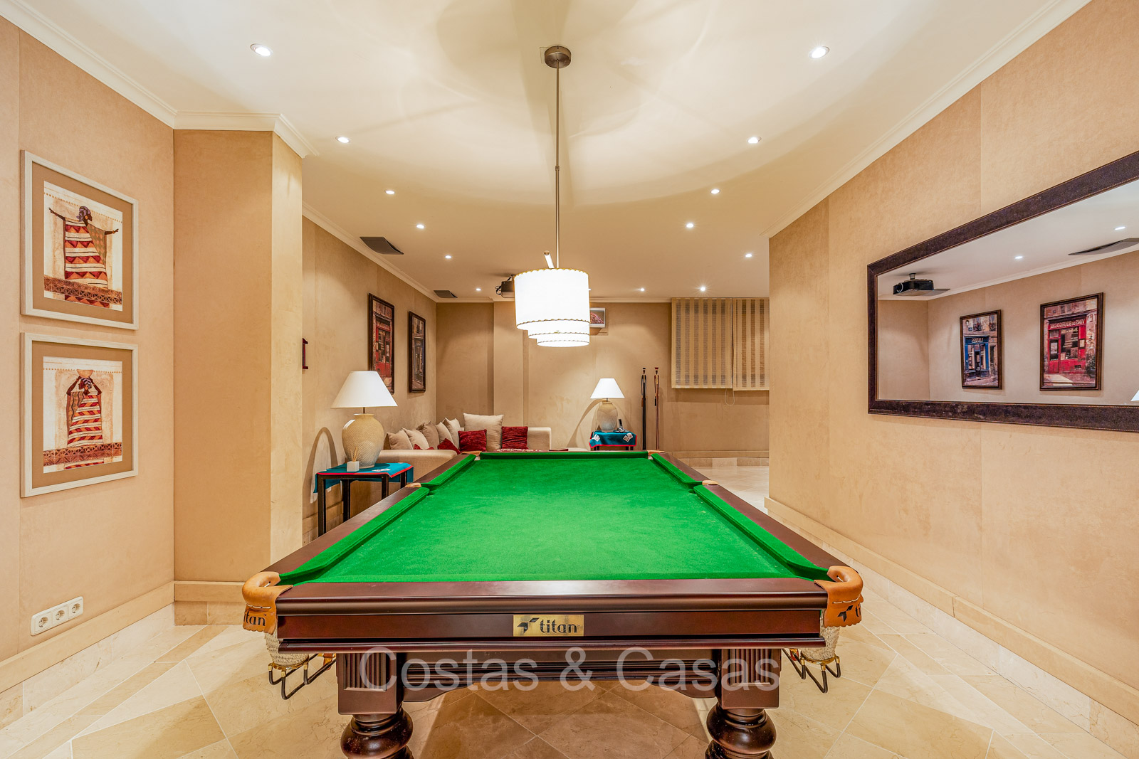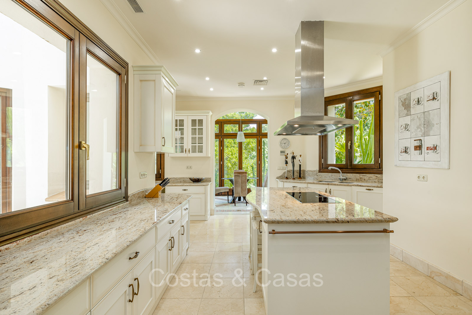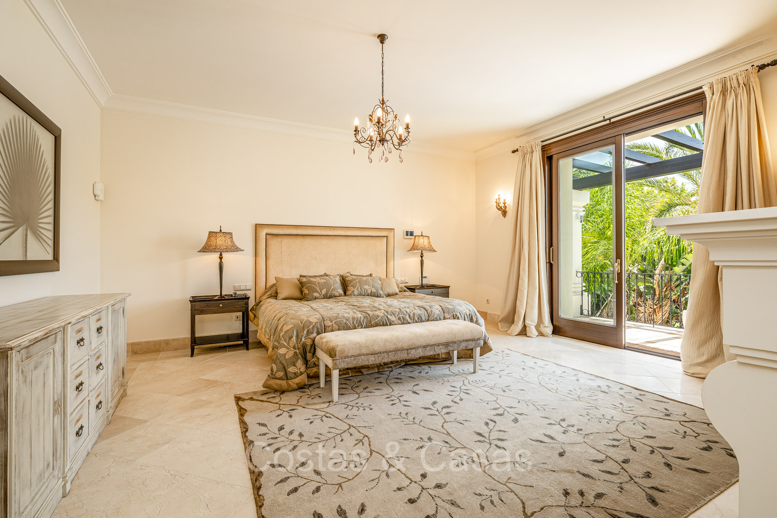 Une villa de luxe construite dans un style architectural espagnol classique et intemporel, qui respire le charme et l'élégance. Utiliser des matériaux de qualité. Une allée descendante vous amène à l'entrée de la villa. L'impressionnant hall d'entrée, avec son plafond à double hauteur et sa grande luminosité, est encore mis en valeur par une élégante cage d'escalier qui mène à l'étage supérieur et au sous-sol. L'intérieur lumineux se caractérise par de hauts plafonds voûtésavec poutres apparentes qui créent une sensation d'espace et de grandeur. Grand espace de vie ouvert. Cuisine séparée, entièrement équipée avec des appareils électroménagers haut de gamme et un îlot de cuisson où vous pourrez prendre le petit-déjeuner. À côté de la cuisine se trouve une extension vitrée, destinée à servir de coin repas, qui laisse entrer beaucoup de lumière grâce aux grandes fenêtres. 7 chambres, 7 salles de bains. Sols en marbre de qualité. A l’étage inférieur se trouve une salle de divertissement équipée d'un espace de jeux et d'un home cinéma. Salle de remise en forme et bain turc. Garage intérieur pour 5 voitures.