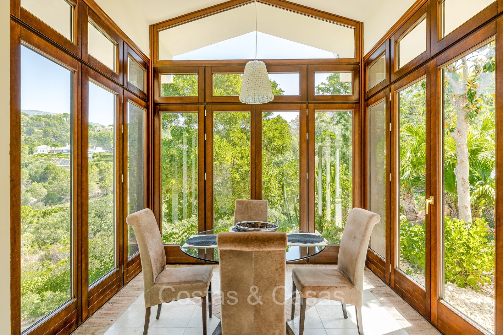 Terrain spacieux et isolé en position surélevée. Le jardin est entouré d'une végétation abondante, avec des arbustes denses et de grands arbres formant un mur naturel et offrant une sensation d'intimité totale. Grande piscine intégrée entourée de pelouse. Des espaces extérieurs vastes et accueillants pour profiter du climat méditerranéen. Orientée sud-ouest. Belles vues sur les environs pittoresques et le paysage montagneux.