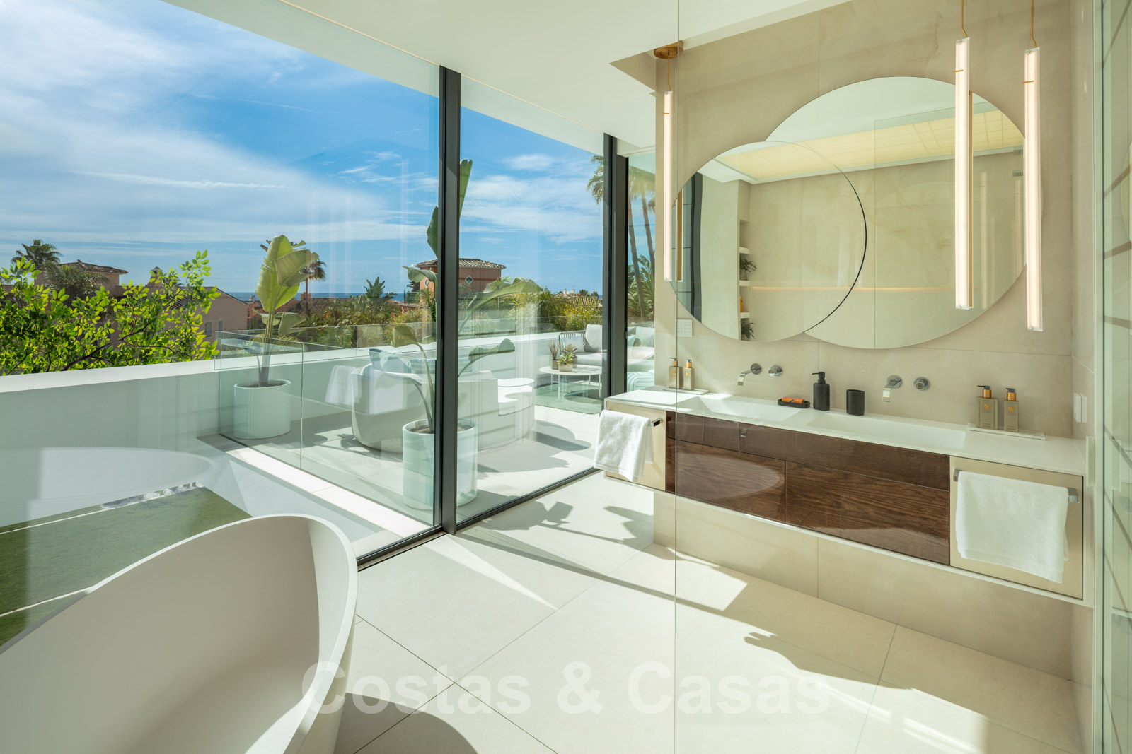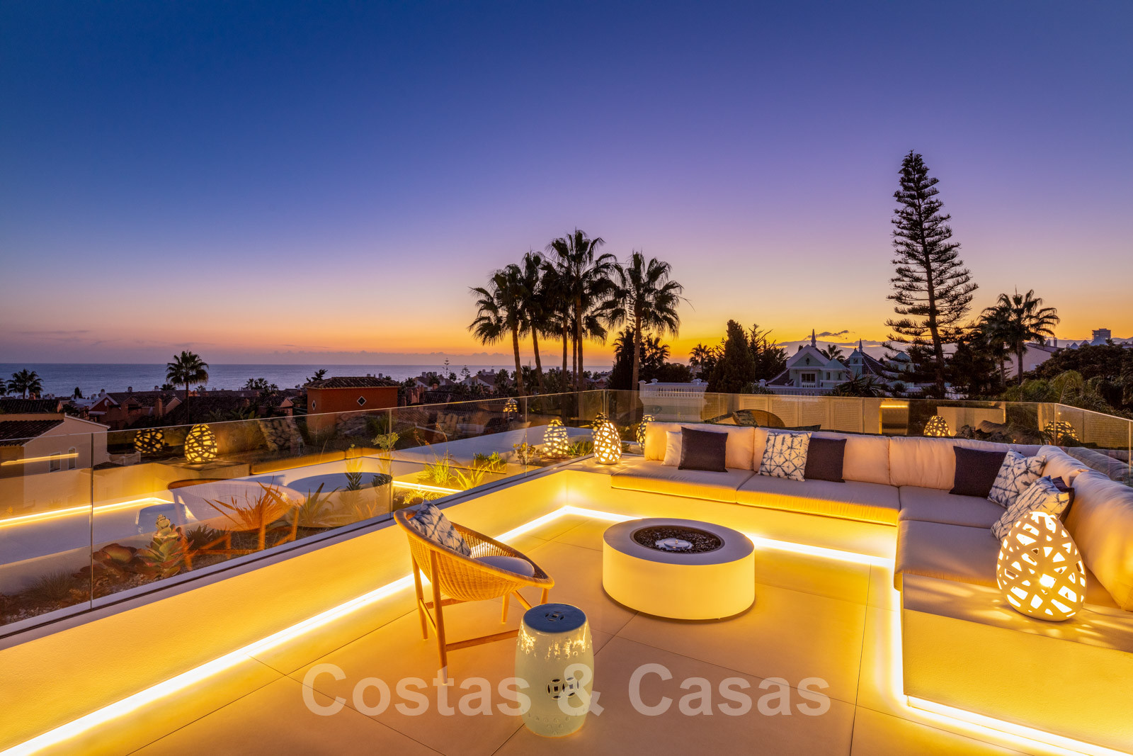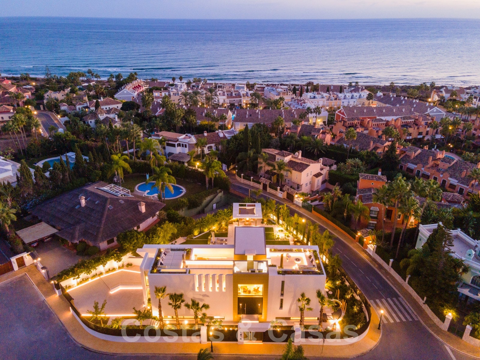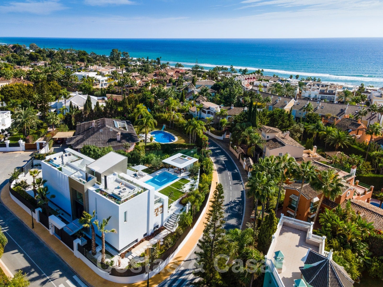 Prête à emménager, nouvelle villa de conception moderne à vendre dans une urbanisation en bord de mer très recherchée, juste à l'est du centre de Marbella