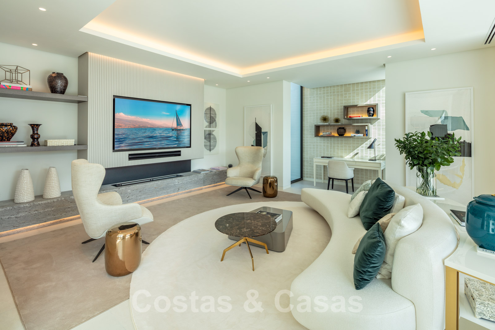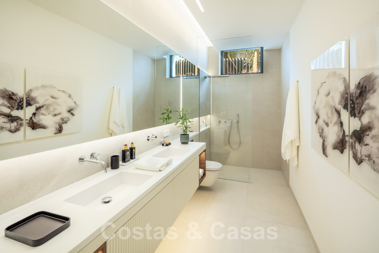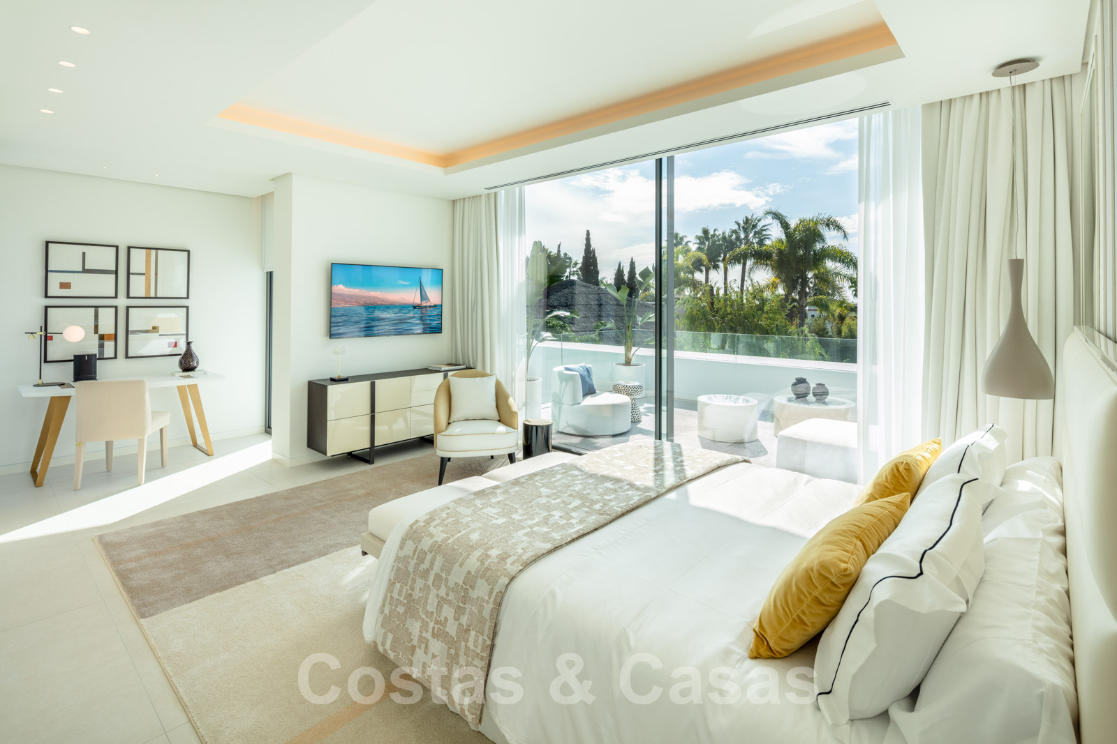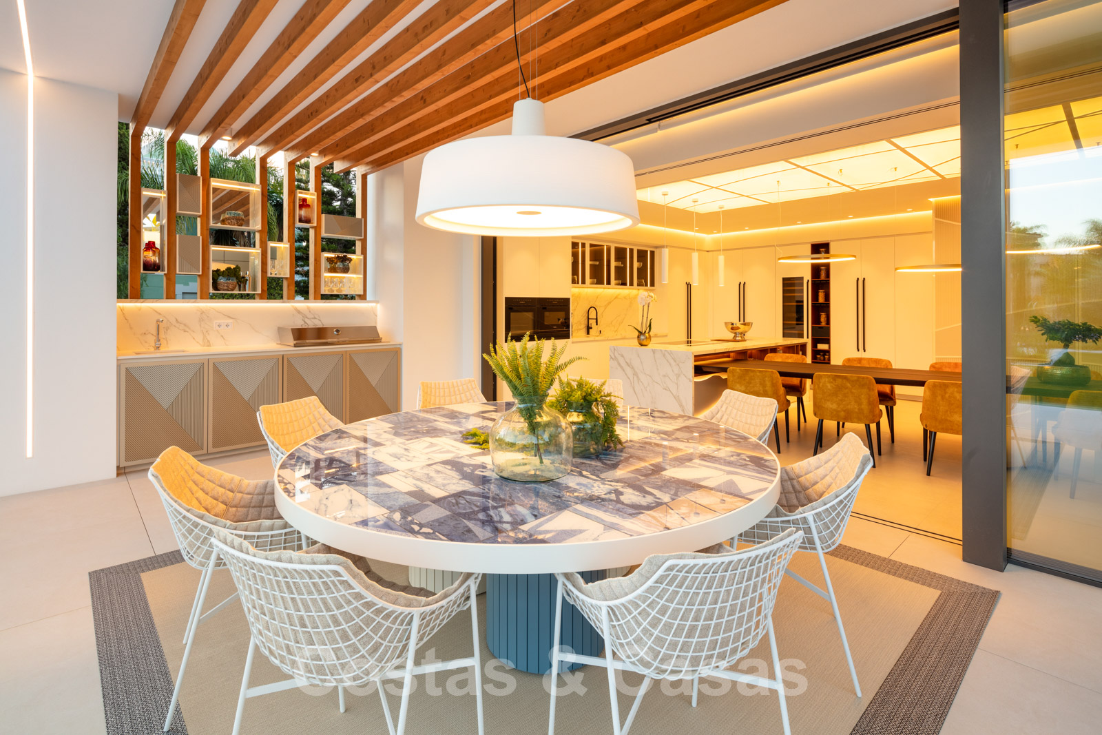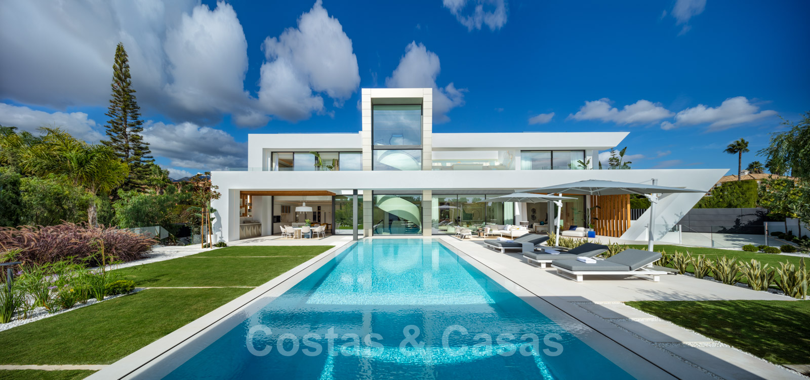 Prête à emménager, nouvelle villa de conception moderne à vendre dans une urbanisation en bord de mer très recherchée, juste à l'est du centre de Marbella