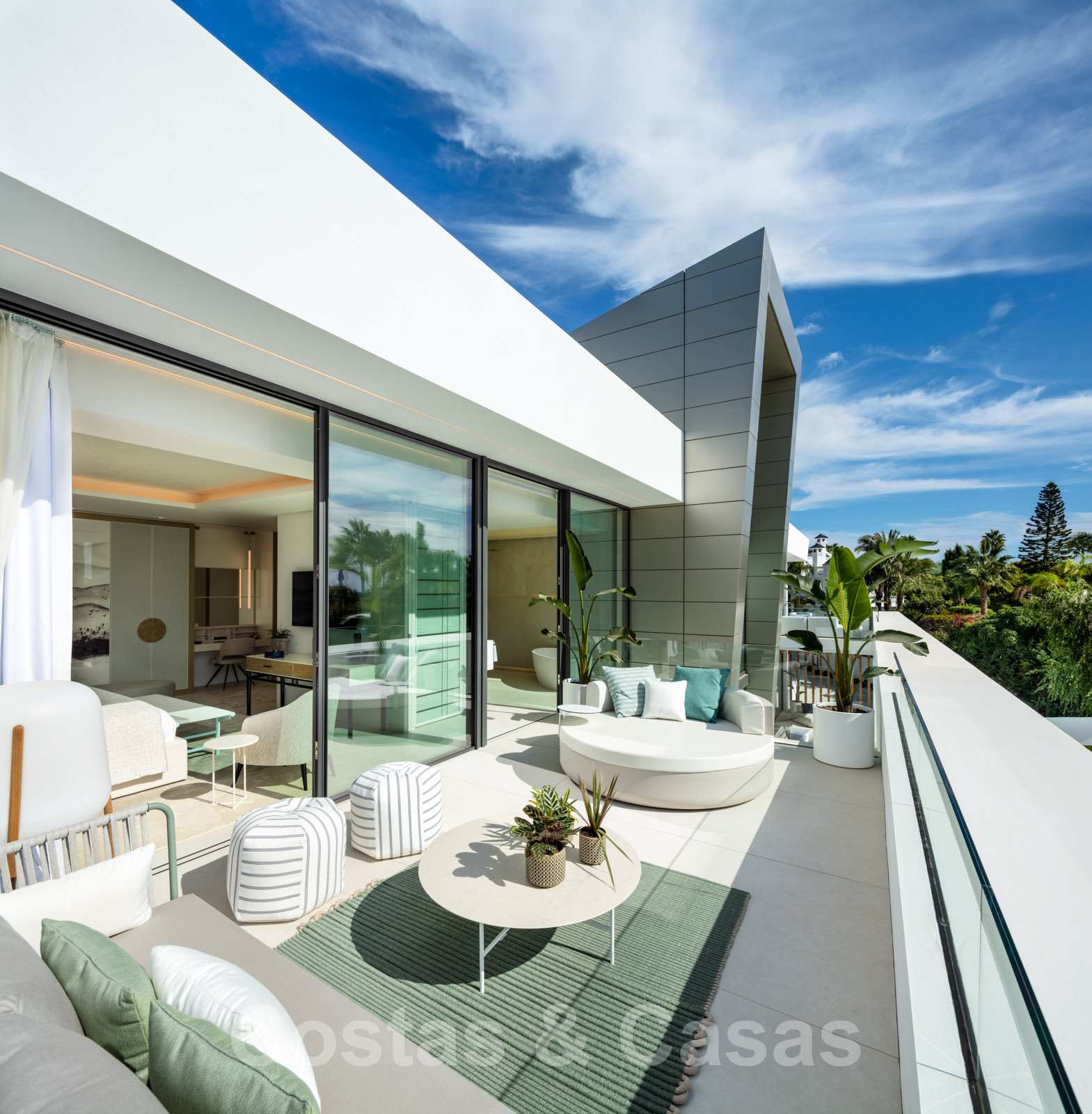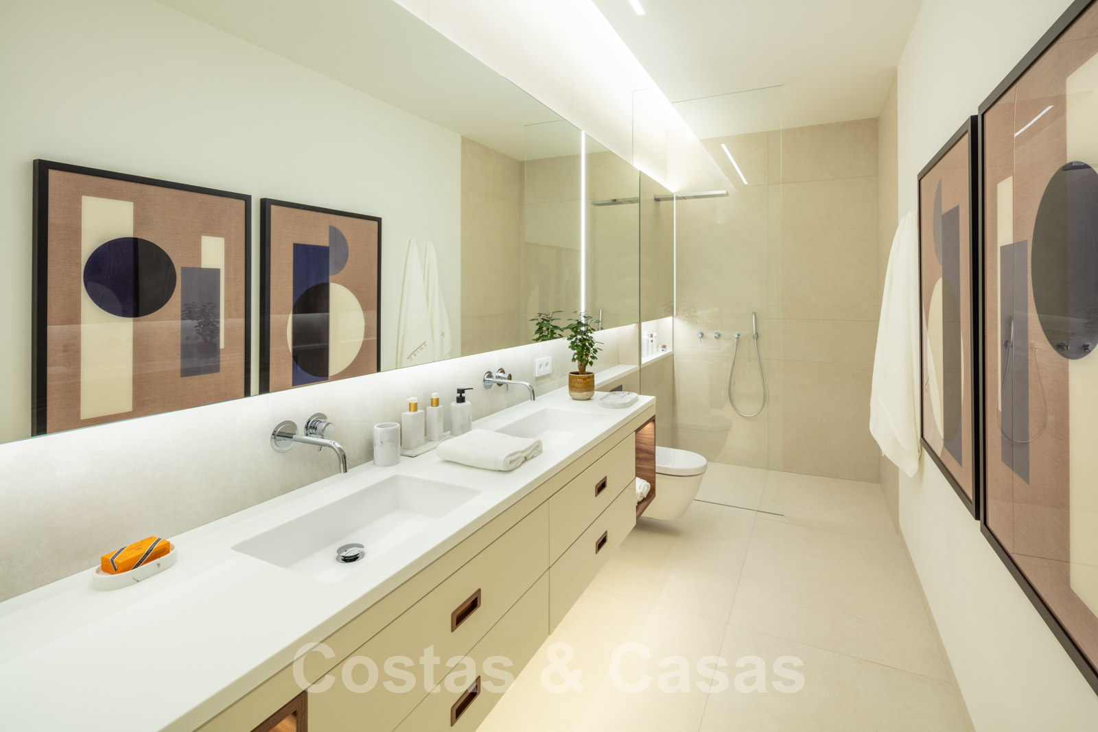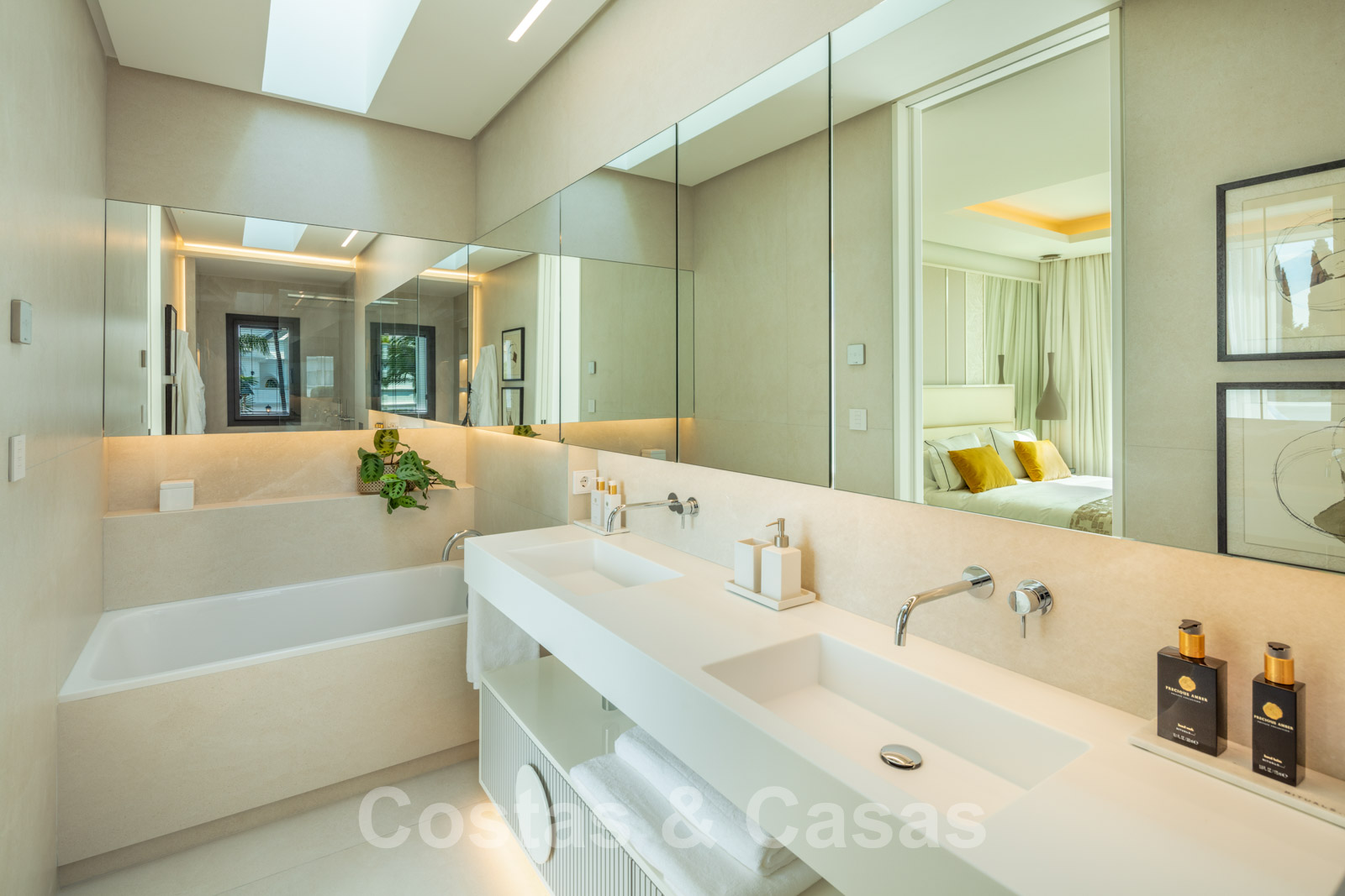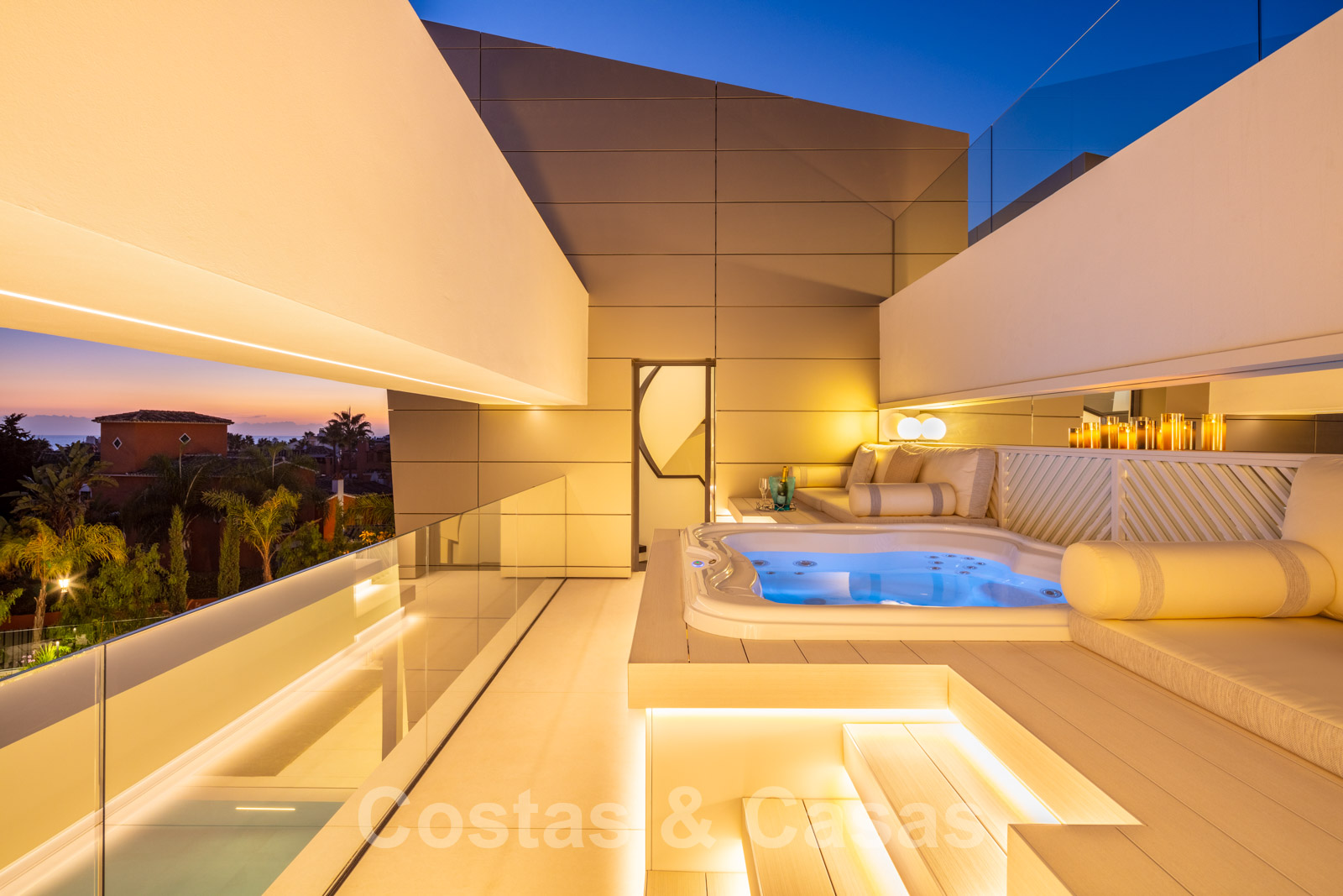 Prête à emménager, nouvelle villa de conception moderne à vendre dans une urbanisation en bord de mer très recherchée, juste à l'est du centre de Marbella