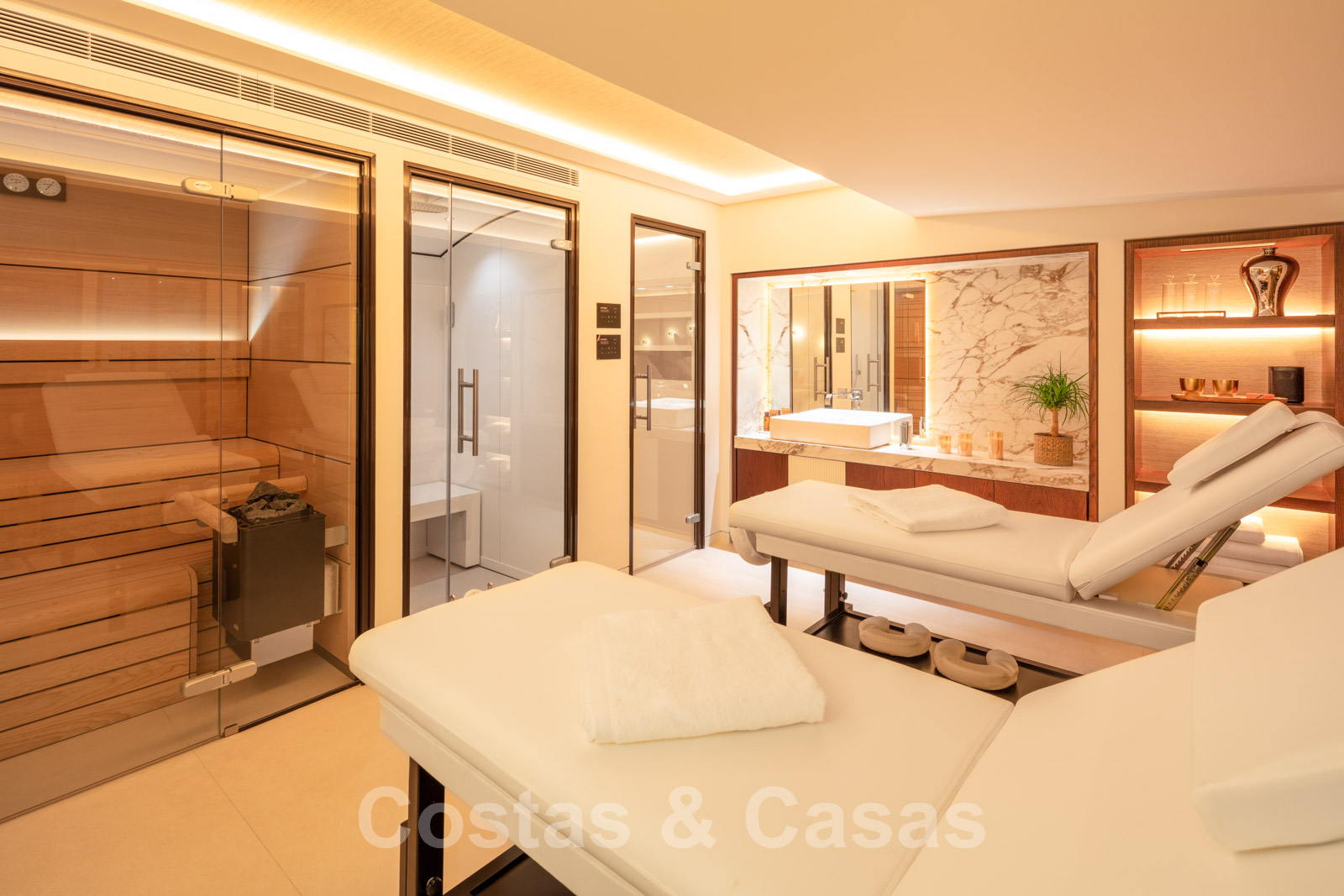 SPA ultramoderne avec 2 tables de massage, sauna, hammam et douche.