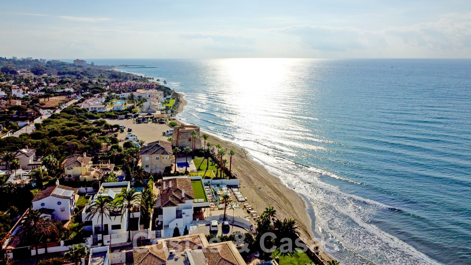 Stratégiquement située dans un quartier résidentiel calme et bien entretenu avec des villas, en deuxième ligne de plage. Toutes les commodités, y compris les supermarchés, les restaurants, les terrains de golf, les écoles, les installations sportives et les clubs sont à quelques minutes en voiture. Le port de Cabopino se trouve à 5 minutes en voiture et le centre de Marbella à 15 minutes.