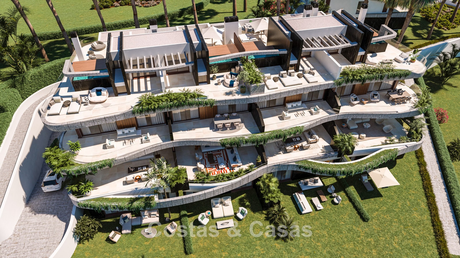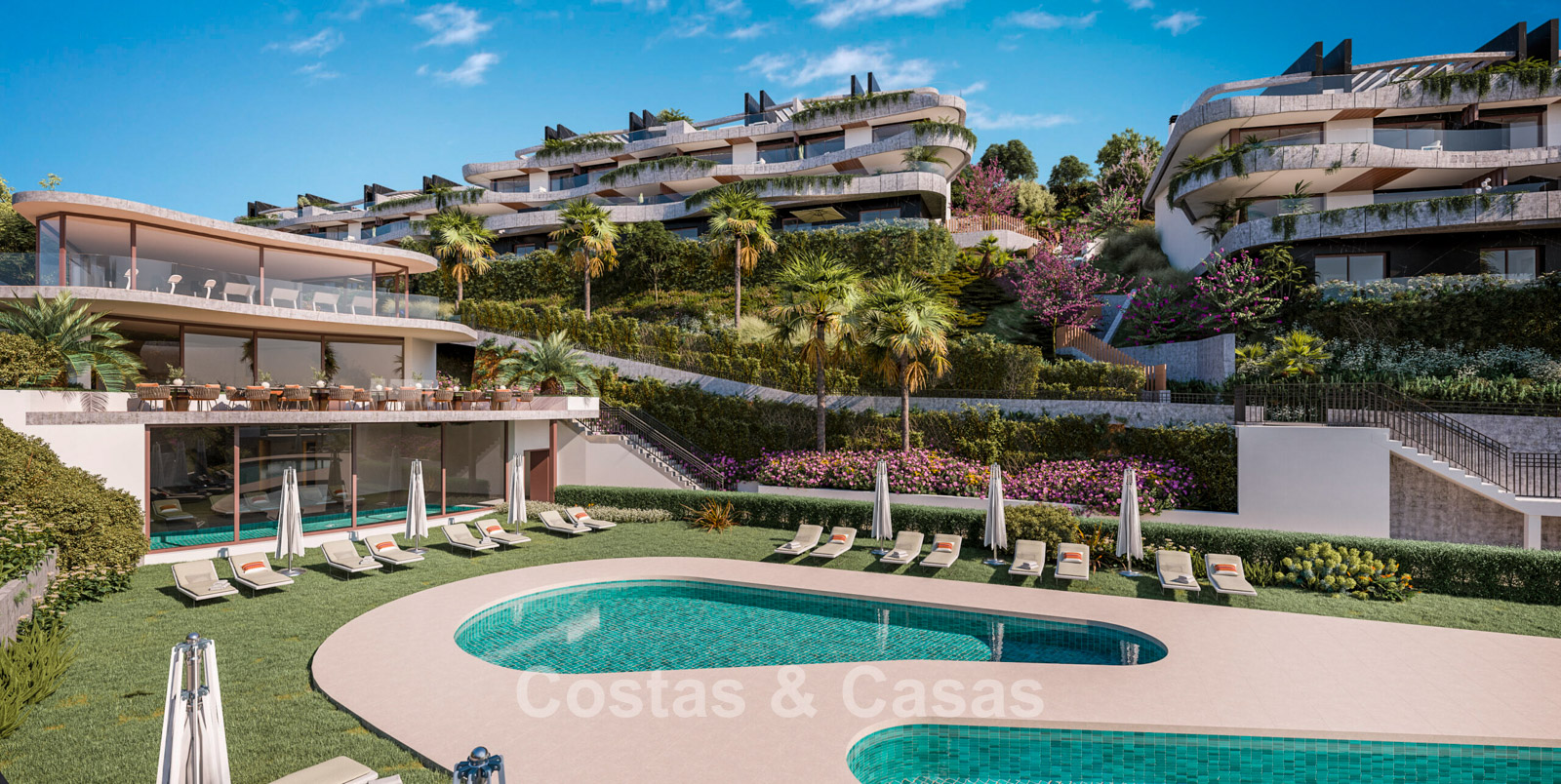Le complexe comprendra des espaces verts, des sentiers pédestres, des espaces communs de détente et de bien-être, quatre piscines communes, une salle de fitness et un espace de coworking.
