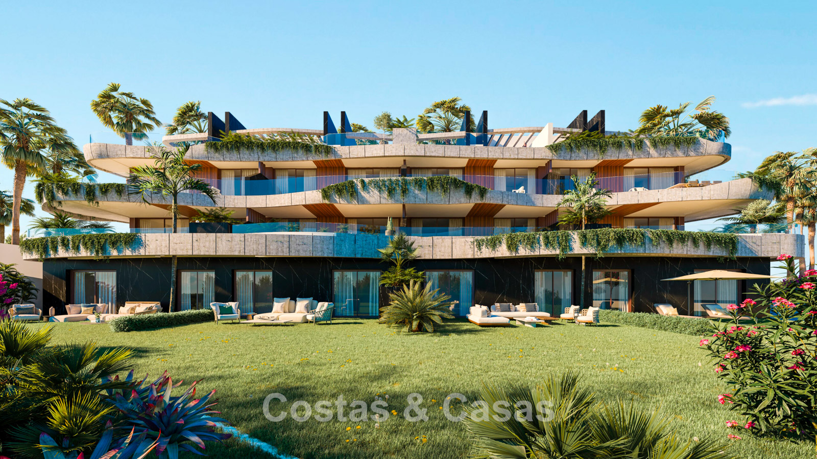 Appartements neufs à l'architecture minimaliste, sur plan. Matériaux et finitions haut de gamme. Appartements et penthouses de 2 ou 3 chambres. Certains appartements de 3 chambres offrent la possibilité d'ajouter une quatrième chambre. De hautes baies vitrées coulissantes inondent les appartements de lumière naturelle et donnent sur de spacieuses terrasses. Vue panoramique sur la mer Méditerranée. Les penthouses bénéficient de vastes solariums avec piscine à débordement. Les appartements du rez-de-chaussée disposent d'un jardin privé et d'une salle de jeux au sous-sol. Espace de vie ouvert. Cuisine/salle à manger ouverte, entièrement équipée avec des appareils haut de gamme et un bar. Salle à manger intégrée. Buanderie. Débarras.