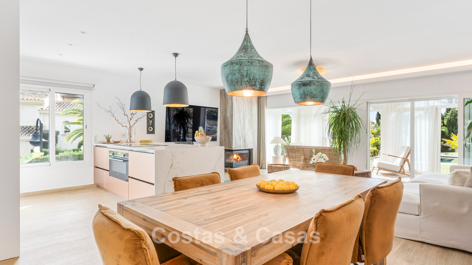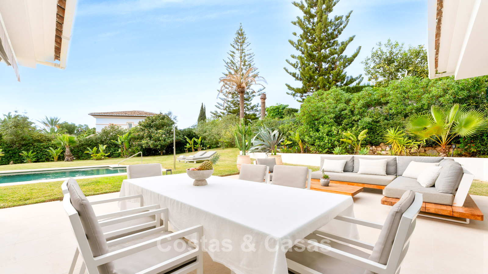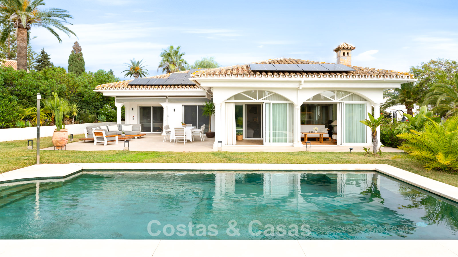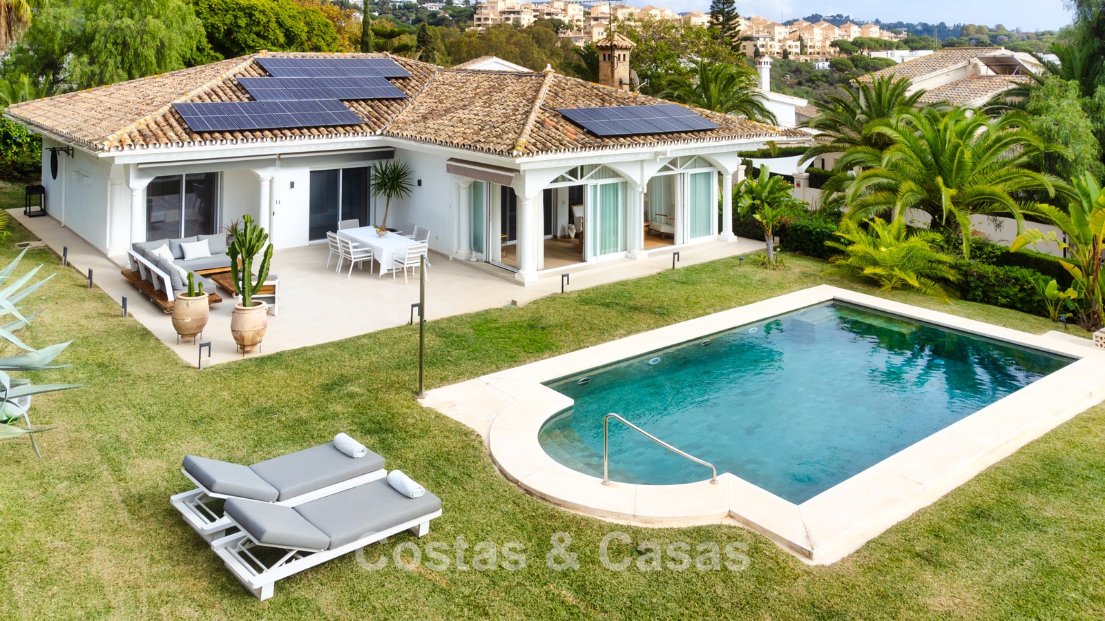 Autres fonctionnalités : Climatisation. Cheminée. Volets roulants. Panneaux solaires. Auvents sur la terrasse. Douche extérieure. Système d'alarme.
