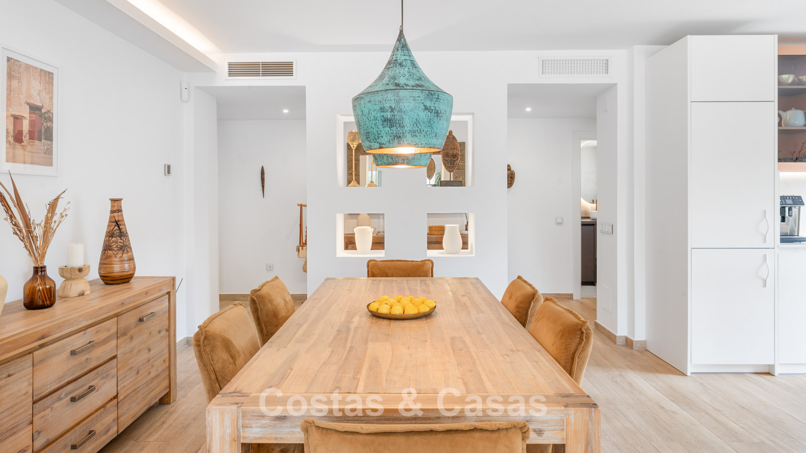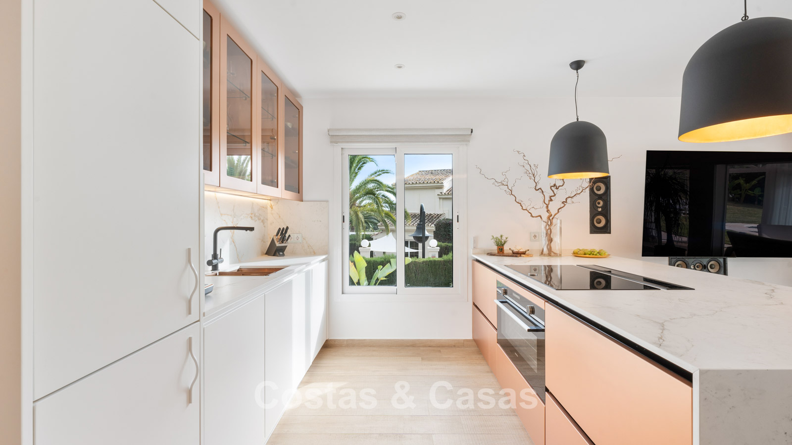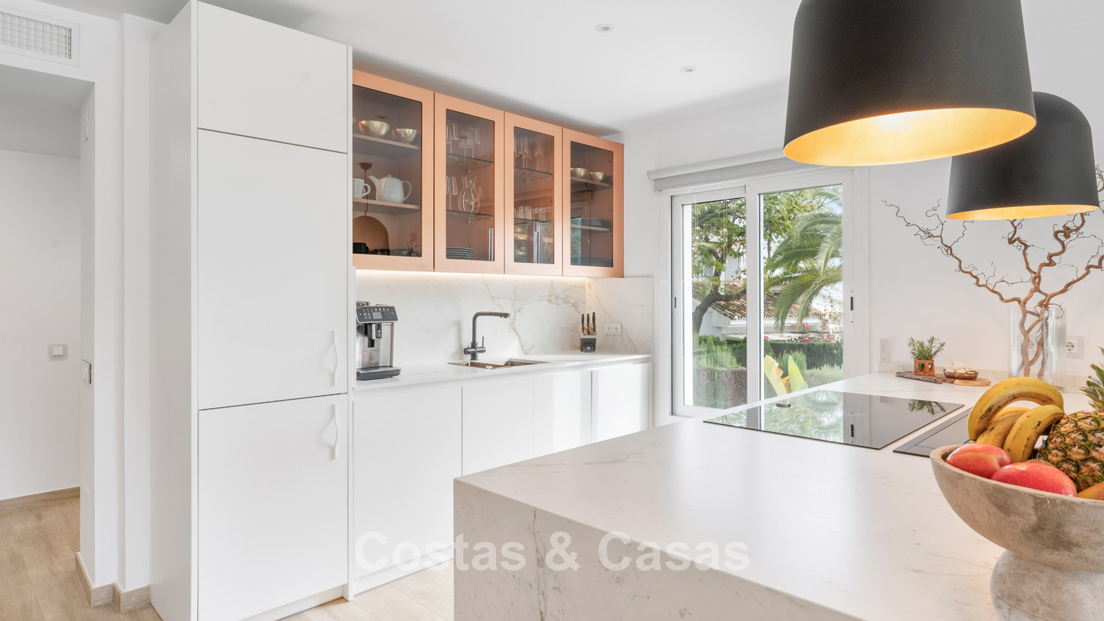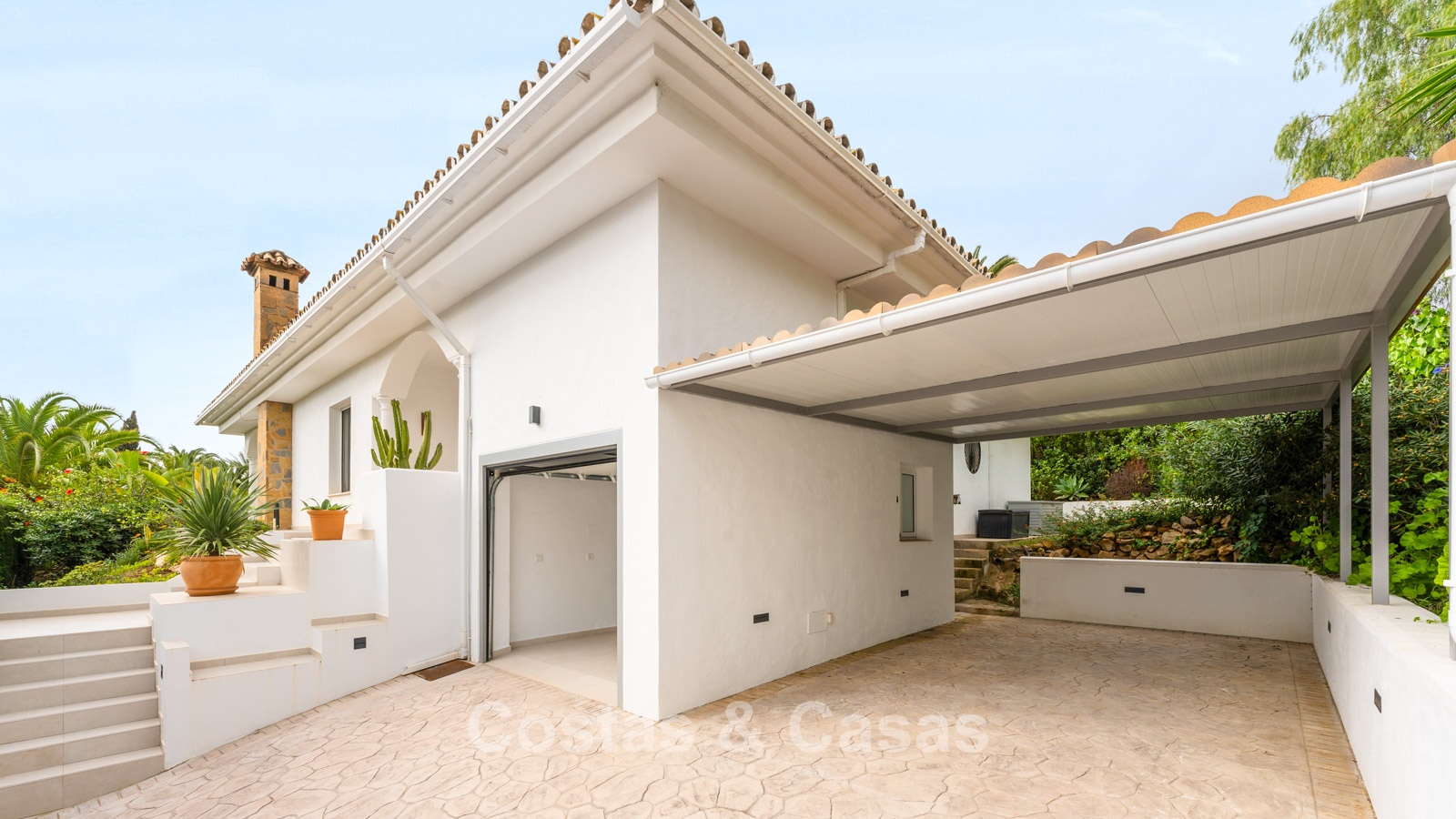 Villa individuelle à l'architecture méditerranéenne. Intérieur lumineux grâce à de hautes fenêtres coulissantes qui relient les espaces intérieurs et extérieurs. Soigneusement rénovée en 2022. Un intérieur minimaliste est accentué par des touches de couleurs subtiles et chaudes. Espace de vie ouvert. Cuisine pratique et entièrement équipée avec des appareils électroménagers haut de gamme et un bar pour le petit-déjeuner. Coin repas intégré. 3 chambres, 2 salles de bains et une toilette séparée. Sols Porcelanosa de haute qualité. Garage intérieur pour 1 voiture. Abri pour 1 voiture.
