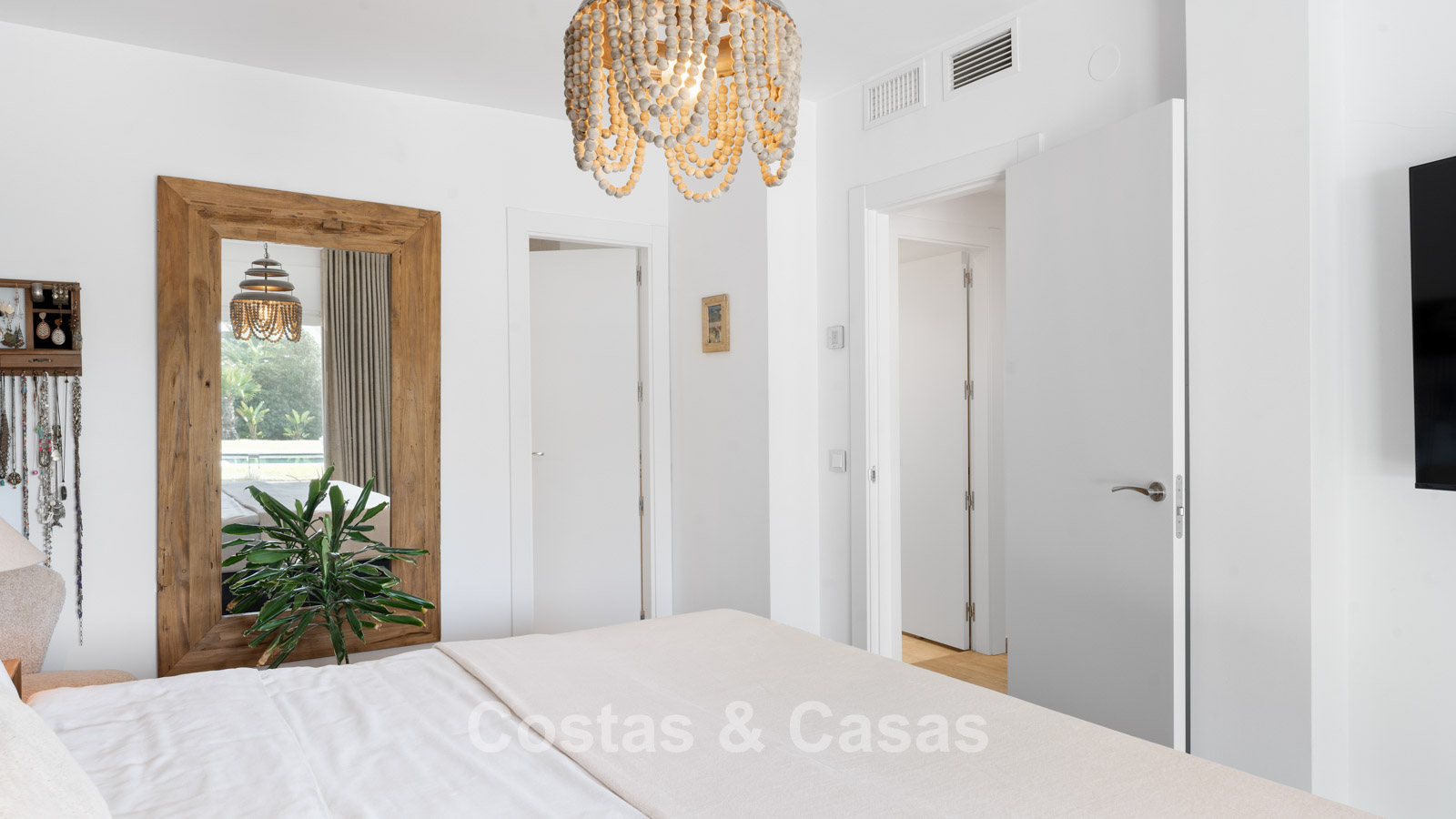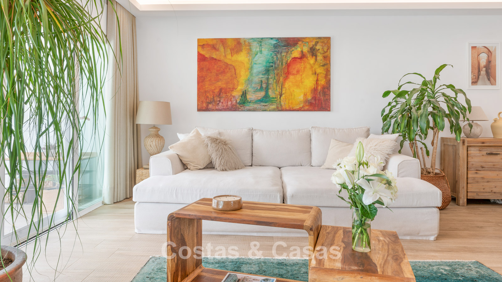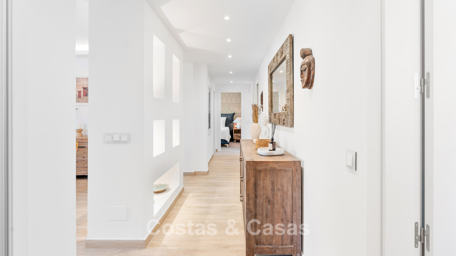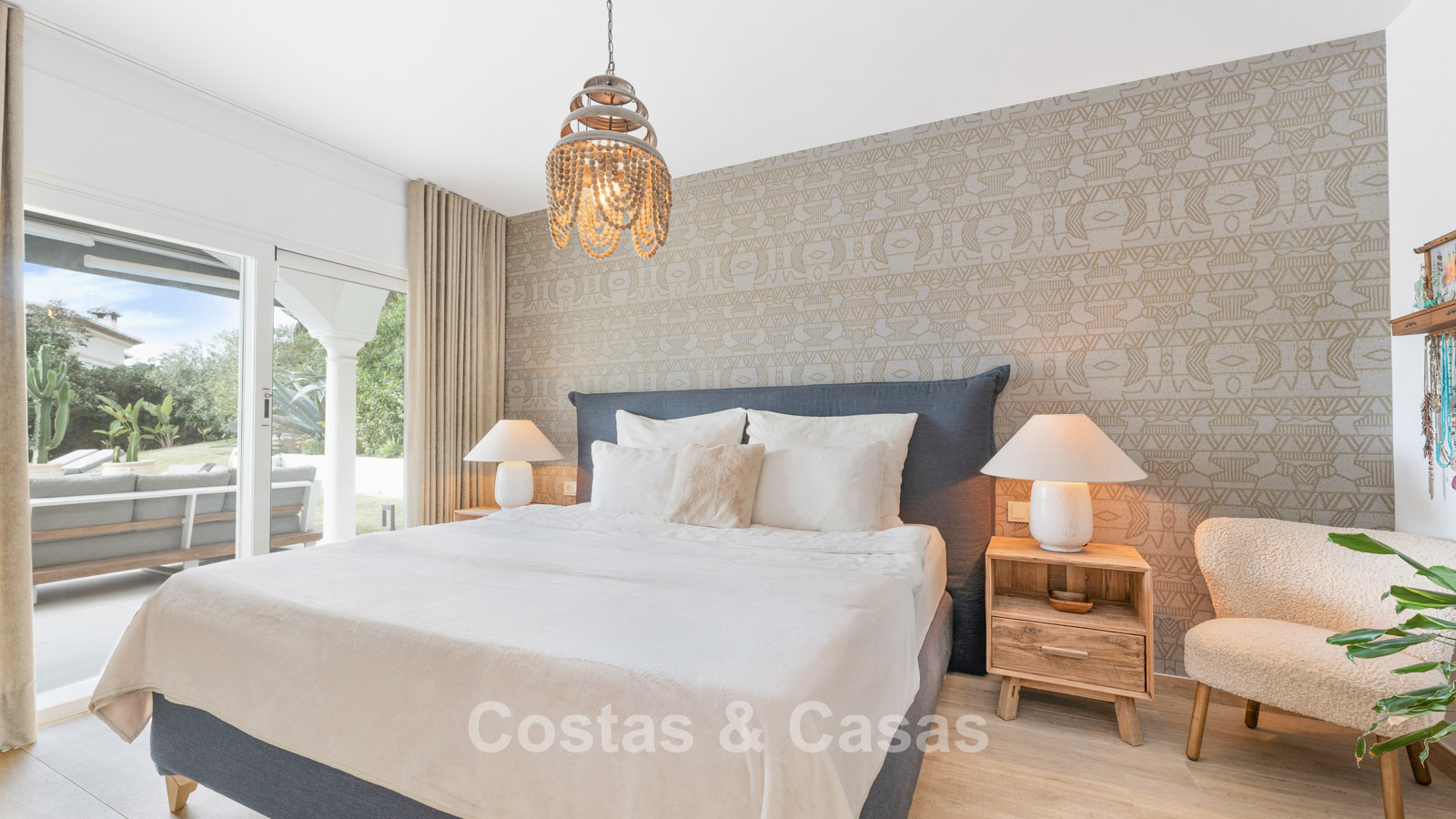 Villa individuelle à l'architecture méditerranéenne. Intérieur lumineux grâce à de hautes fenêtres coulissantes qui relient les espaces intérieurs et extérieurs. Soigneusement rénovée en 2022. Un intérieur minimaliste est accentué par des touches de couleurs subtiles et chaudes. Espace de vie ouvert. Cuisine pratique et entièrement équipée avec des appareils électroménagers haut de gamme et un bar pour le petit-déjeuner. Coin repas intégré. 3 chambres, 2 salles de bains et une toilette séparée. Sols Porcelanosa de haute qualité. Garage intérieur pour 1 voiture. Abri pour 1 voiture.