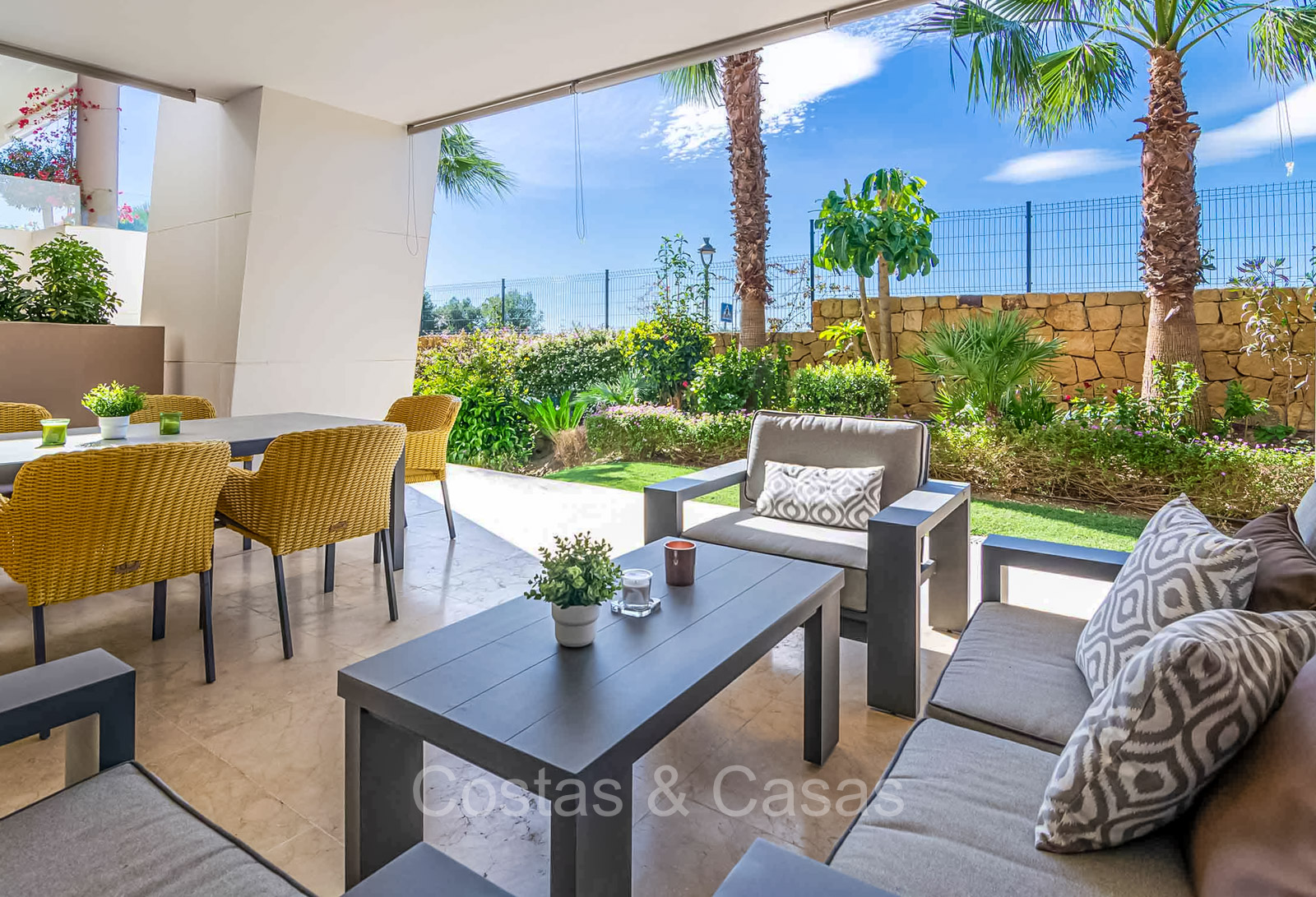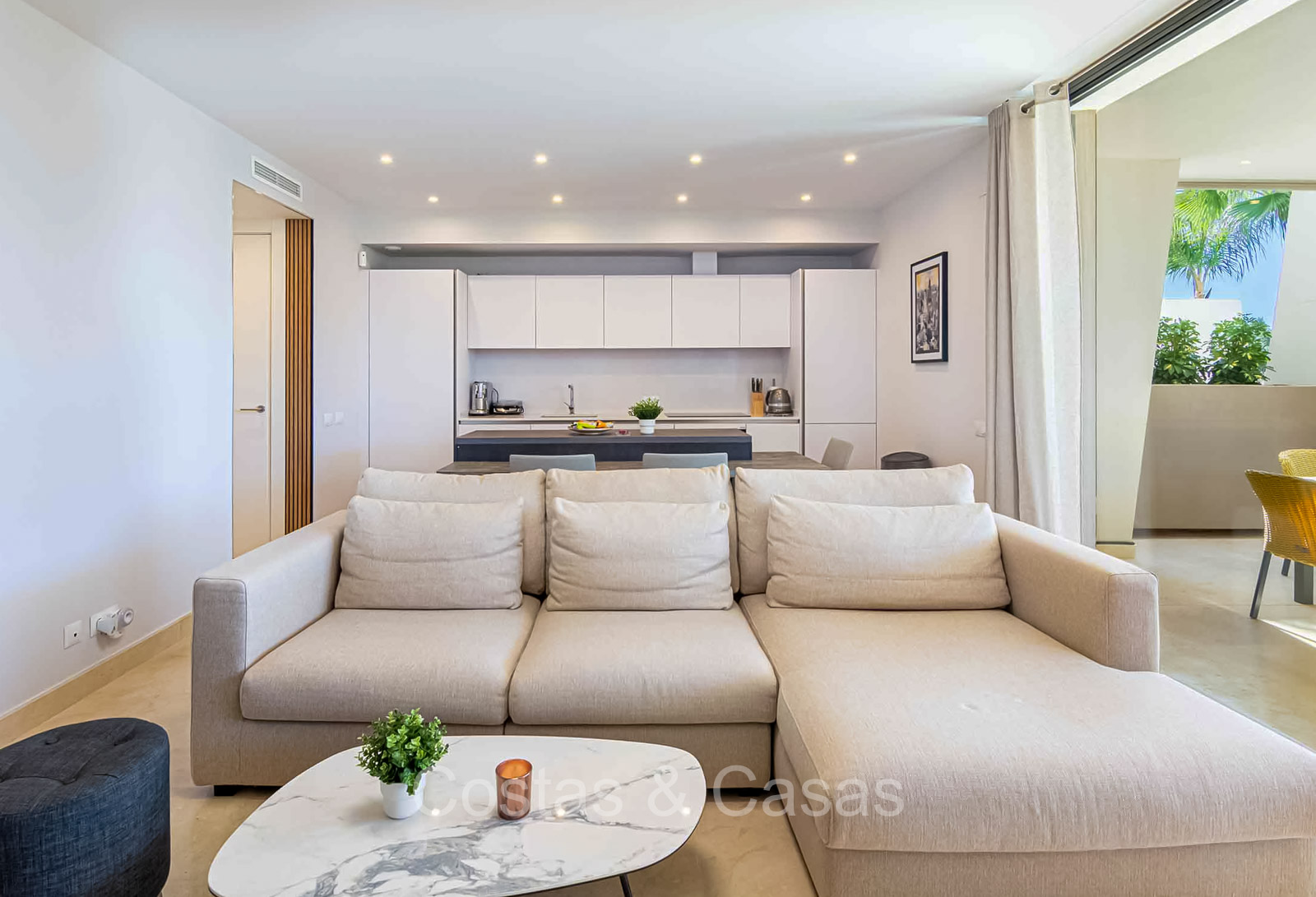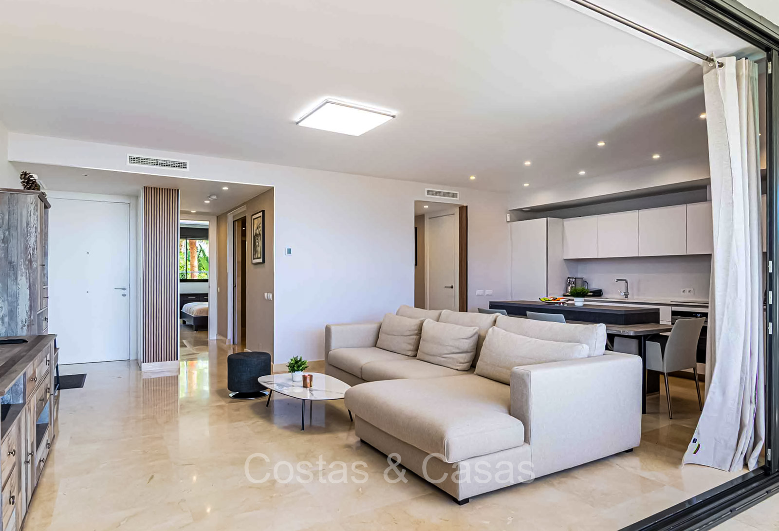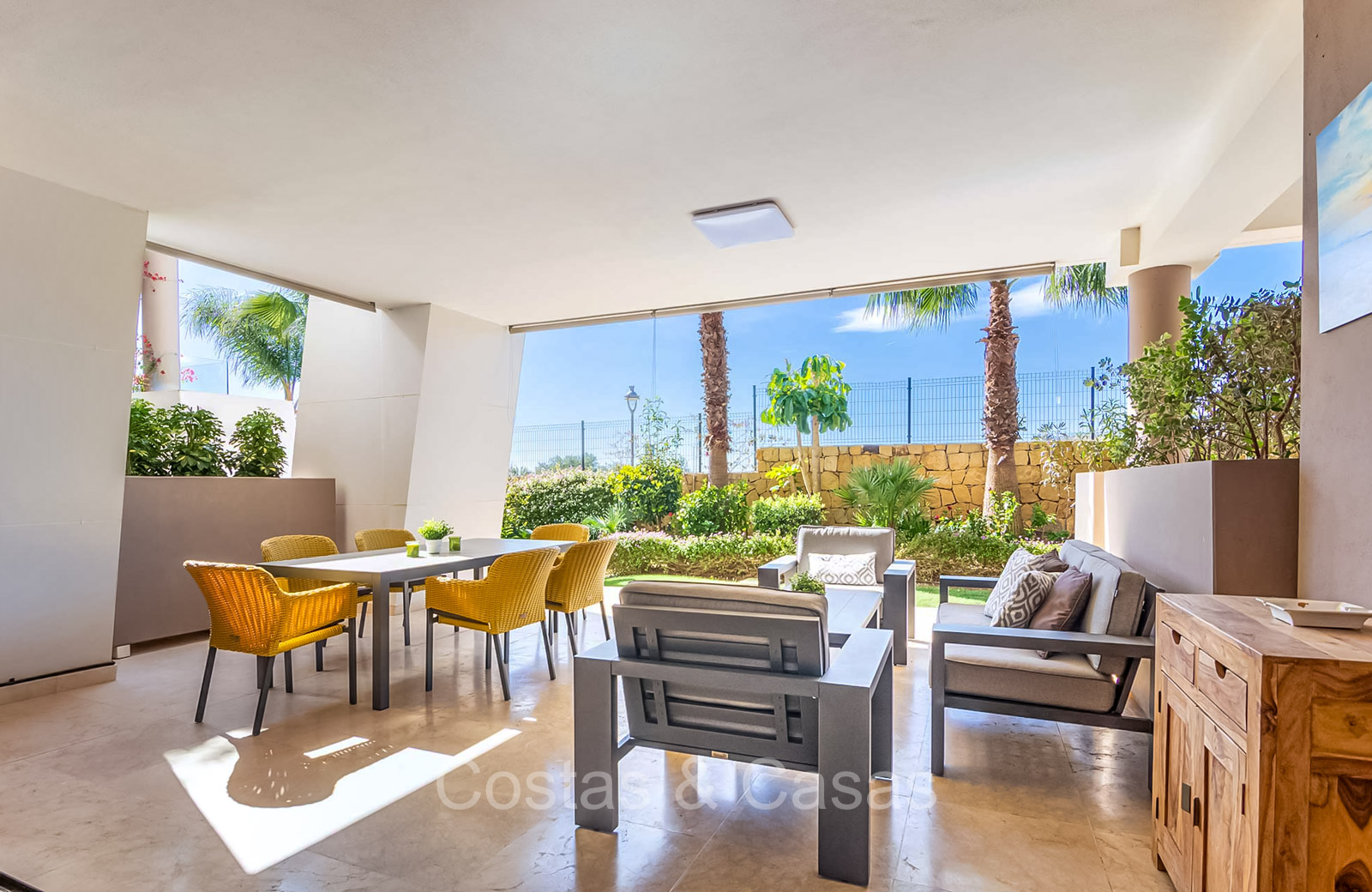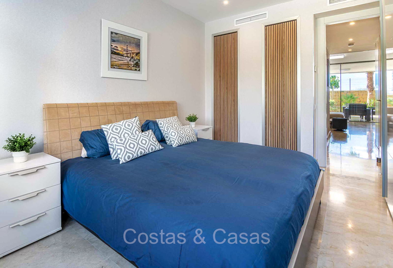 Autres caractéristiques : Système Daikin ou équivalent pour le refroidissement et le chauffage. Chauffage électrique au sol dans les salles de bains. Armoires intégrées. Sols en marbre 60x60 avec finition polie haute brillance. Double vitrage. Pré-installation du système domotique. Système d'interphone vidéo Bticino. Auvents sur la terrasse. Panneaux solaires. Système d'alarme. Meublé.