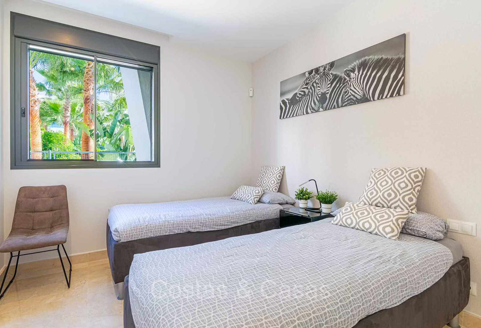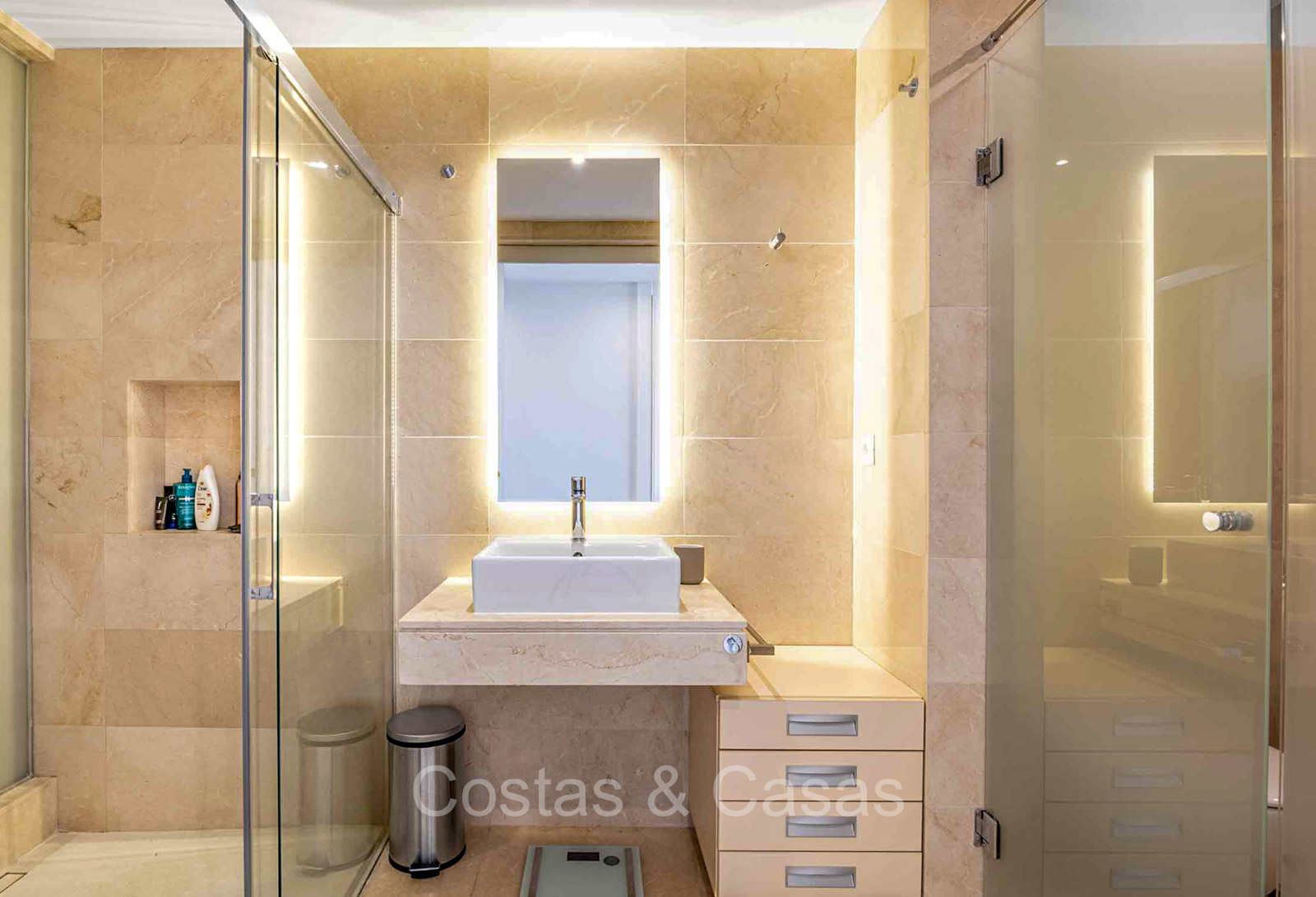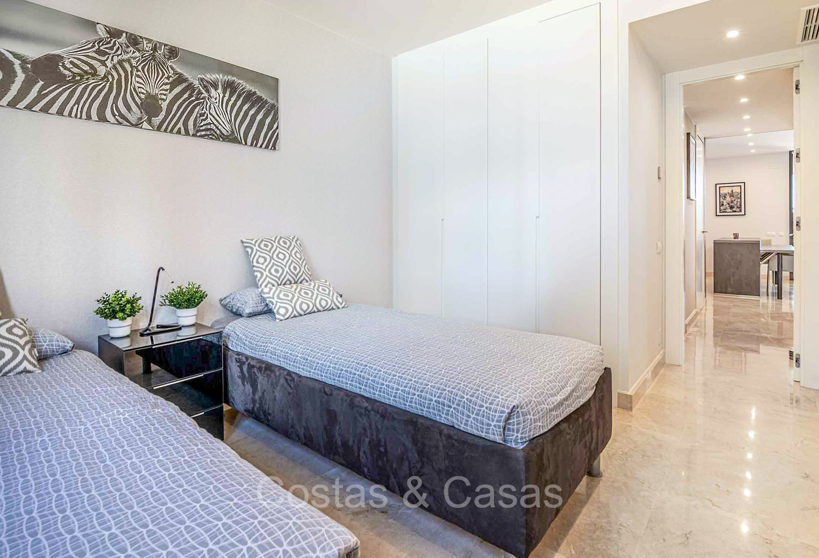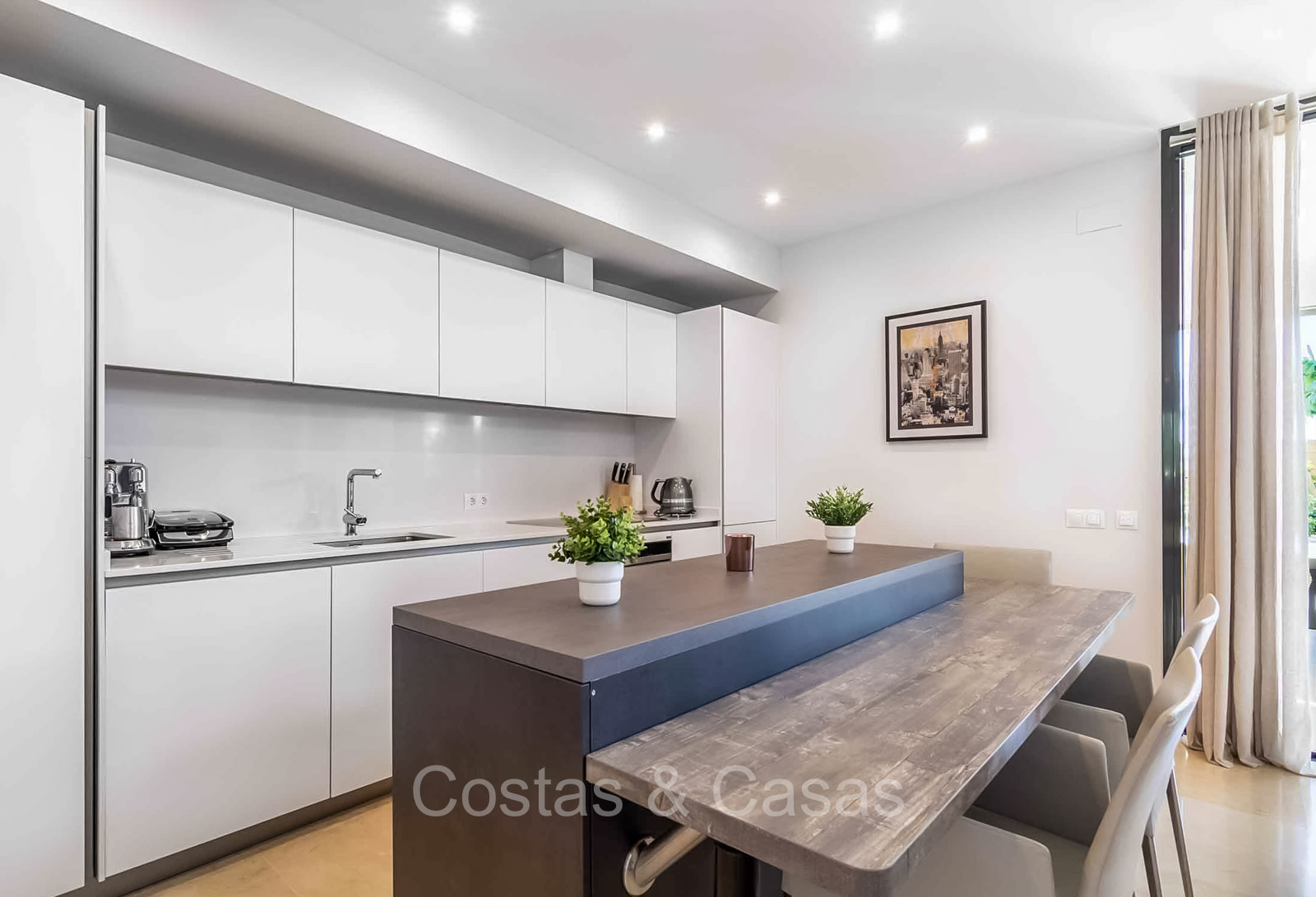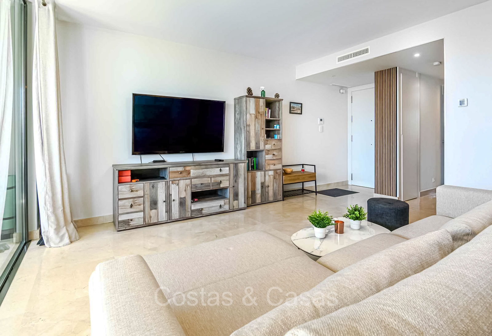 Autres caractéristiques : Système Daikin ou équivalent pour le refroidissement et le chauffage. Chauffage électrique au sol dans les salles de bains. Armoires intégrées. Sols en marbre 60x60 avec finition polie haute brillance. Double vitrage. Pré-installation du système domotique. Système d'interphone vidéo Bticino. Auvents sur la terrasse. Panneaux solaires. Système d'alarme. Meublé.
