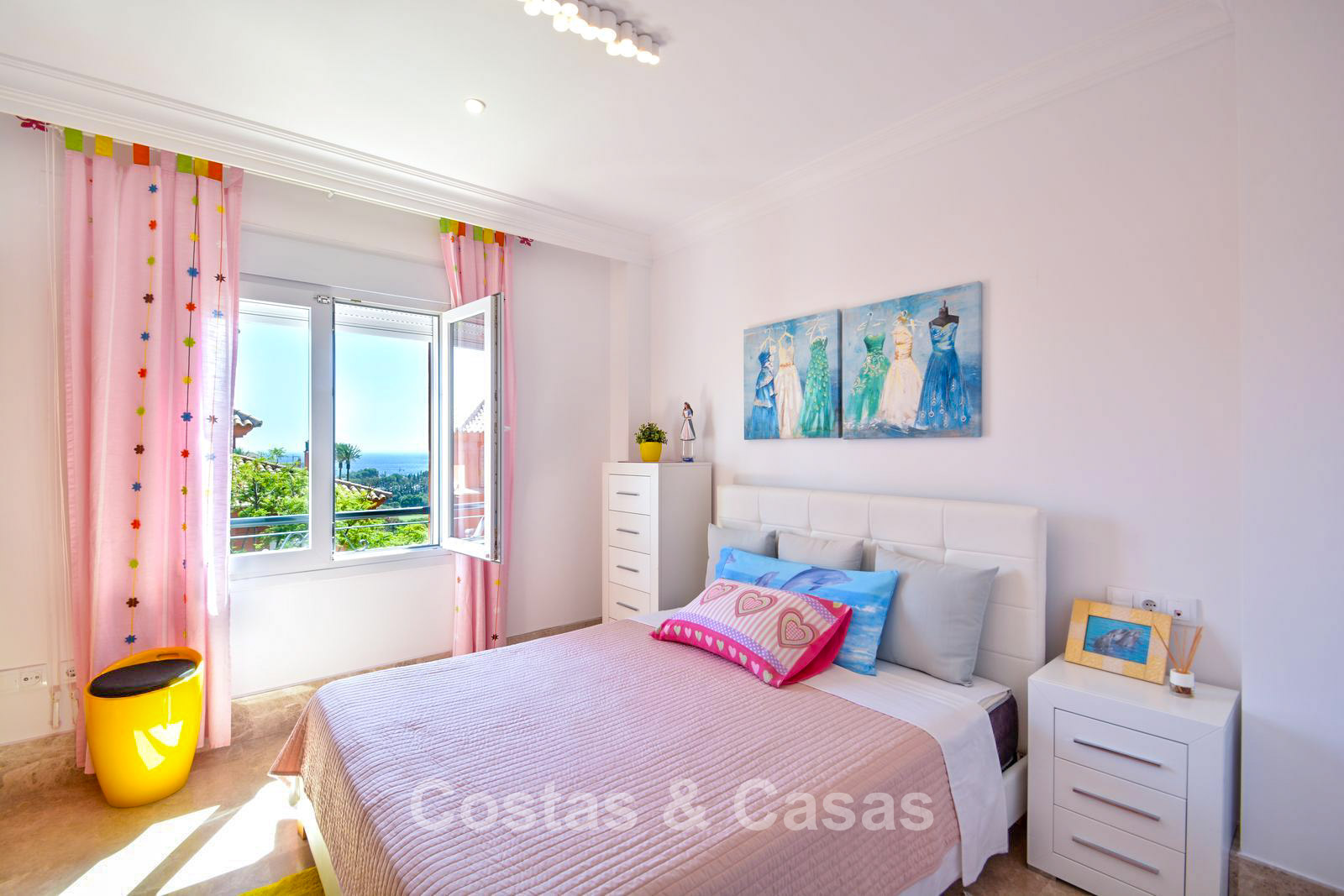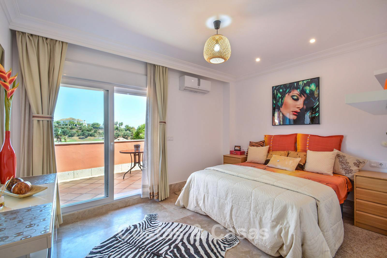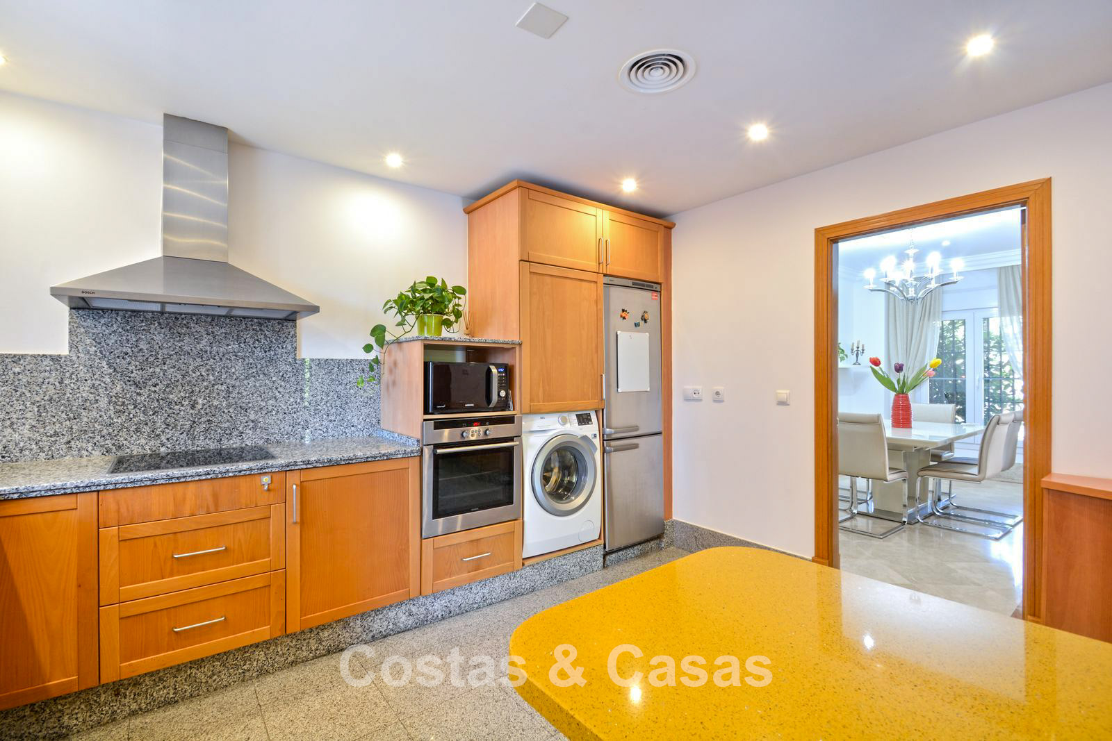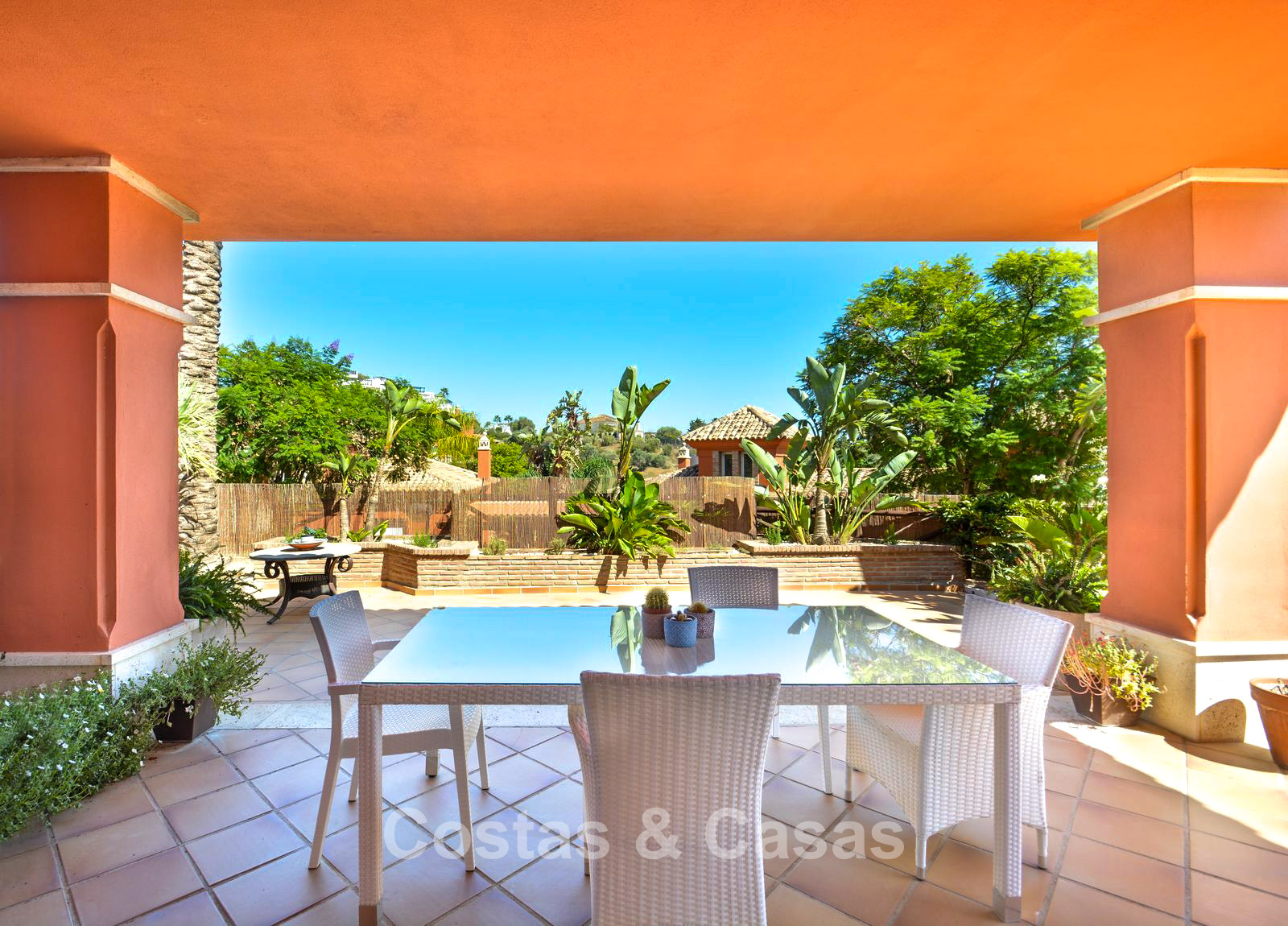 Villa jumelée à l'aspect méditerranéen élégant. Utiliser des matériaux de qualité. L'extérieur est composé de couleurs chaudes en terre cuite, qui offrent une vie extérieure attrayante. Exposition sud. Vue partielle sur le golf et la mer Méditerranée. De hautes fenêtres coulissantes s'ouvrent sur l'espace extérieur et laissent entrer beaucoup de lumière naturelle. Grand salon suivi d'une salle à manger. Cuisine séparée, entièrement équipée avec des appareils électroménagers de qualité et un bar pour le petit-déjeuner. 6 chambres, 5 salles de bains. La chambre principale bénéficie d'une terrasse privée et d'une vue partielle sur la mer et le golf. Sols en marbre. Un grand sous-sol aménagé avec diverses pièces, grand dressing, débarras et salle de bain avec jacuzzi. Débarras.