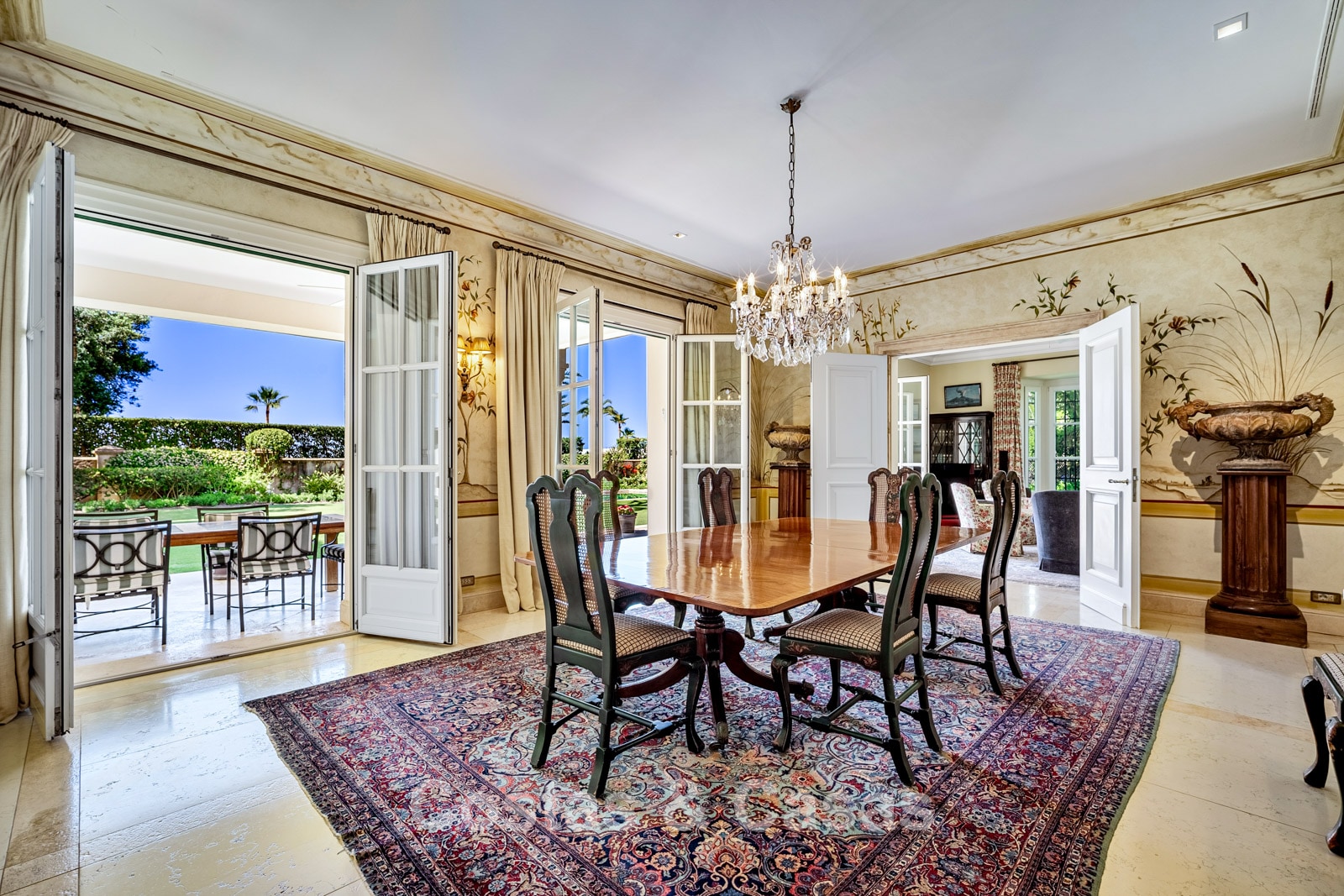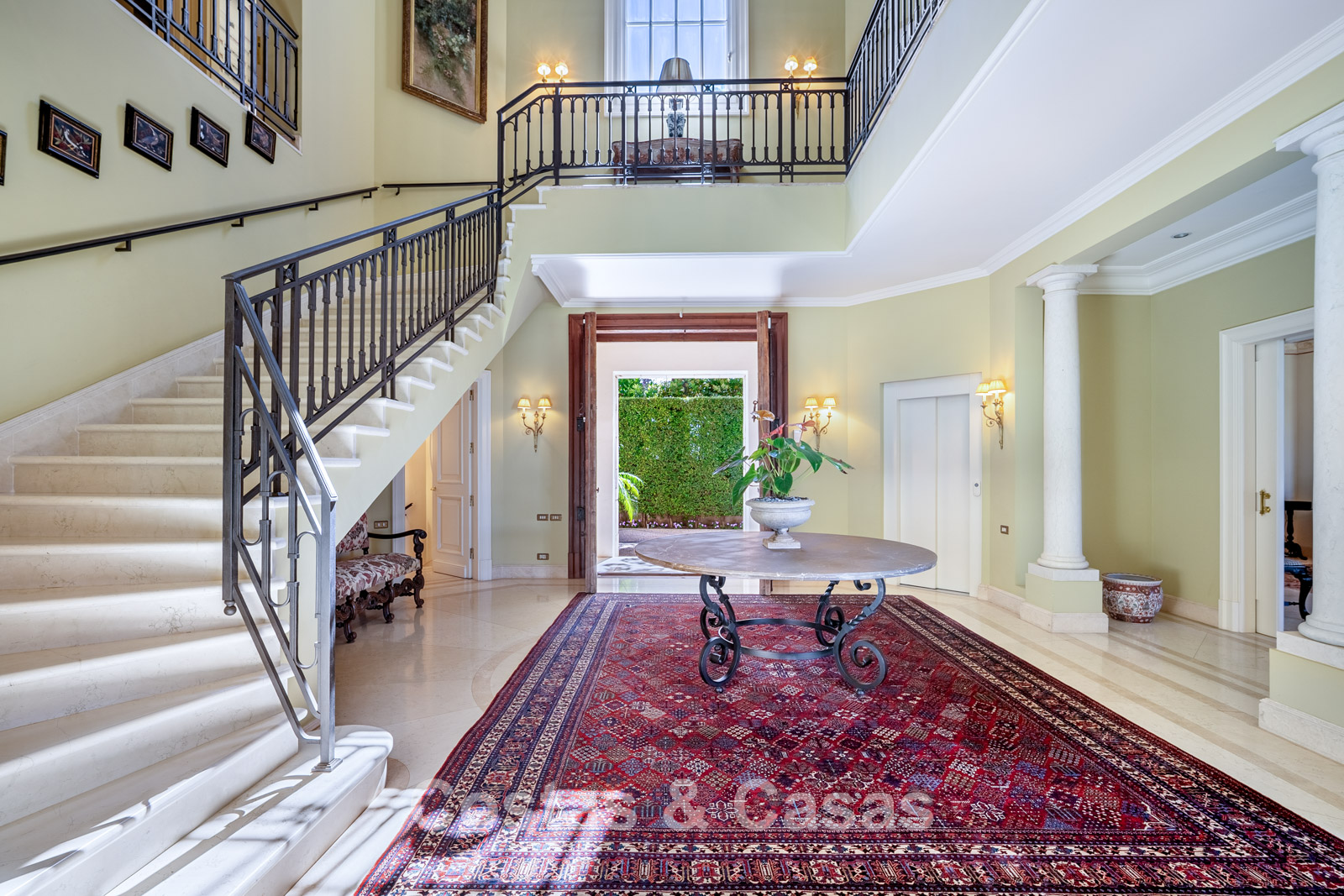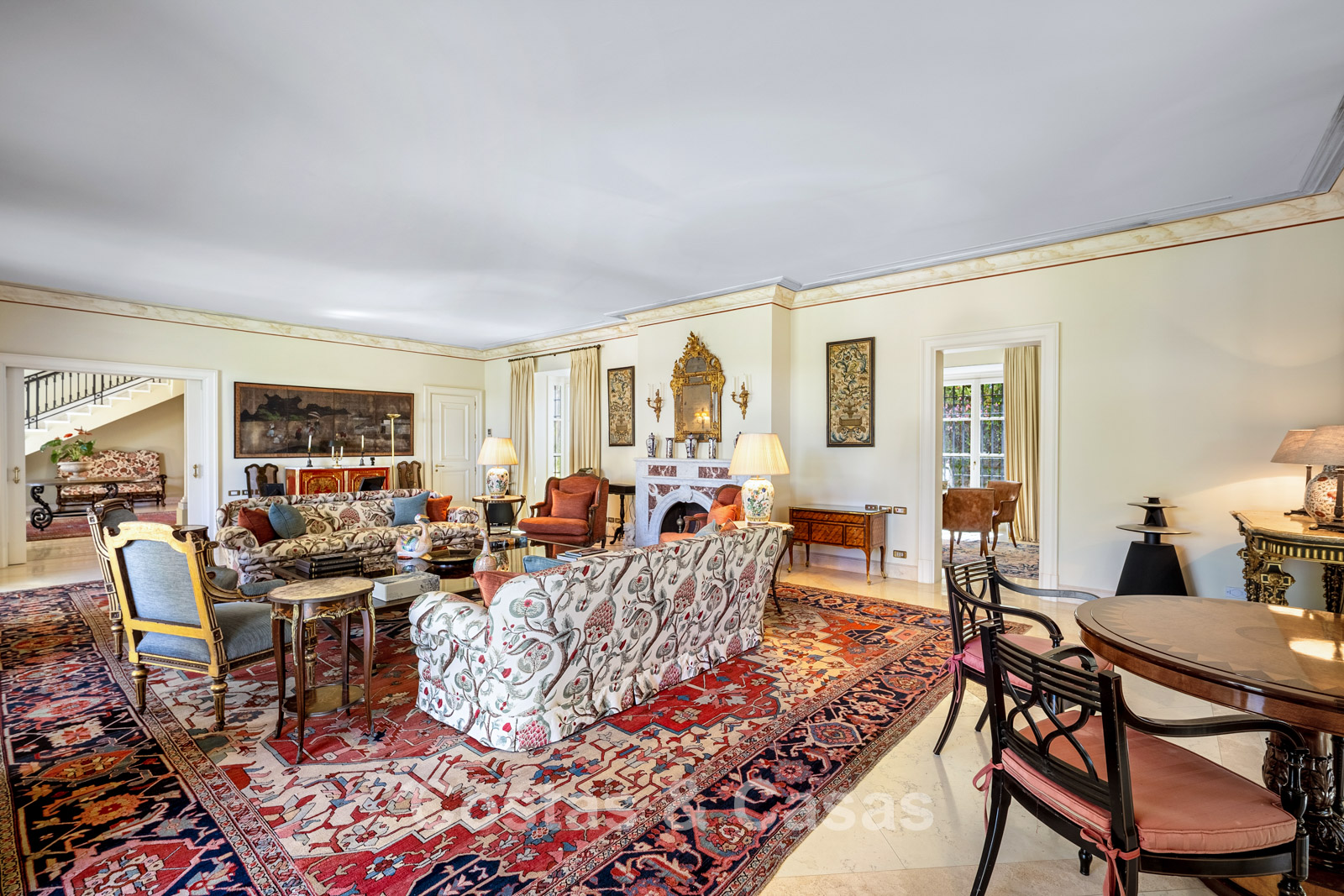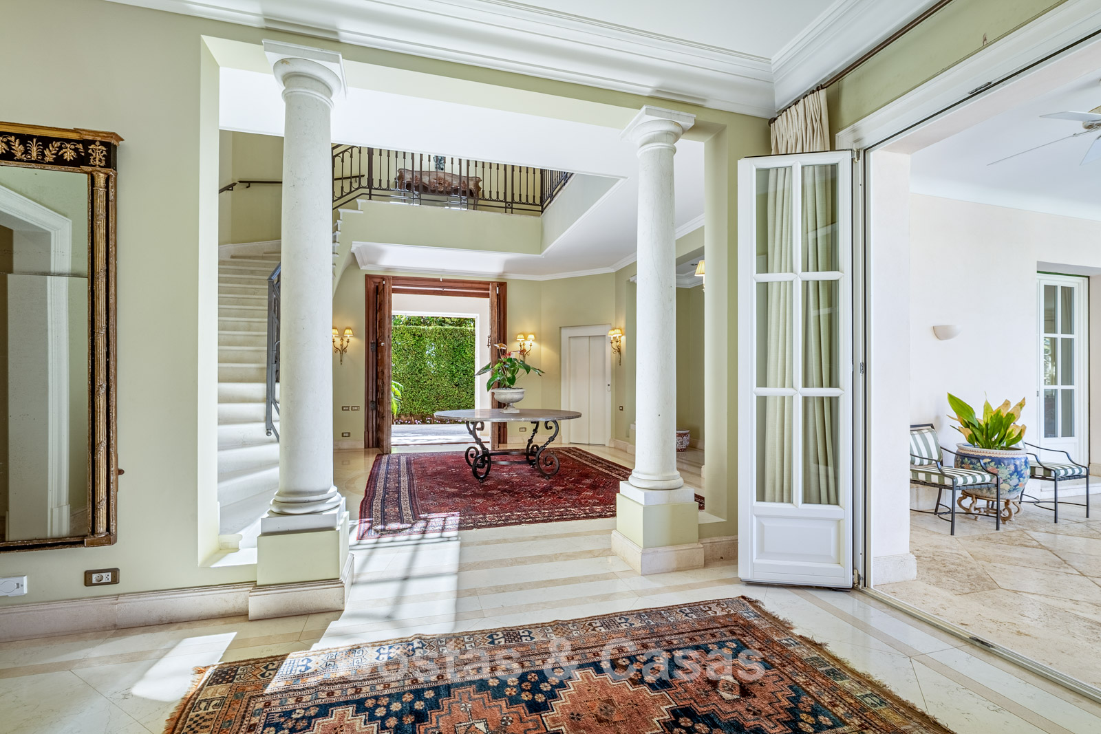 Spacieuse villa individuelle au caractère classique allié à un design méditerranéen intemporel. Matériaux de haute qualité et souci du détail. Vous entrez dans un hall d’entrée majestueux avec une double hauteur sous plafond et un élégant escalier entièrement en marbre. Intérieur lumineux aux touches élégantes, notamment des colonnes raffinées et des finitions en marbre. Les espaces intérieurs sont décorés d'un mobilier classique aux motifs riches et détaillés, dans une palette de couleurs chaleureuses. Vaste séjour avec coin salon près de la cheminée. Un bureau est adjacent. Salle à manger formelle avec accès direct au jardin. De hautes fenêtres créent une transition subtile entre l'intérieur et l'extérieur. Grande cuisine entièrement équipée avec îlot central et nombreux rangements. 7 chambres au mobilier authentique, 6 salles de bains et 2 toilettes séparées pour invités. Un espace séparé pour les invités ou le personnel, équipé d'une kitchenette et d'un espace de vie confortable, est à votre disposition. Salle de sport privée. Garage intérieur pouvant accueillir plus de 5 voitures.