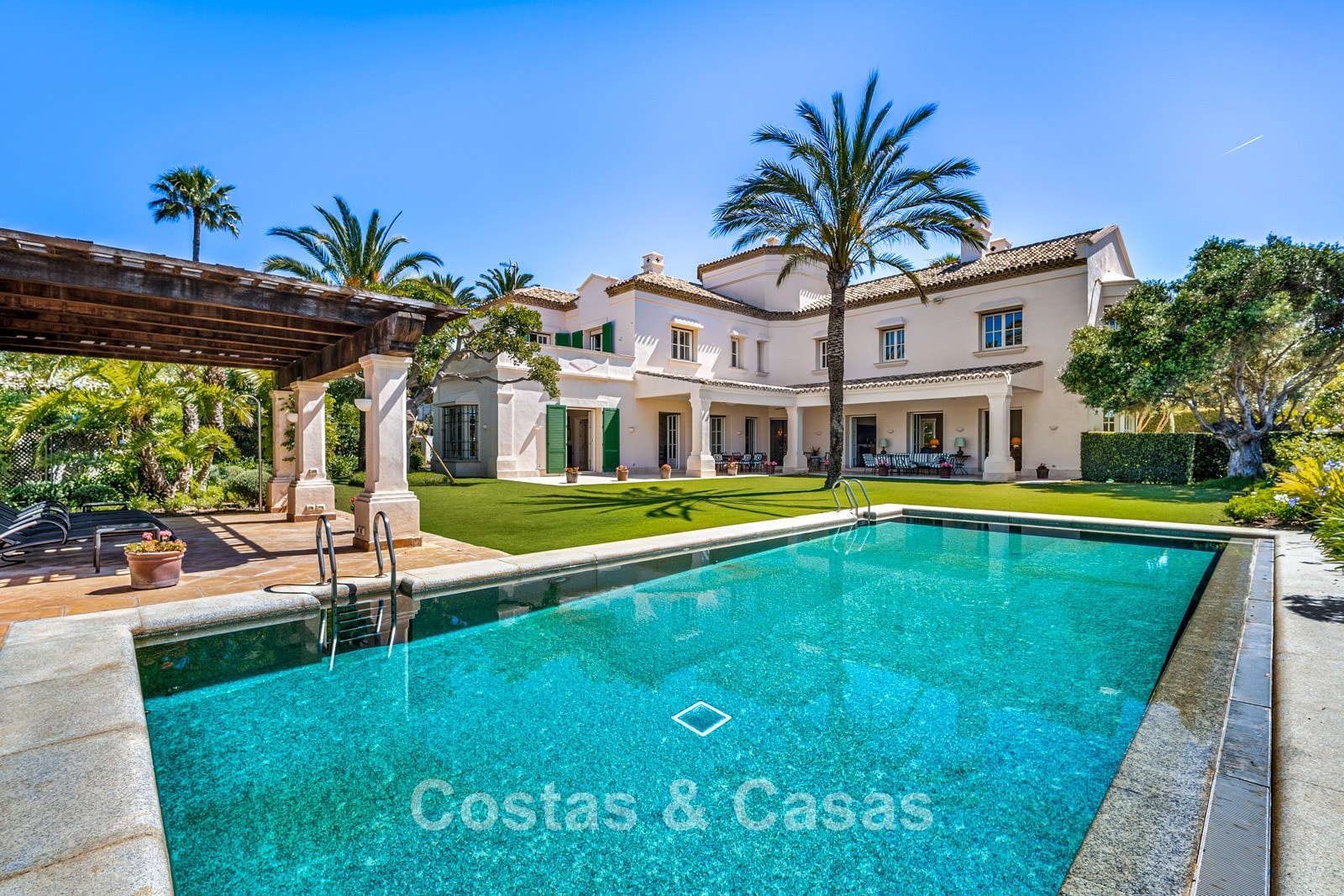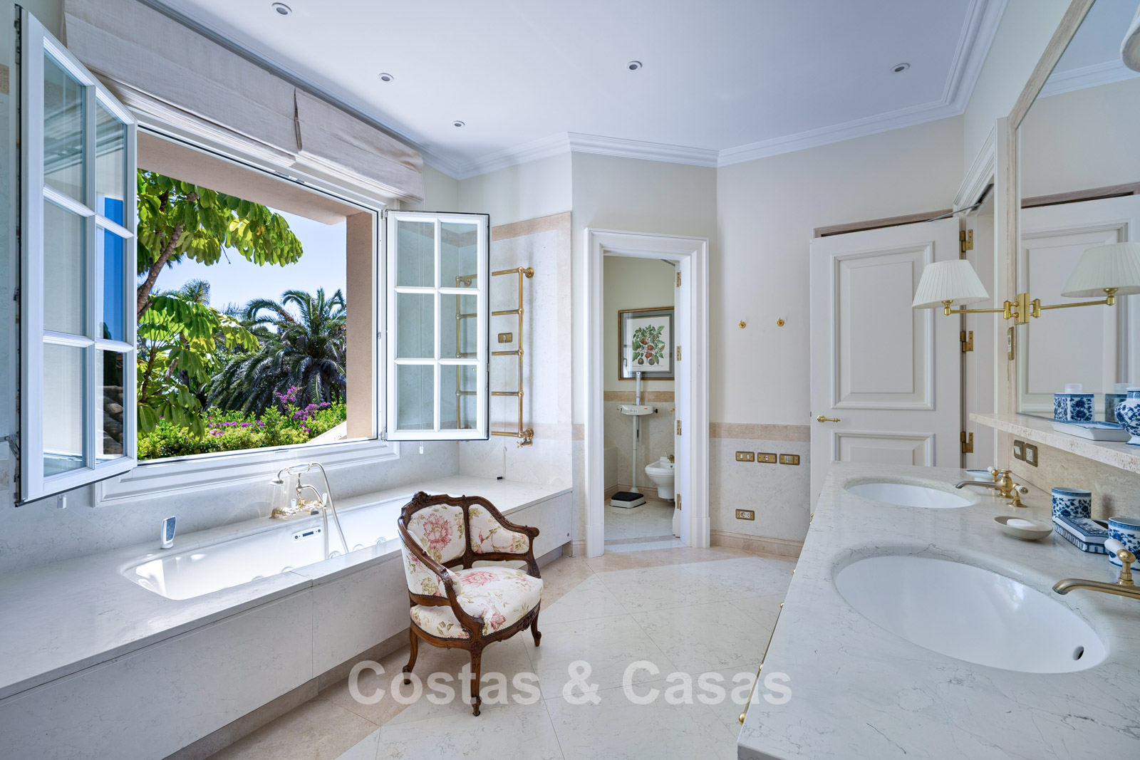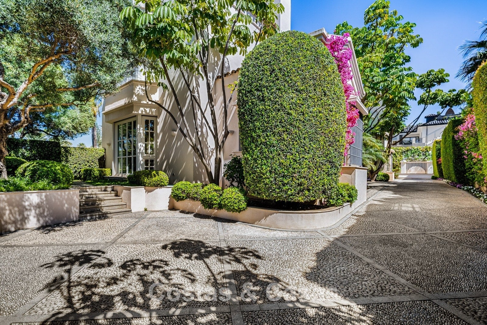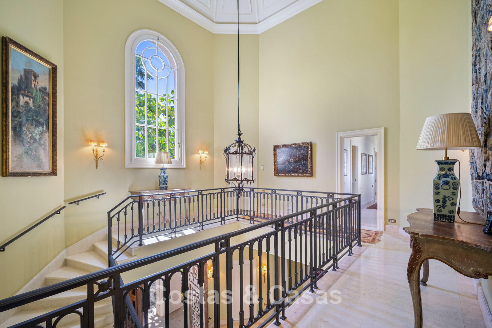 Spacieuse villa individuelle au caractère classique allié à un design méditerranéen intemporel. Matériaux de haute qualité et souci du détail. Vous entrez dans un hall d’entrée majestueux avec une double hauteur sous plafond et un élégant escalier entièrement en marbre. Intérieur lumineux aux touches élégantes, notamment des colonnes raffinées et des finitions en marbre. Les espaces intérieurs sont décorés d'un mobilier classique aux motifs riches et détaillés, dans une palette de couleurs chaleureuses. Vaste séjour avec coin salon près de la cheminée. Un bureau est adjacent. Salle à manger formelle avec accès direct au jardin. De hautes fenêtres créent une transition subtile entre l'intérieur et l'extérieur. Grande cuisine entièrement équipée avec îlot central et nombreux rangements. 7 chambres au mobilier authentique, 6 salles de bains et 2 toilettes séparées pour invités. Un espace séparé pour les invités ou le personnel, équipé d'une kitchenette et d'un espace de vie confortable, est à votre disposition. Salle de sport privée. Garage intérieur pouvant accueillir plus de 5 voitures.