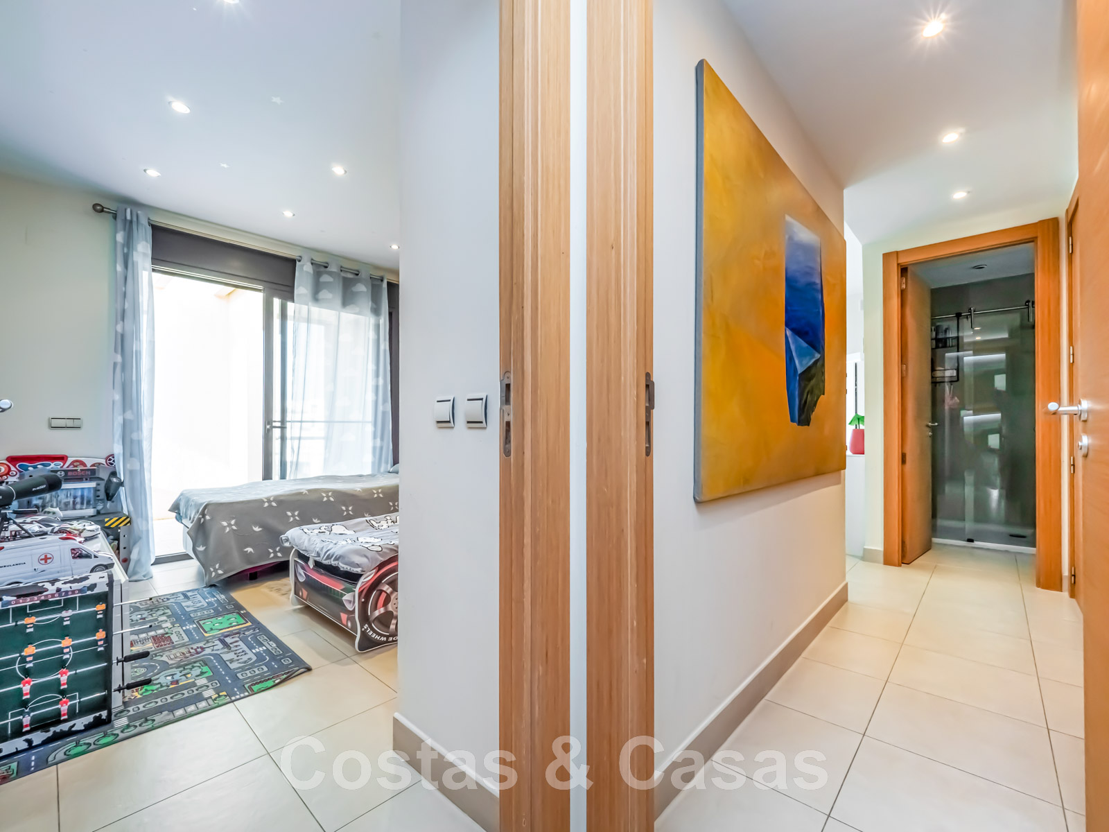 3 chambres, 2 bains et une toilette pour les invités.