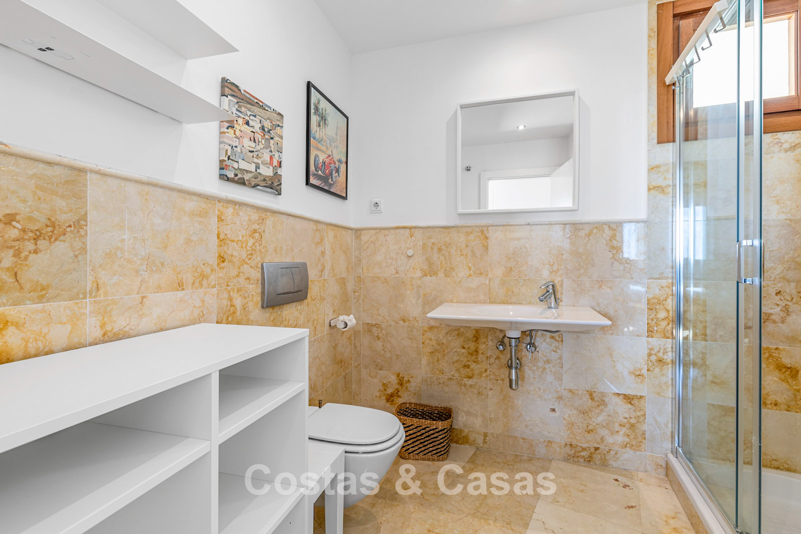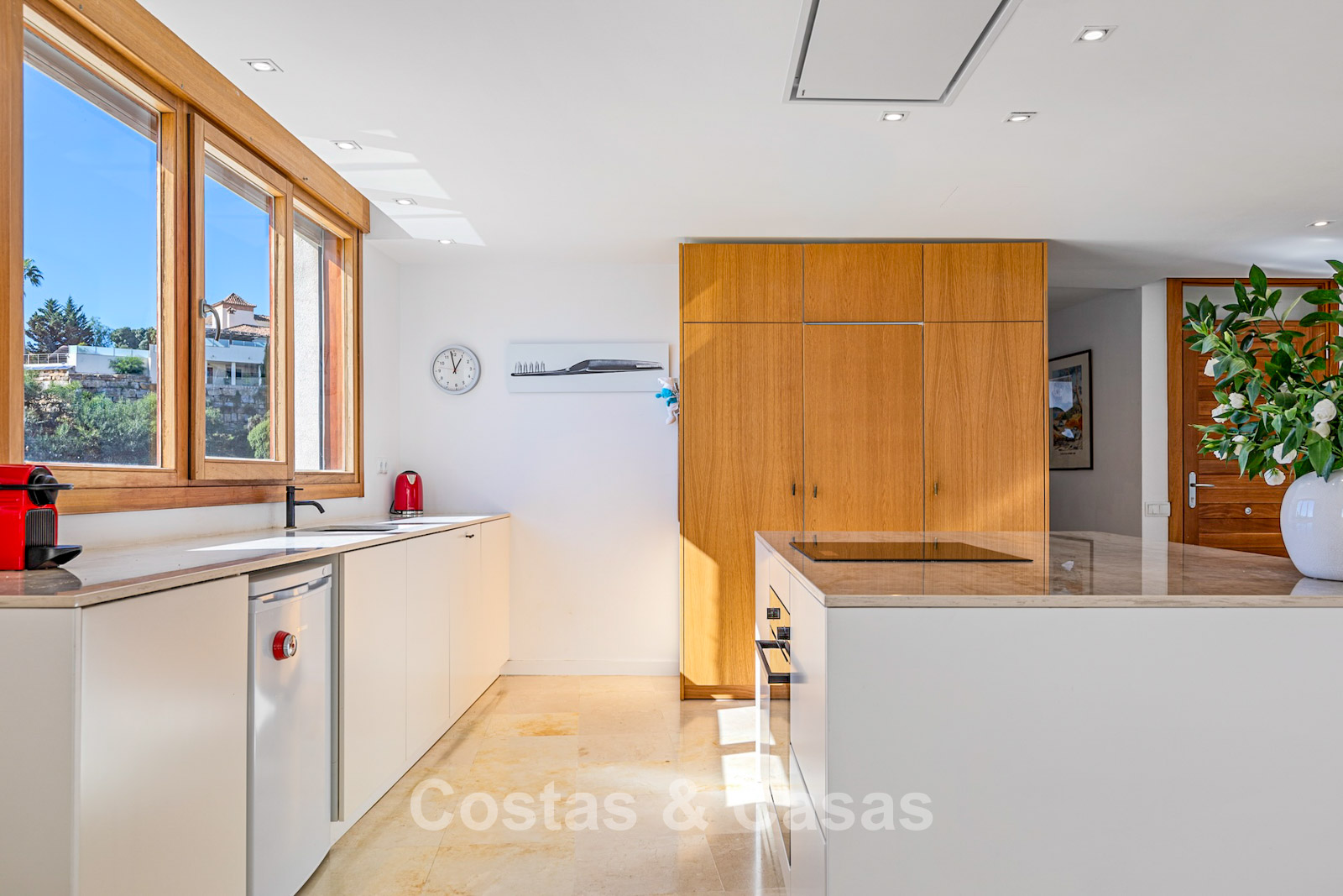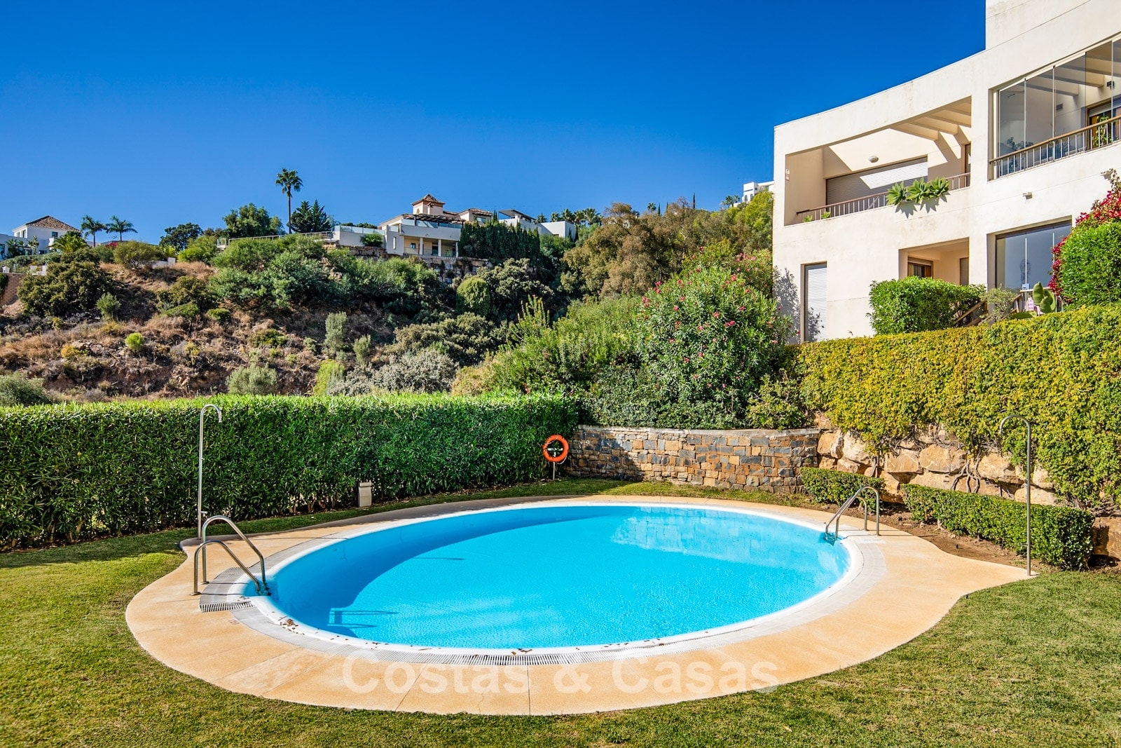 Situé en position élevée dans les collines à l’est de Marbella. Le quartier est calme et entouré de nature, tout en étant à seulement 10 à 12 minutes en voiture de la plage et du centre de Marbella. L’urbanisation se trouve à environ 10 minutes de Santa Clara Golf et à 12–15 minutes de Río Real Golf, deux des parcours les plus réputés de la région. D’autres terrains comme Marbella Golf & Country Club sont également accessibles en moins de 15 minutes. L’aéroport de Málaga se situe à environ 45 minutes par l’A7. Le complexe dispose de piscines et jardins communs.