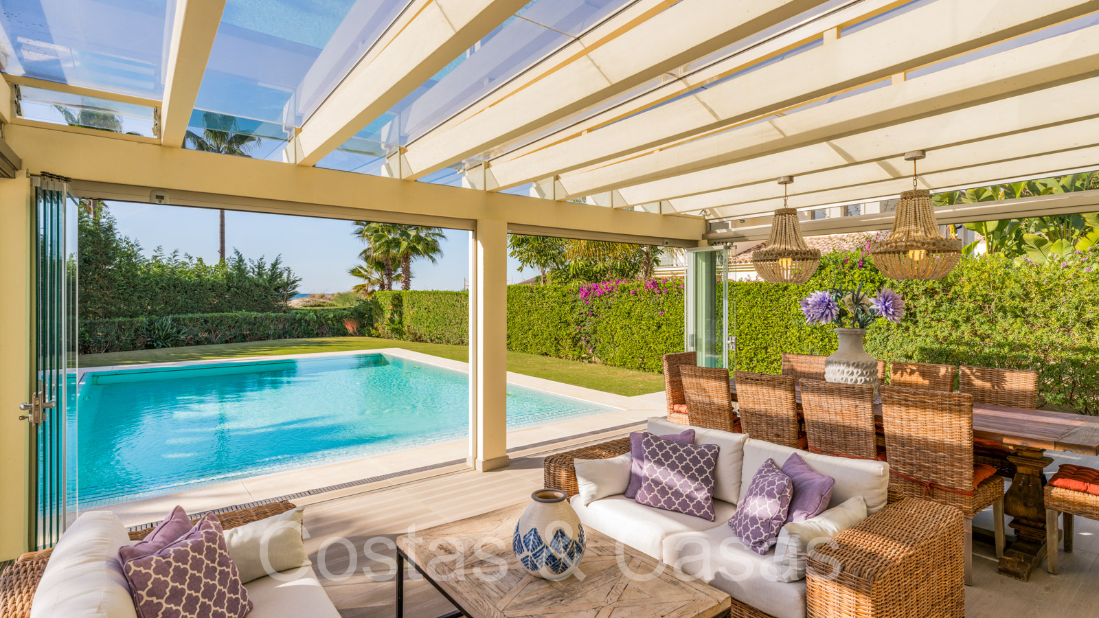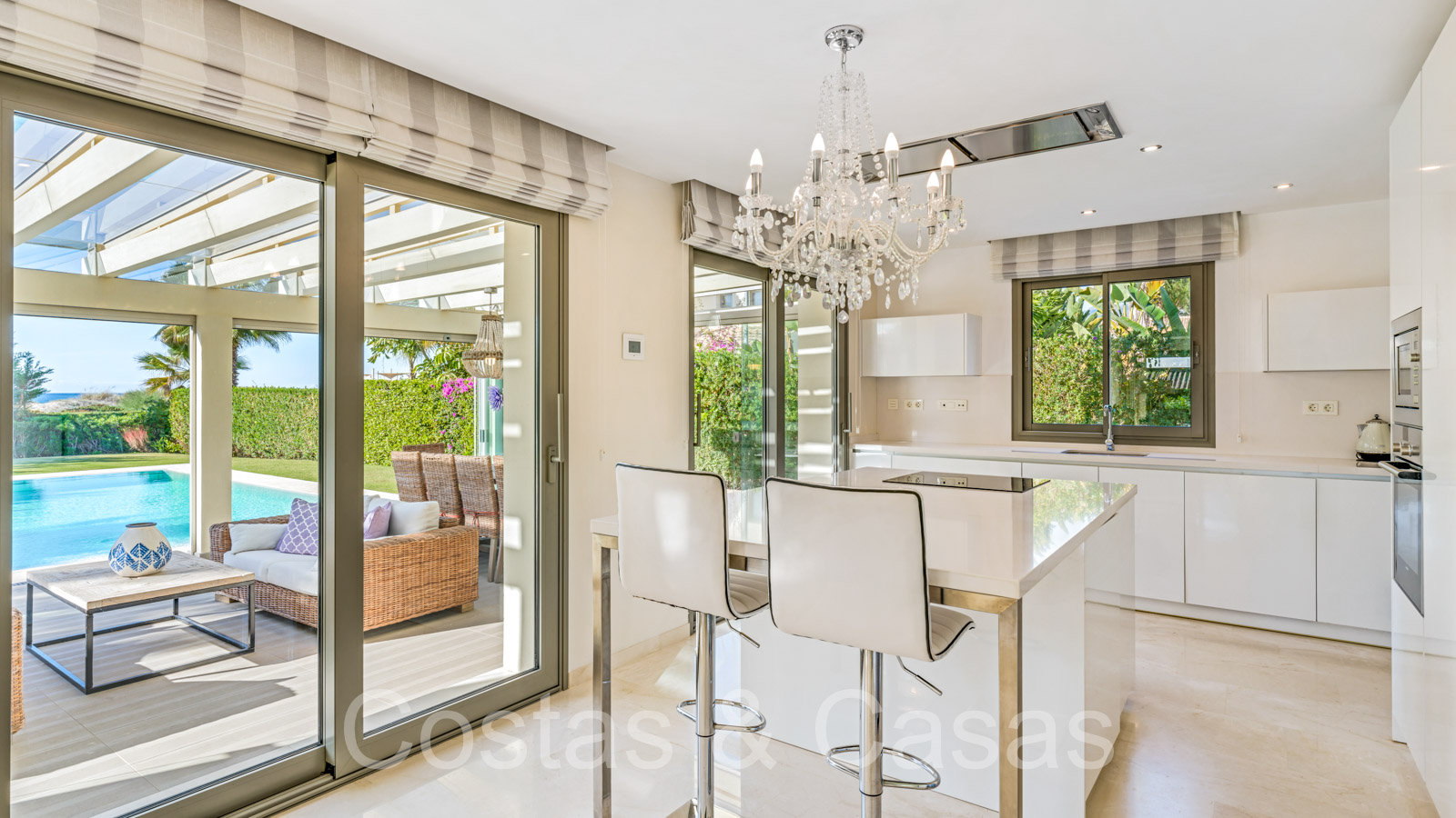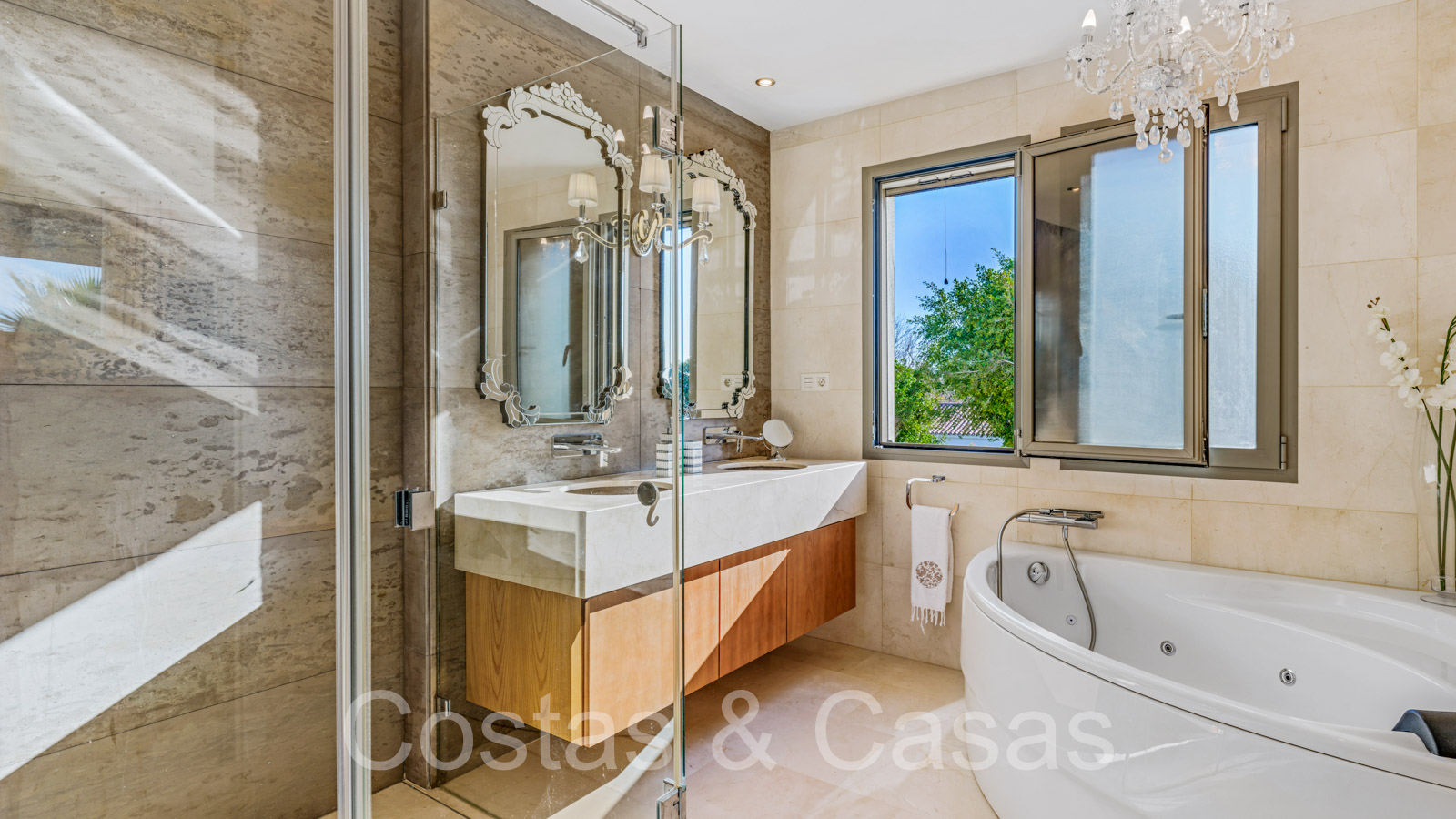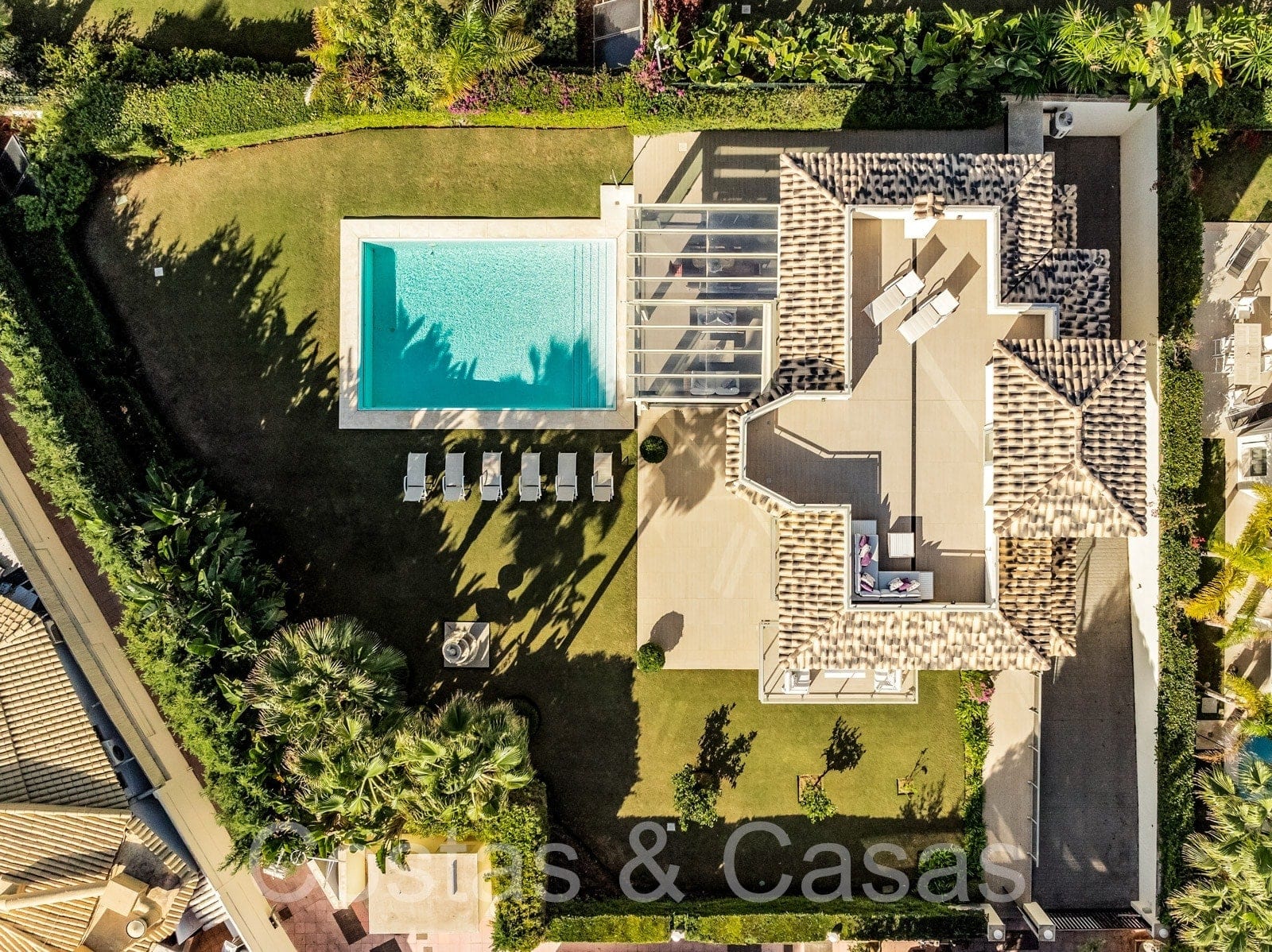 Autres caractéristiques: Climatisation. Chauffage au sol dans toute la villa. Volets motorisés. Armoires intégrées. Système domotique. Système d'alarme. Système d'irrigation automatique. Douche extérieure.