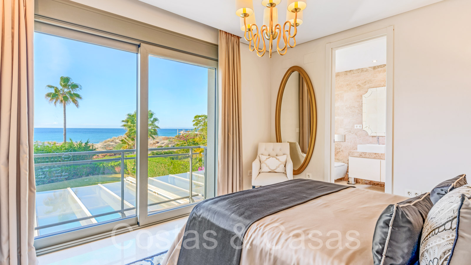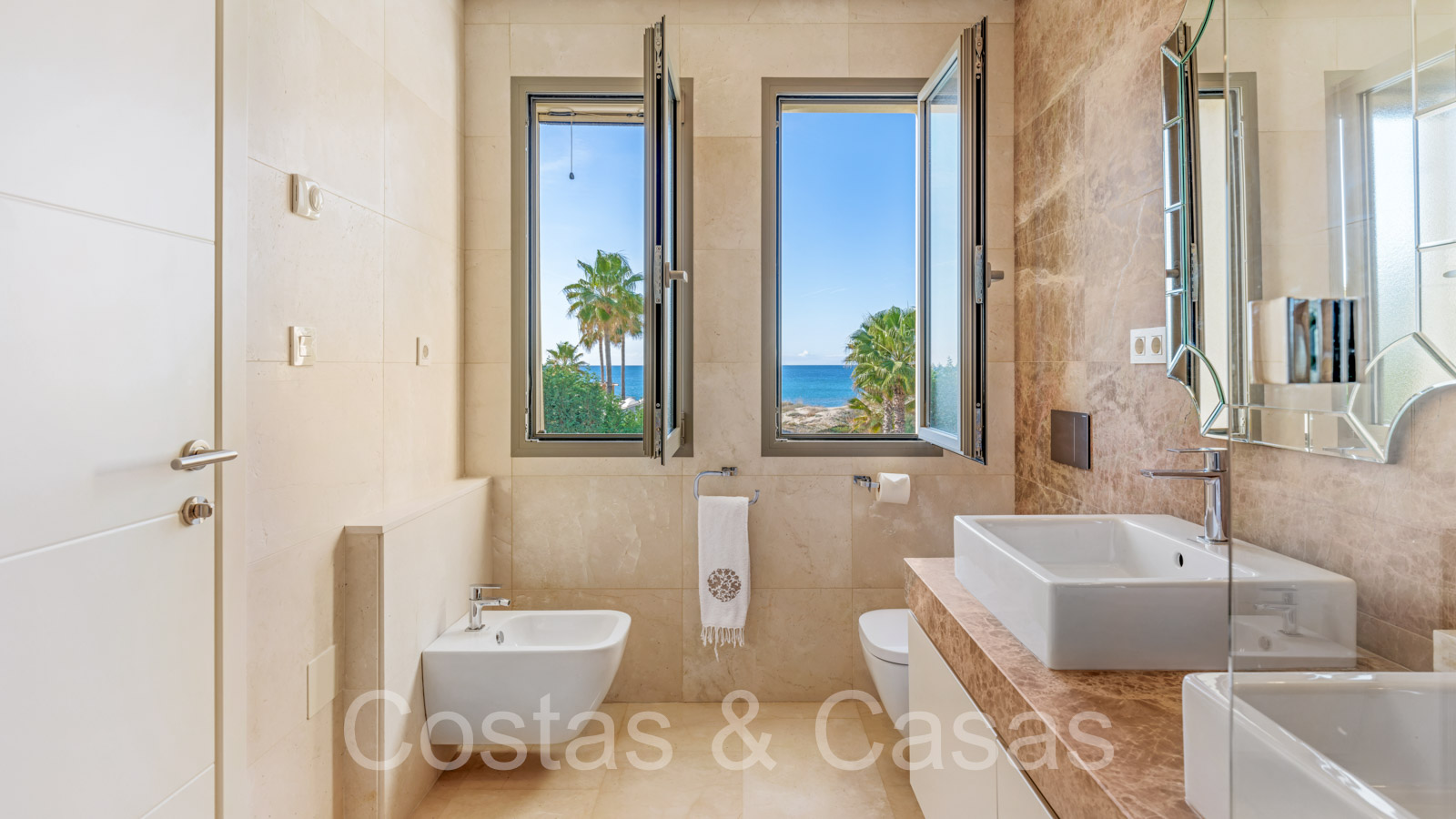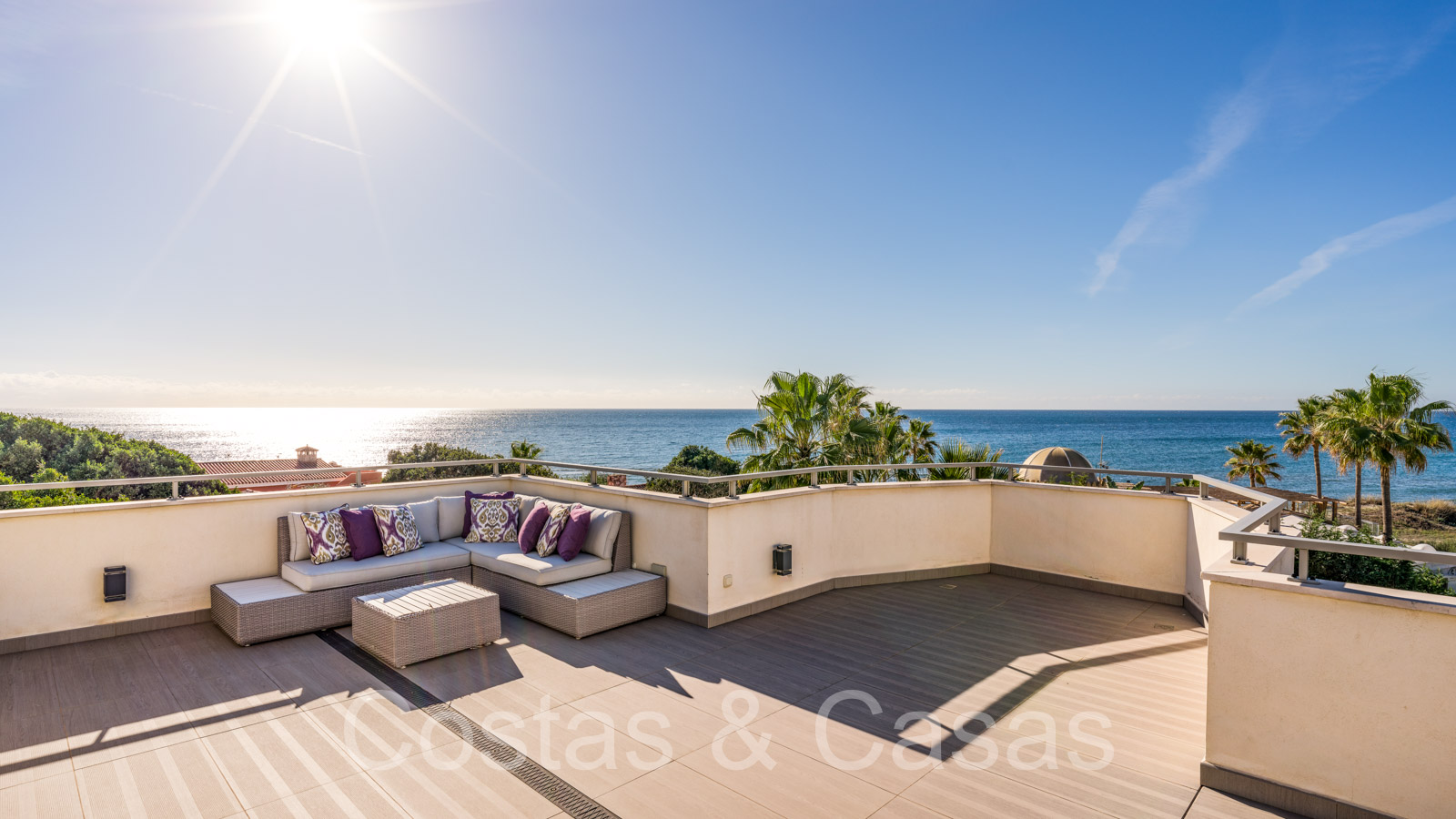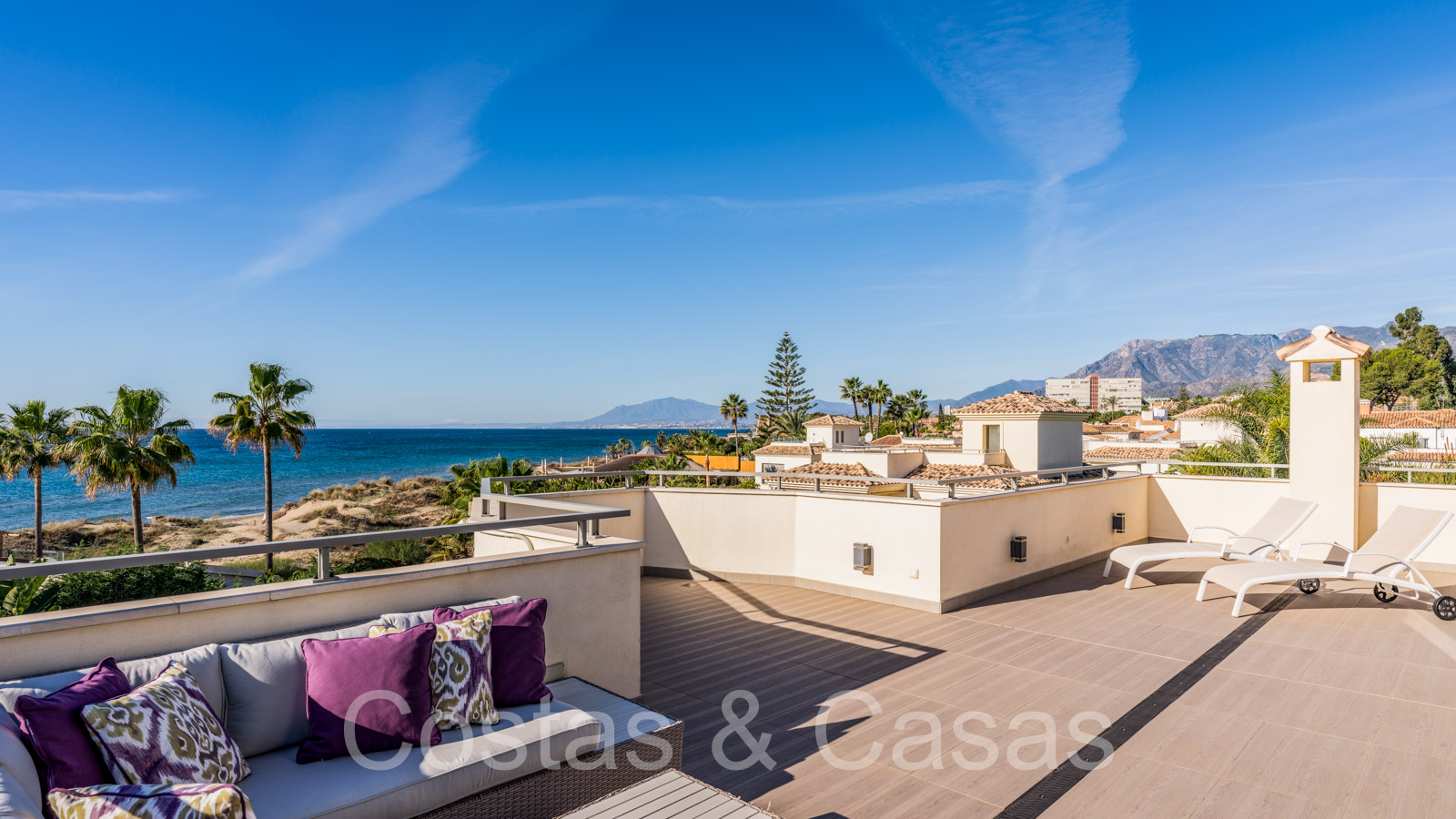 Villa de plage méditerranéenne avec vue frontale sur la mer à vendre à l'est de Marbella
